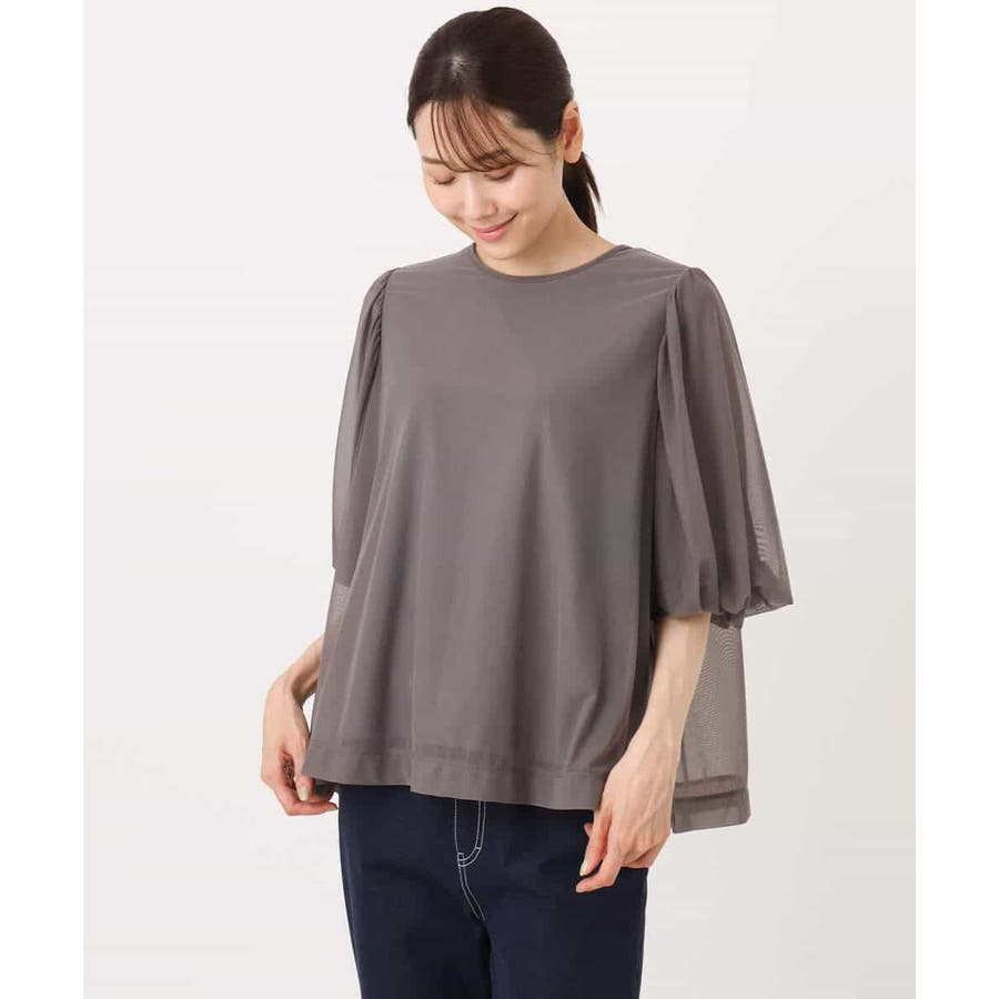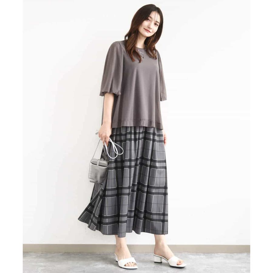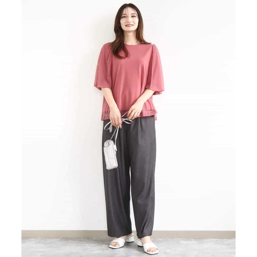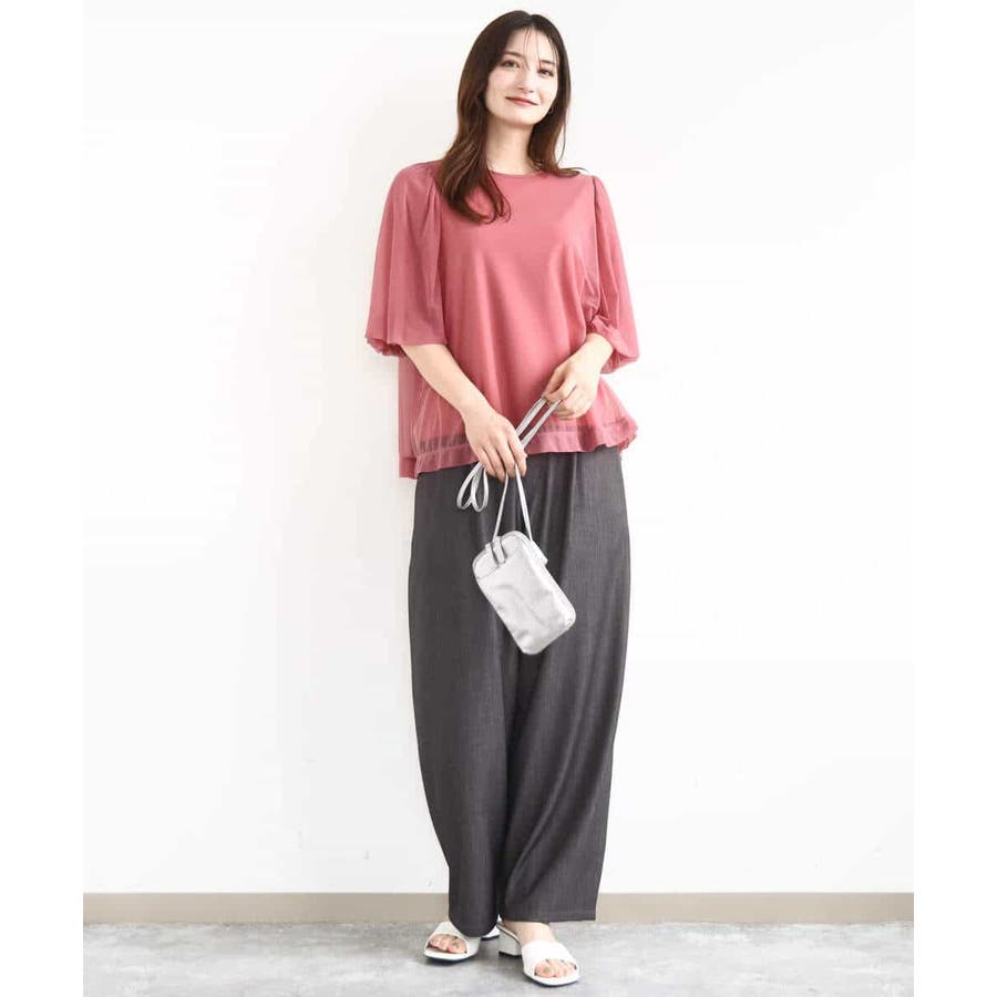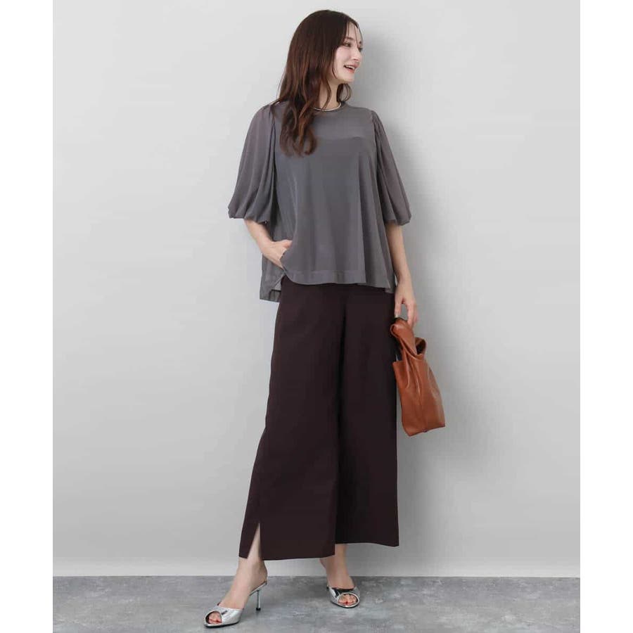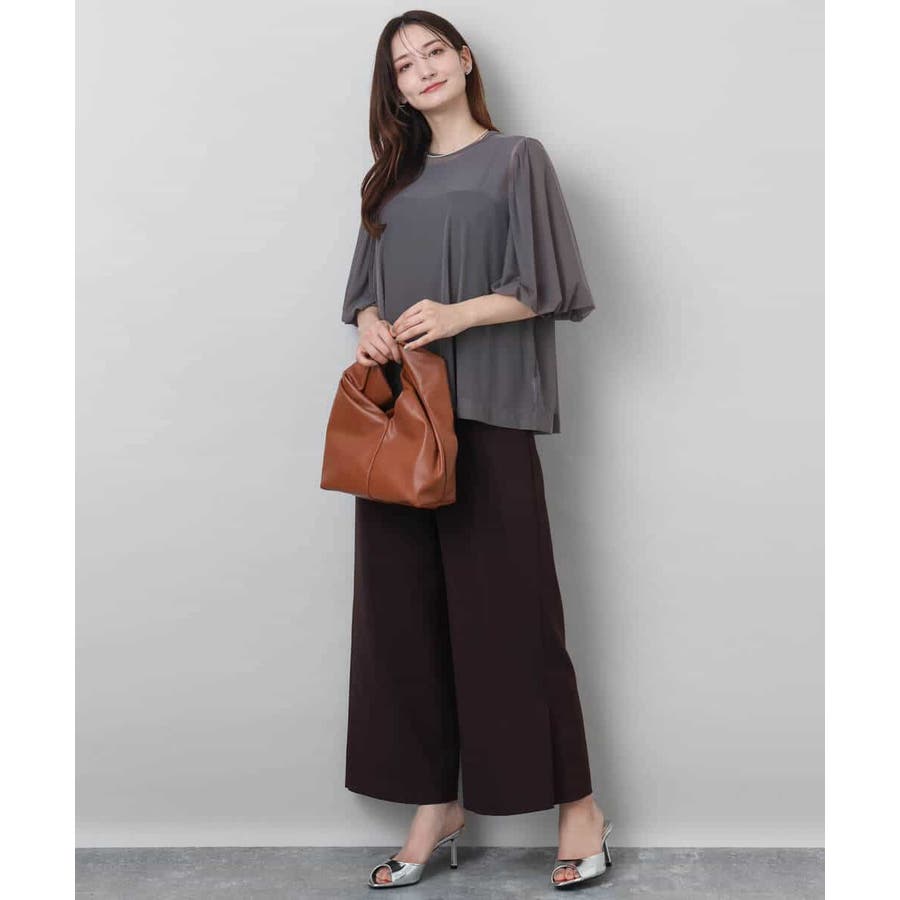 チュールのブラウスとタンクトップの2点セットでレイヤードの着こなしを楽しめる一枚です。肌触りの良い柔らかなチュールは落ち感がありスッキリとした印象になります。長めのパフスリーブは落ち感によって甘くなり過ぎないですよ。腰まわりを隠してくれる丈はオーバースタイルでパンツとの相性が良いです。デニムコーデでカジュアルに、柔らか素材のワイドパンツで大人の雰囲気に、印象を変えて着回せます。季節によってインナーをチェンジするのもオススメです。