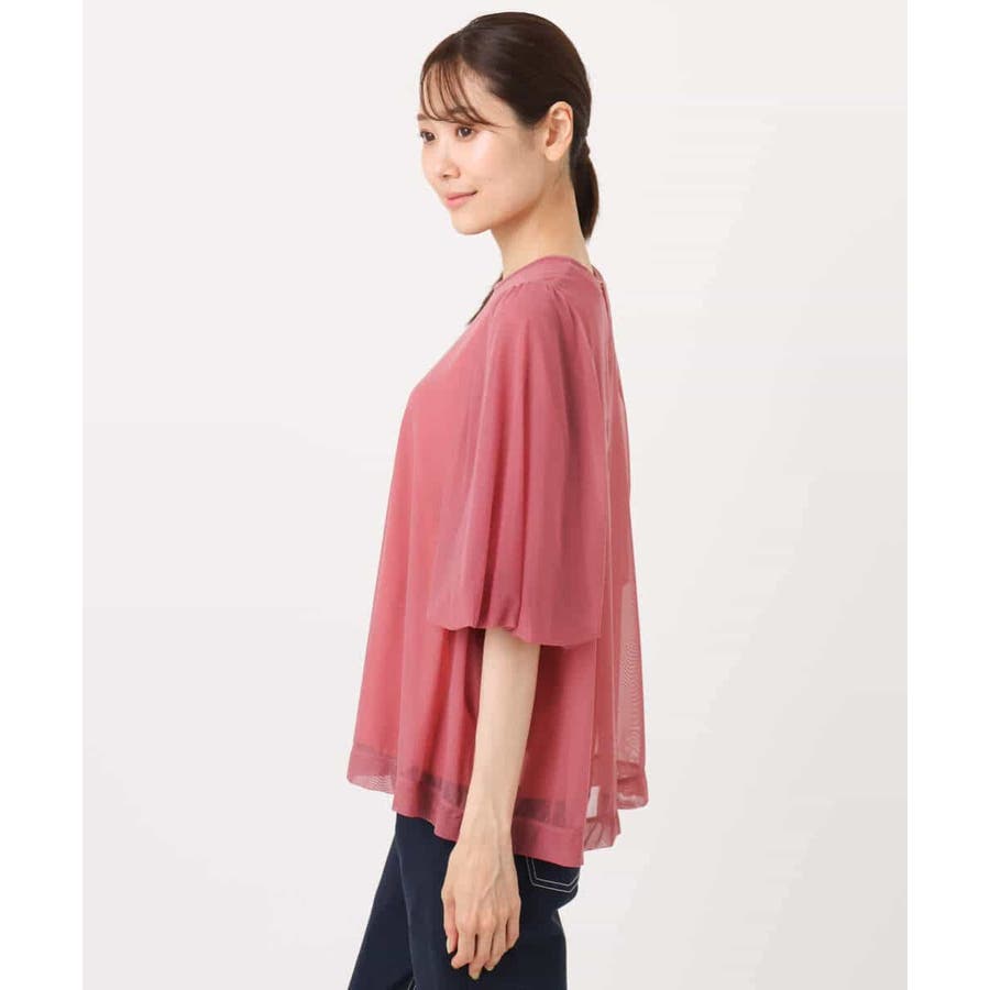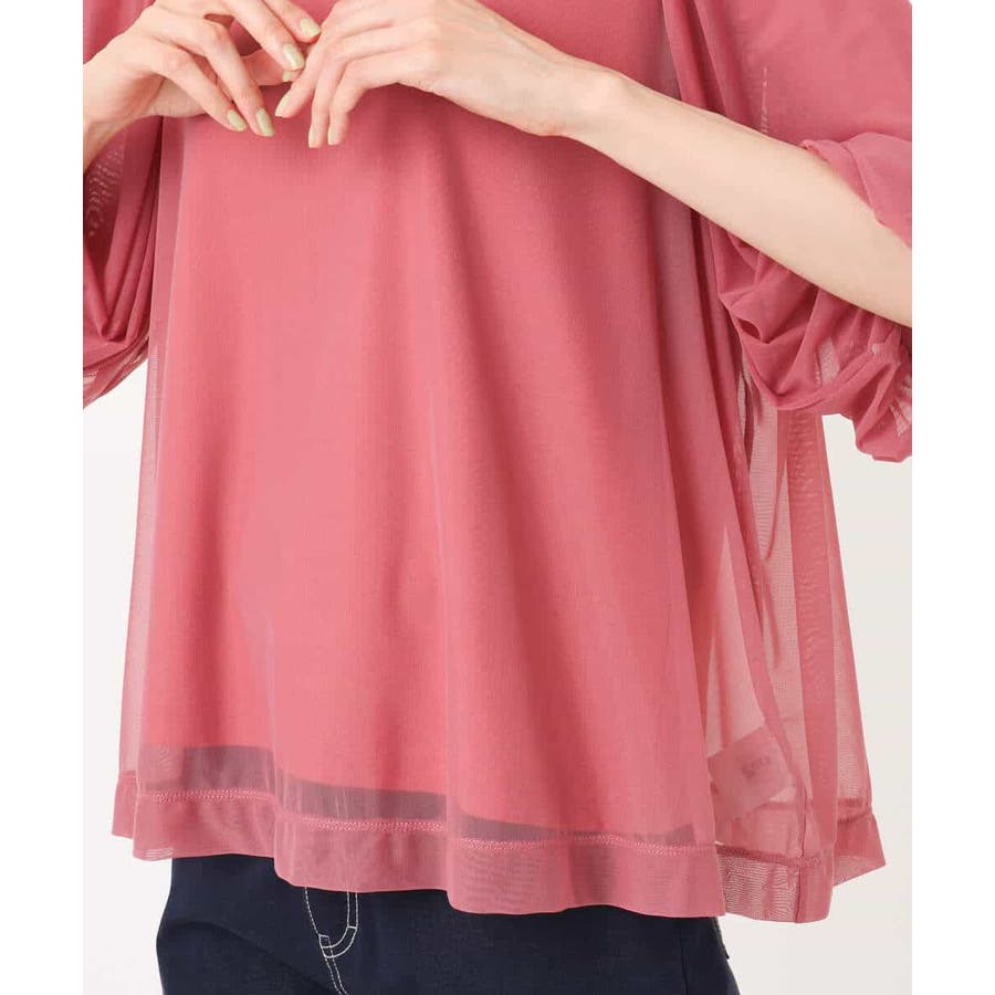 柔らかな着心地のチュール素材のブラウスと同色のタンクトップのセットアイテム。ブラウスはふわっとしたバルーンスリーブが二の腕や肘を可愛くカバーしてくれます。身頃にゆとりがありながら素材が柔らかいので上半身にボリュームが出にくいのもポイント。タンクトップは襟や肩の露出が少ないデザイン。暑い季節の一枚着としても使っていただけます。