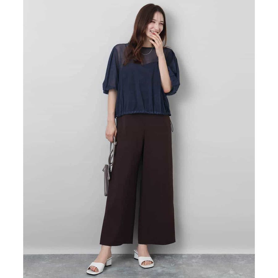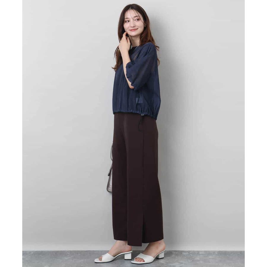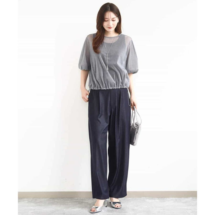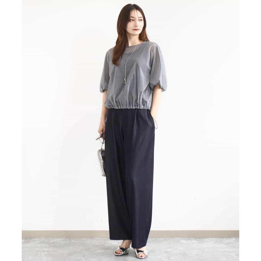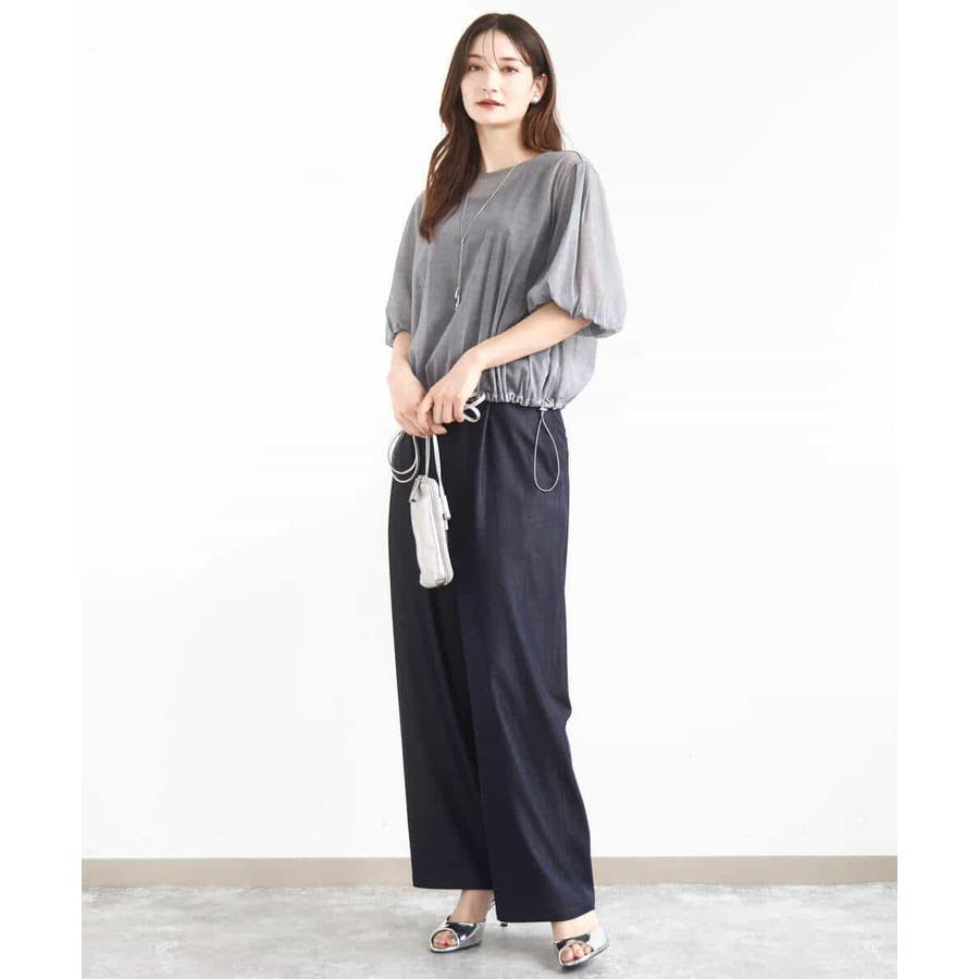 トレンドを意識した透け感のある素材が魅力。裾のドローコードでシルエットを調整でき、コーディネートの幅が広がります。肘まであるボリュームスリーブで二の腕もスッキリ!身幅もゆったりとしていてとても着やすいです。洗濯機洗いができるのもおすすめポイントです。