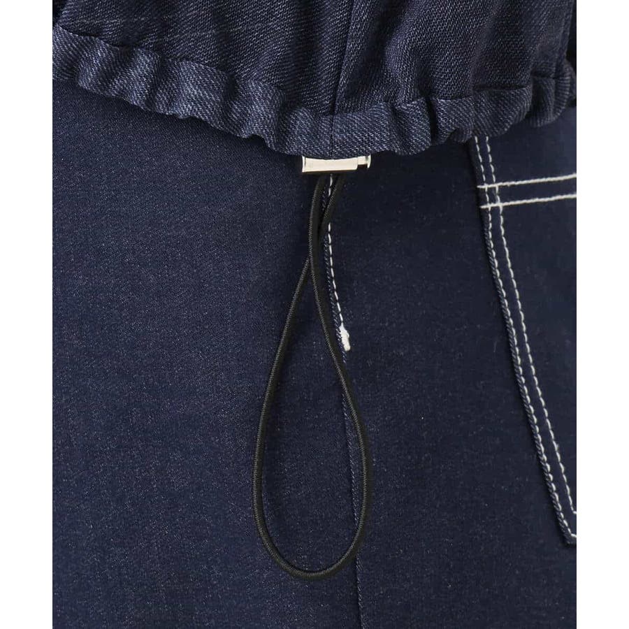 デニム調見えするやわらかなチュール素材を使用。通常のチュールよりもストレッチ性に優れており、程よいシアー感がトレンドライクな素材です。