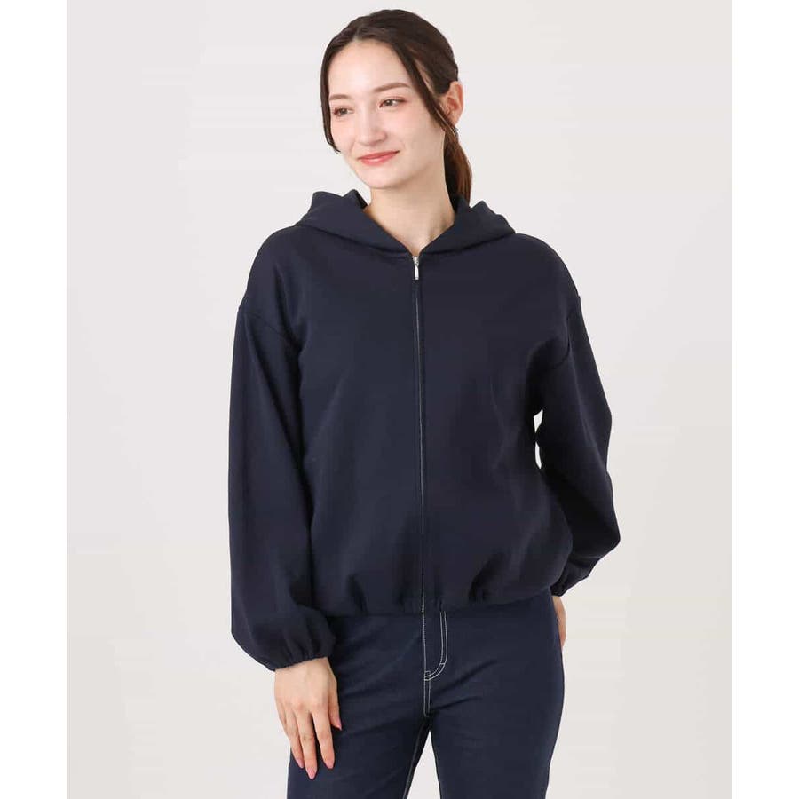 きれい見えなポンチ素材の大人カジュアルパーカー