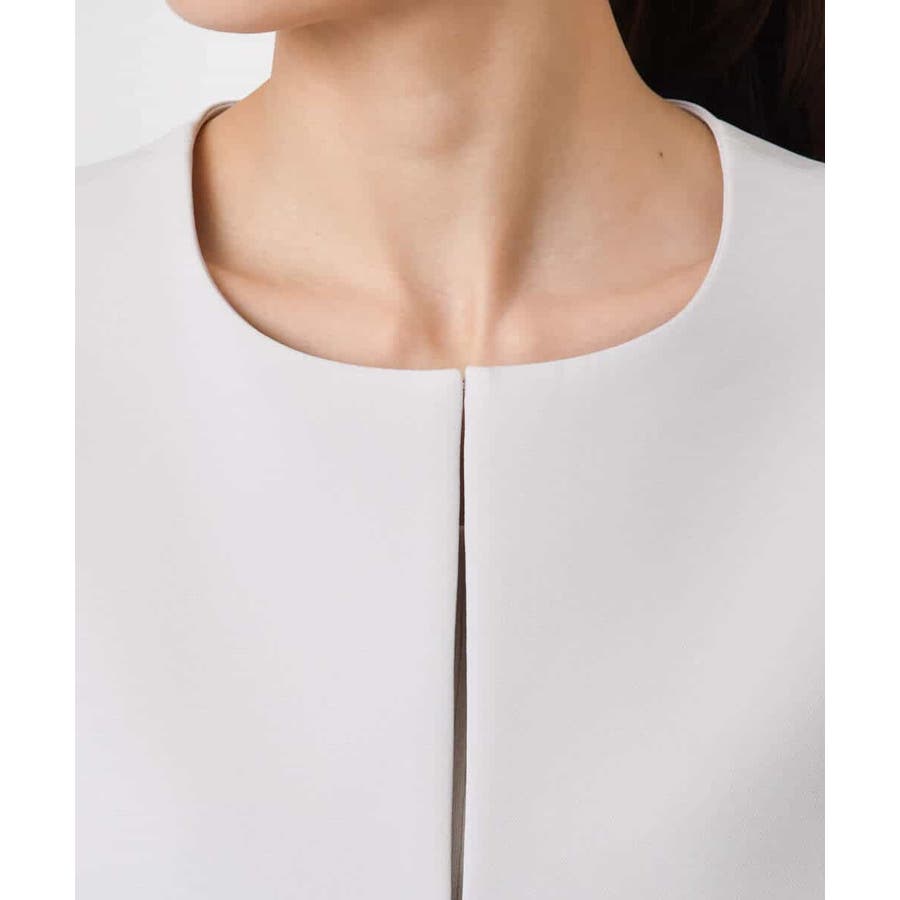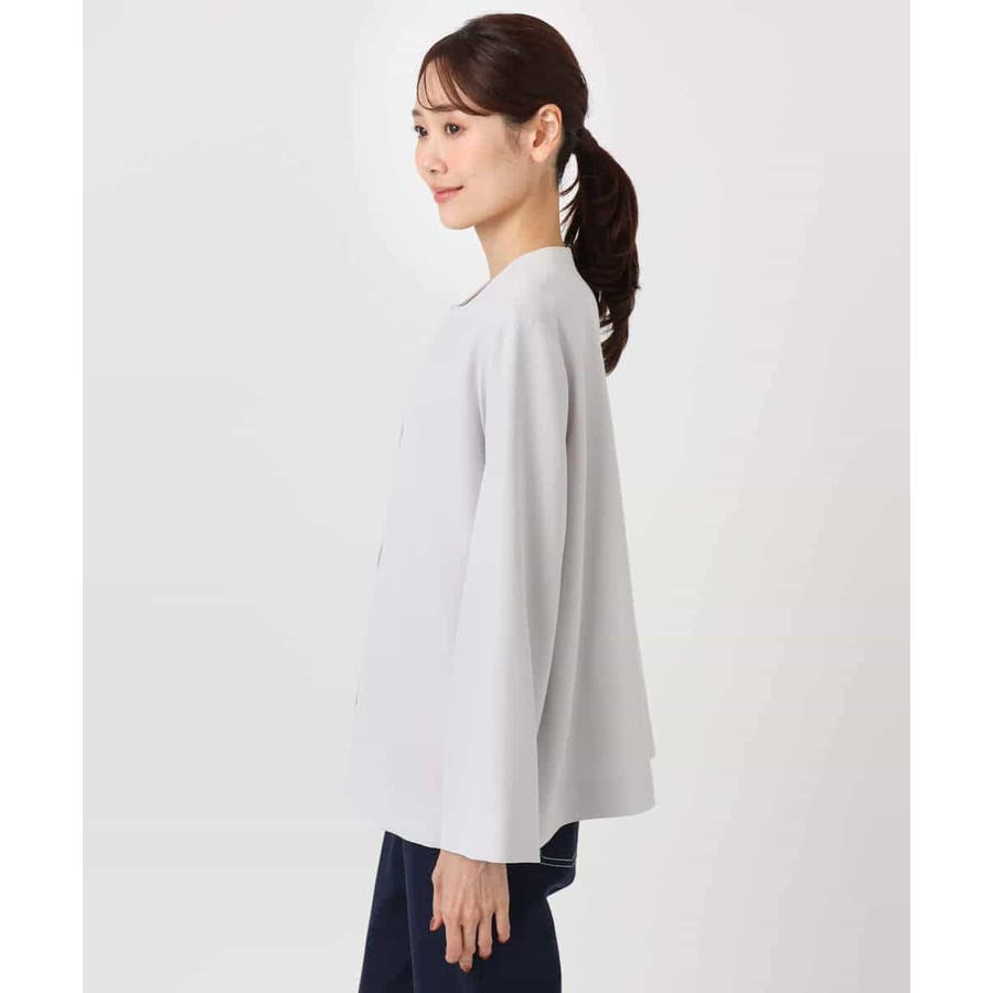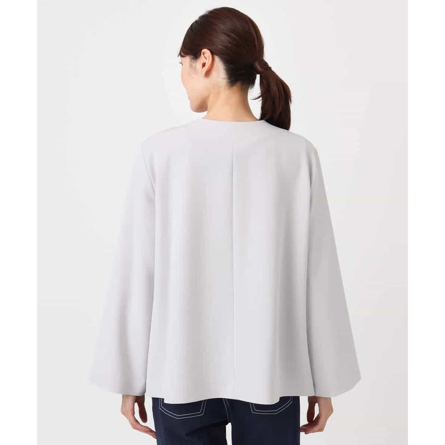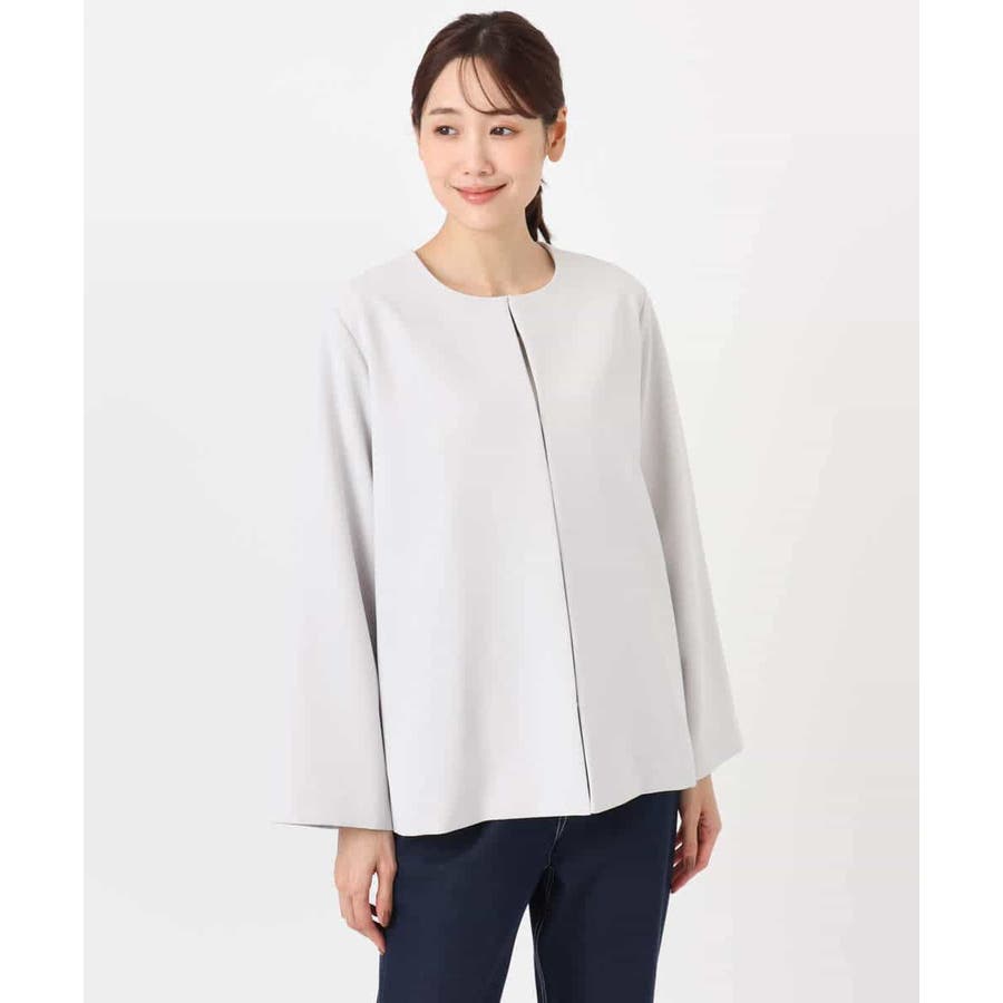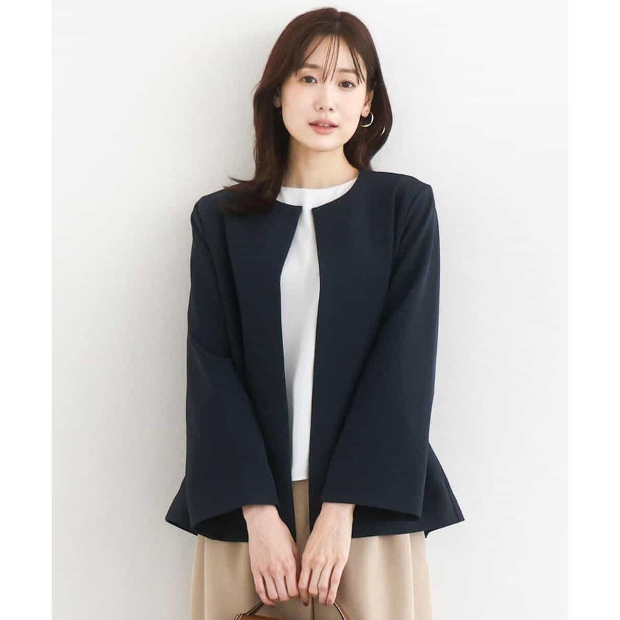 テントラインのシルエットが特徴的な、お仕事用ジャケット。 裾に向かって広がるデザインで、お腹や腰周りをさりげなくカバーしてくれて、自然とスタイルアップして見えました。 普段のジャケットより軽く感じて、腕周りや身幅にもゆとりがあります。さっと羽織れるので、きちんと感は欲しいけどラクに着たい日にちょうどいい一枚です。 自宅で洗えて、防シワ加工付きなのも助かるポイント。 同素材のパンツと合わせると、簡単にこなれたビジネスコーデの完成です。