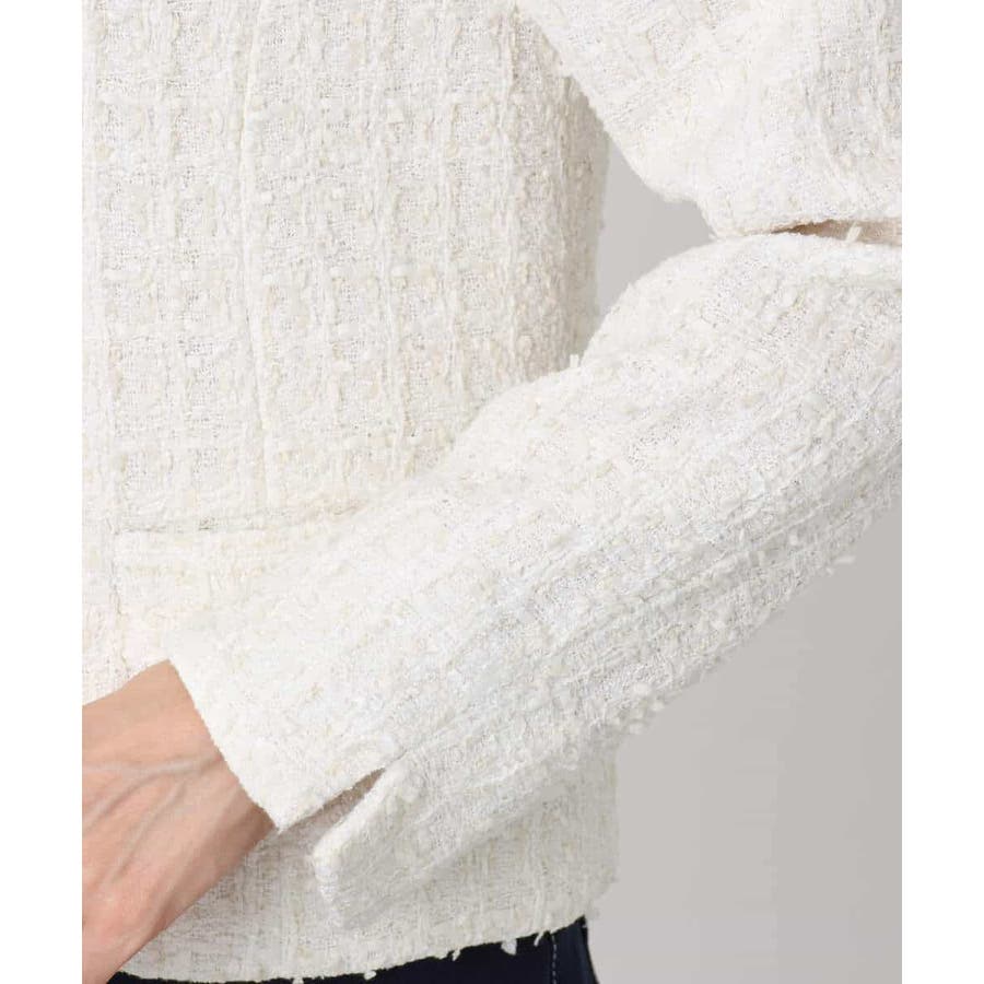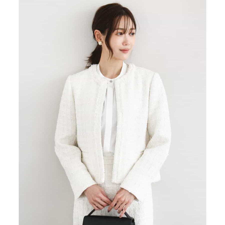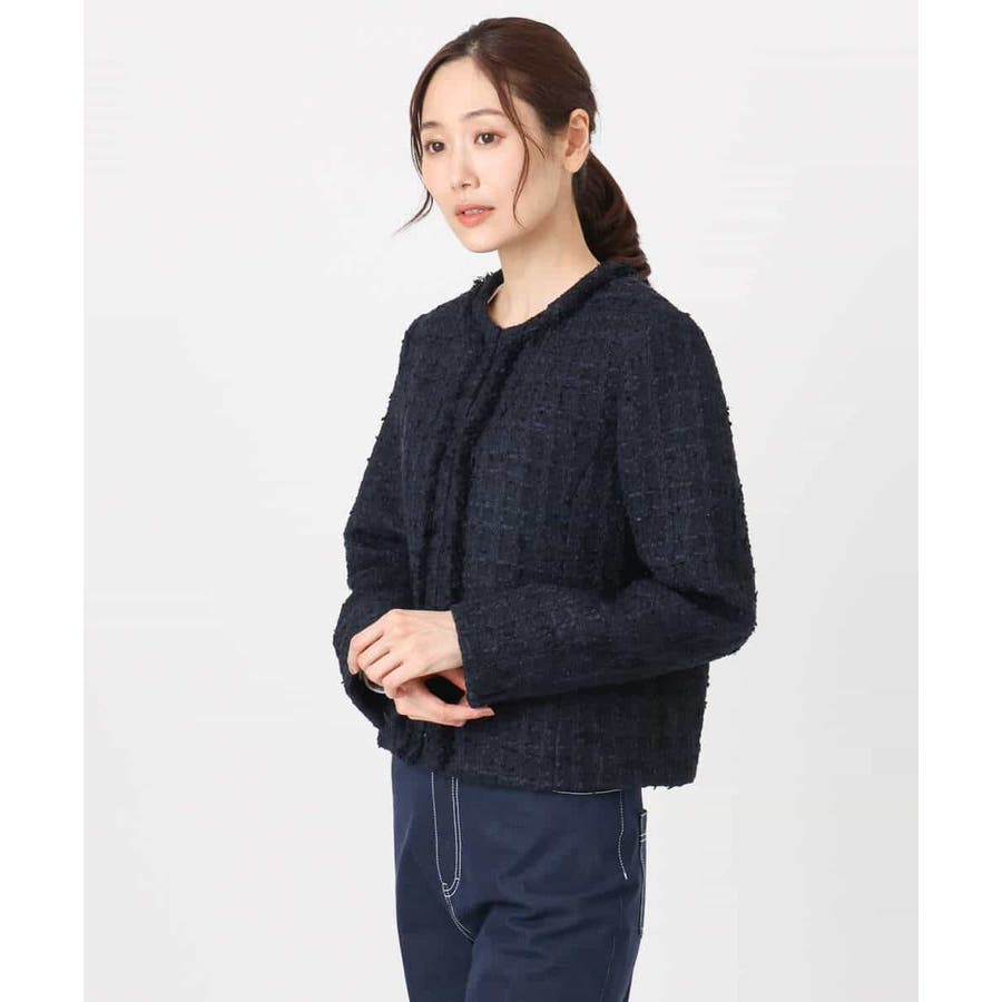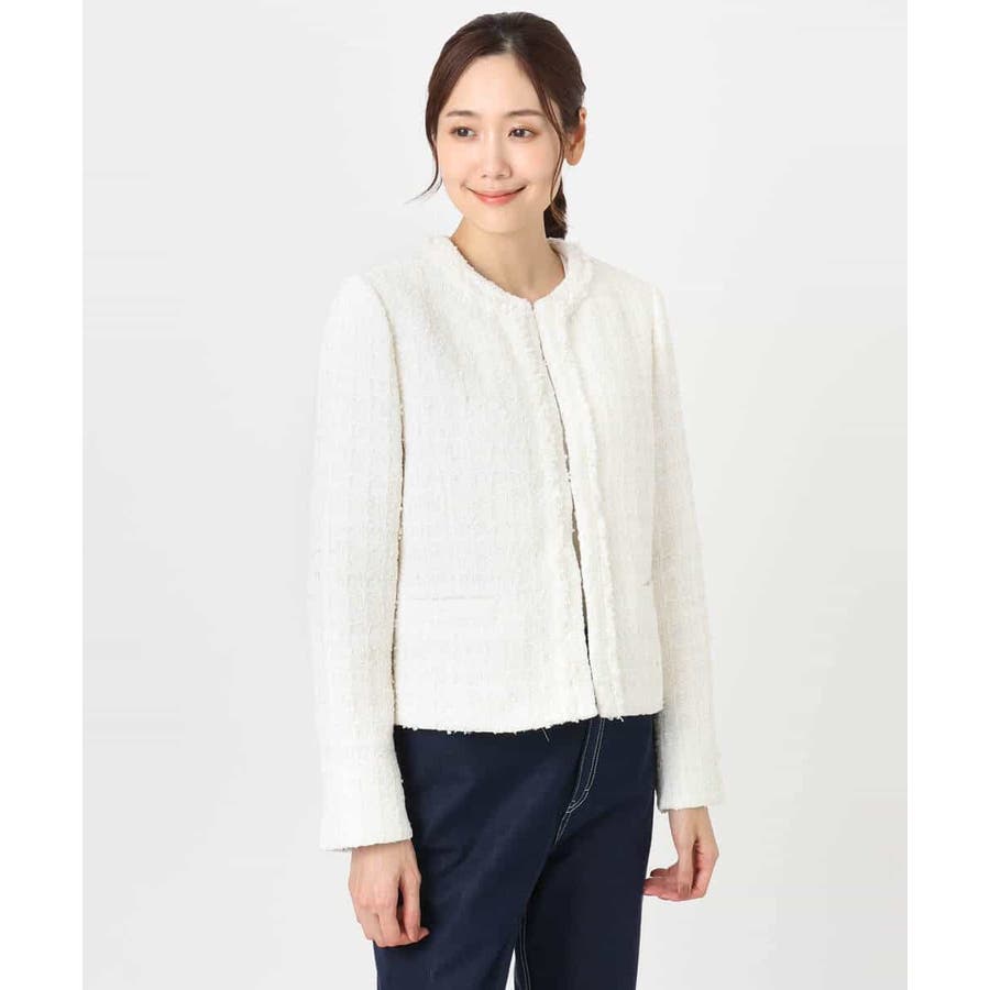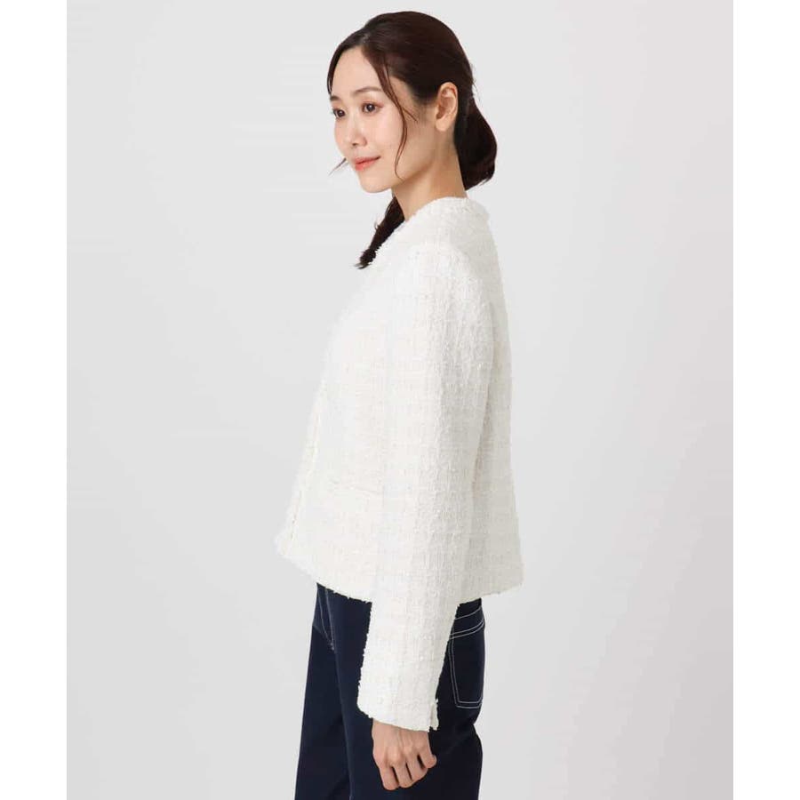 ノーカラーファンシーツイードジャケット/セットアップ対応/洗える