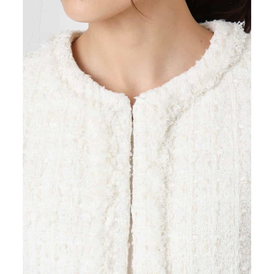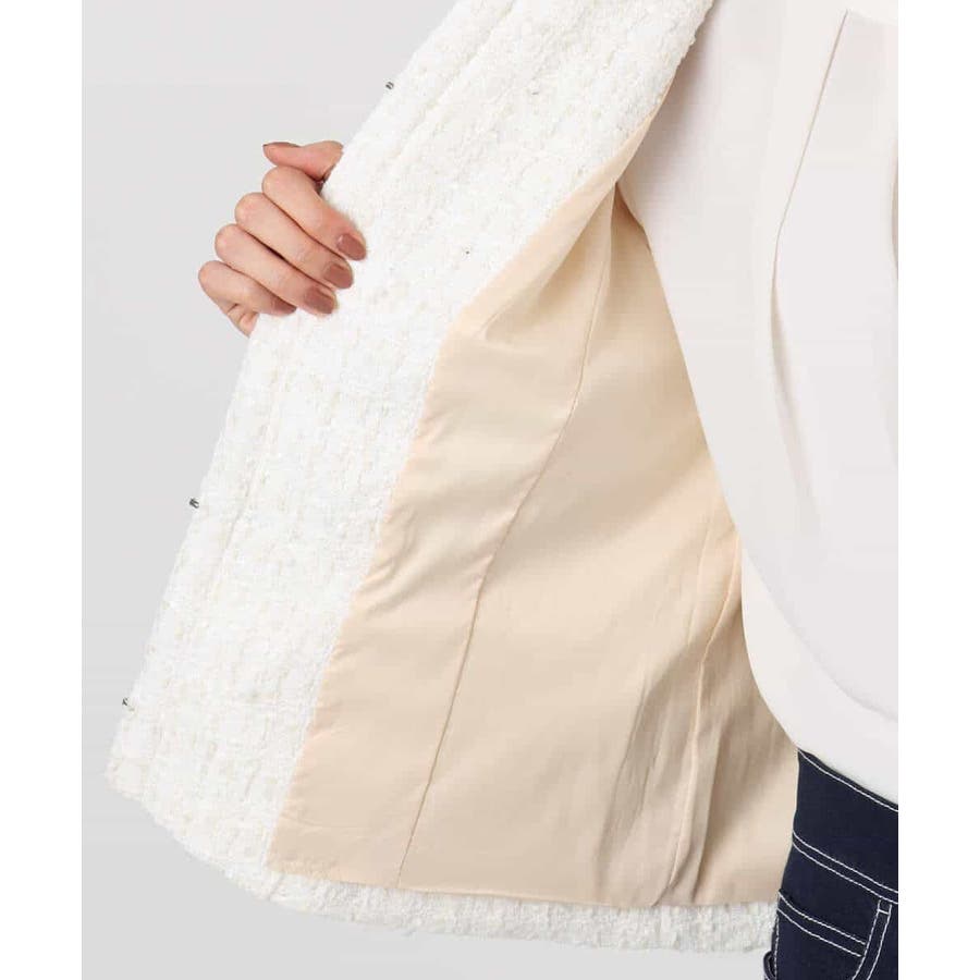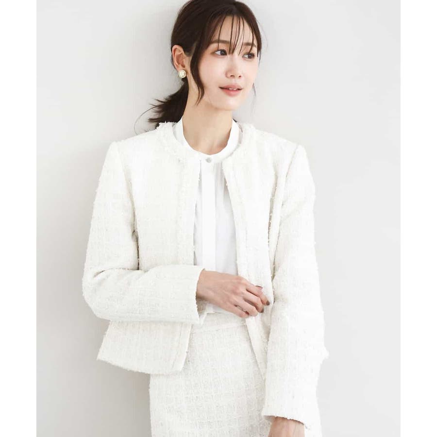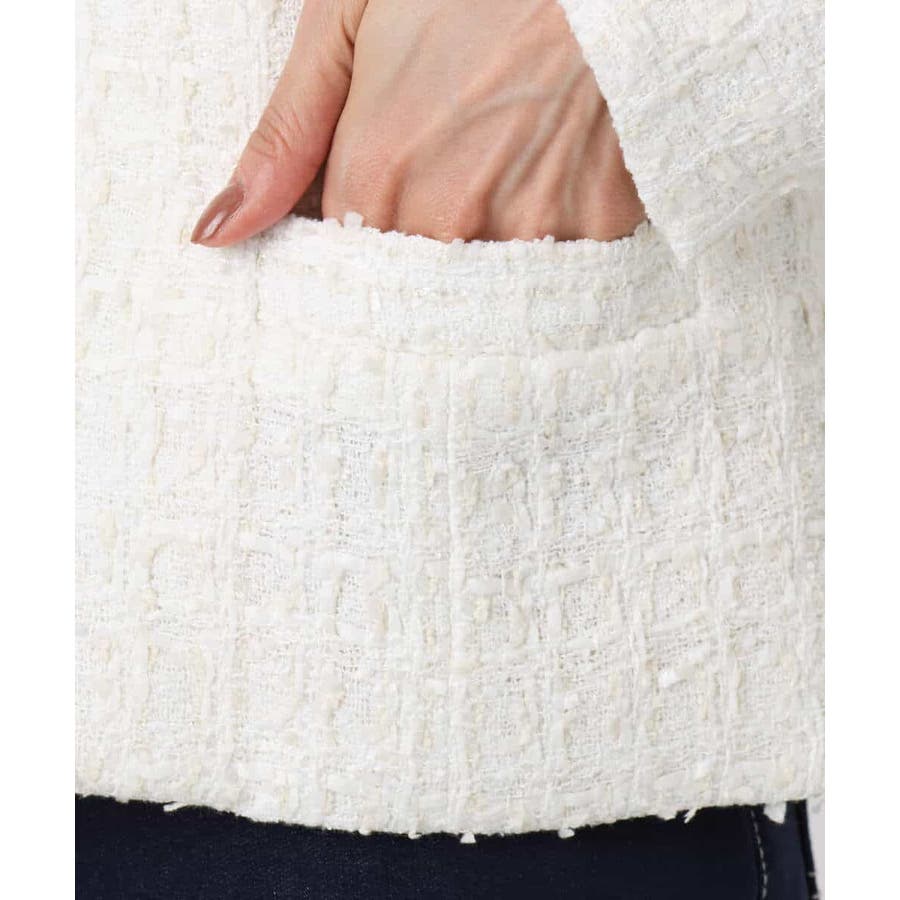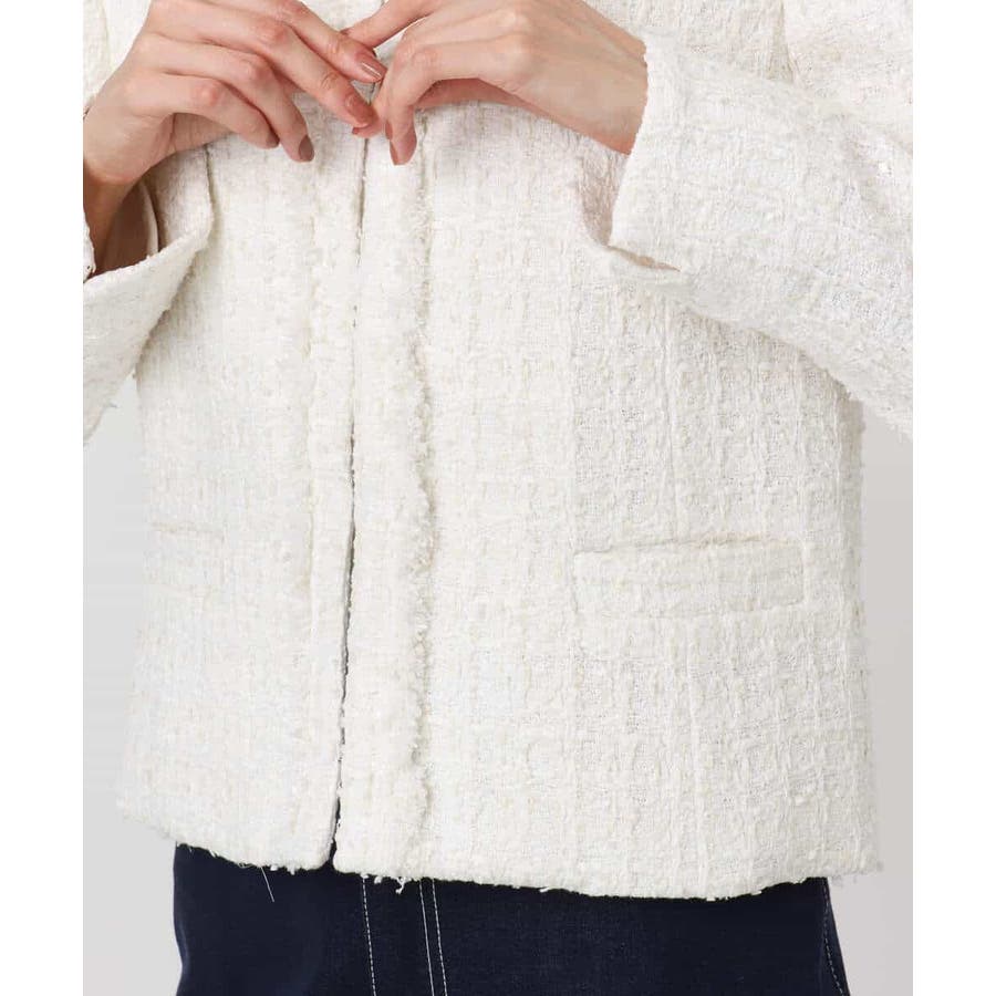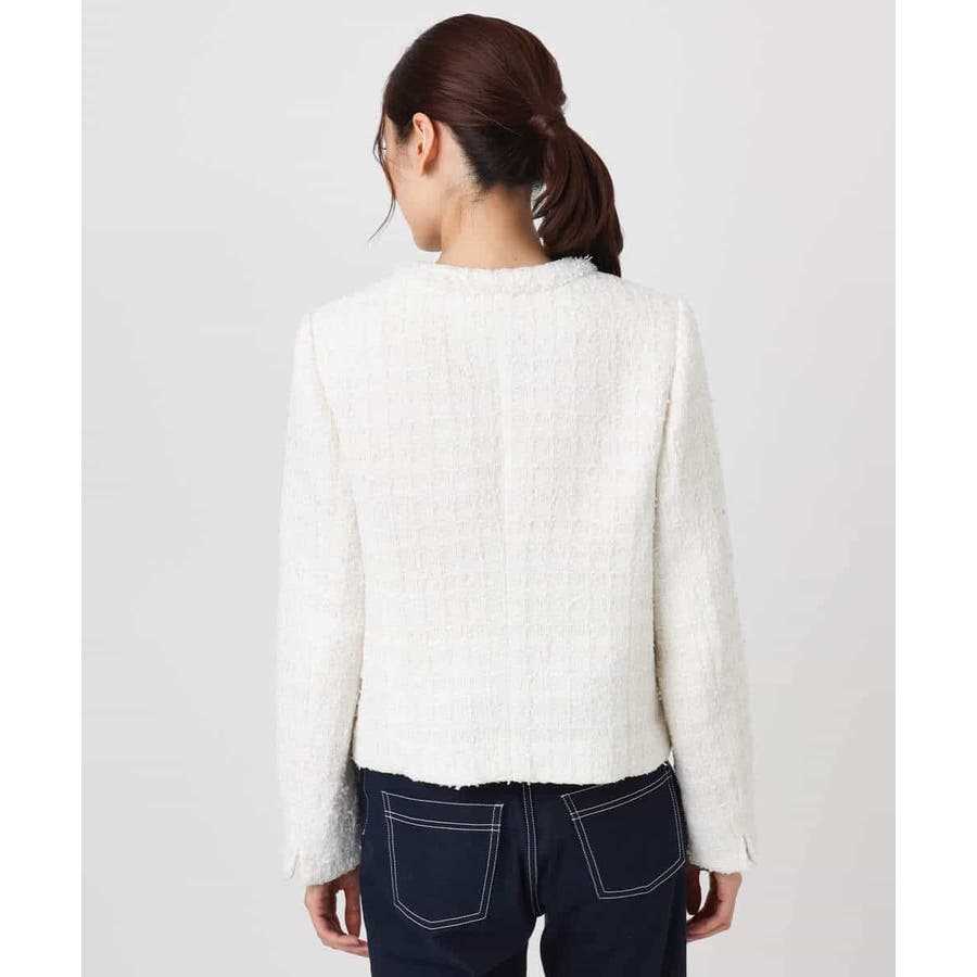 ノーカラーファンシーツイードジャケット/セットアップ対応/洗える