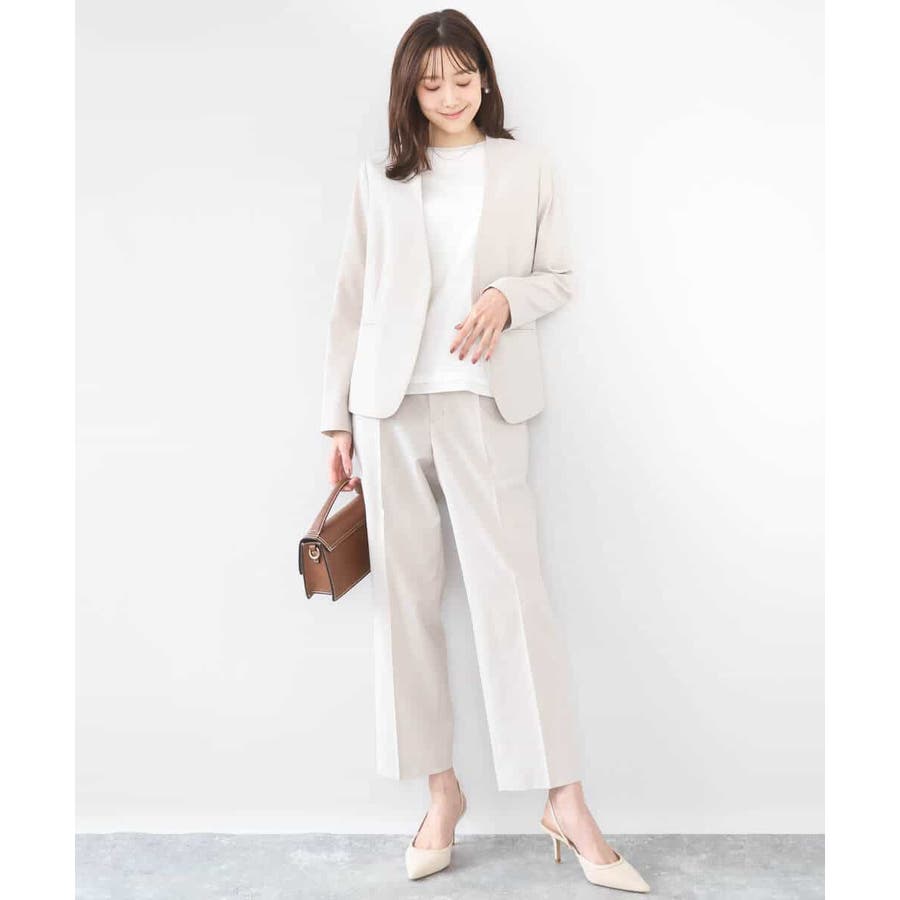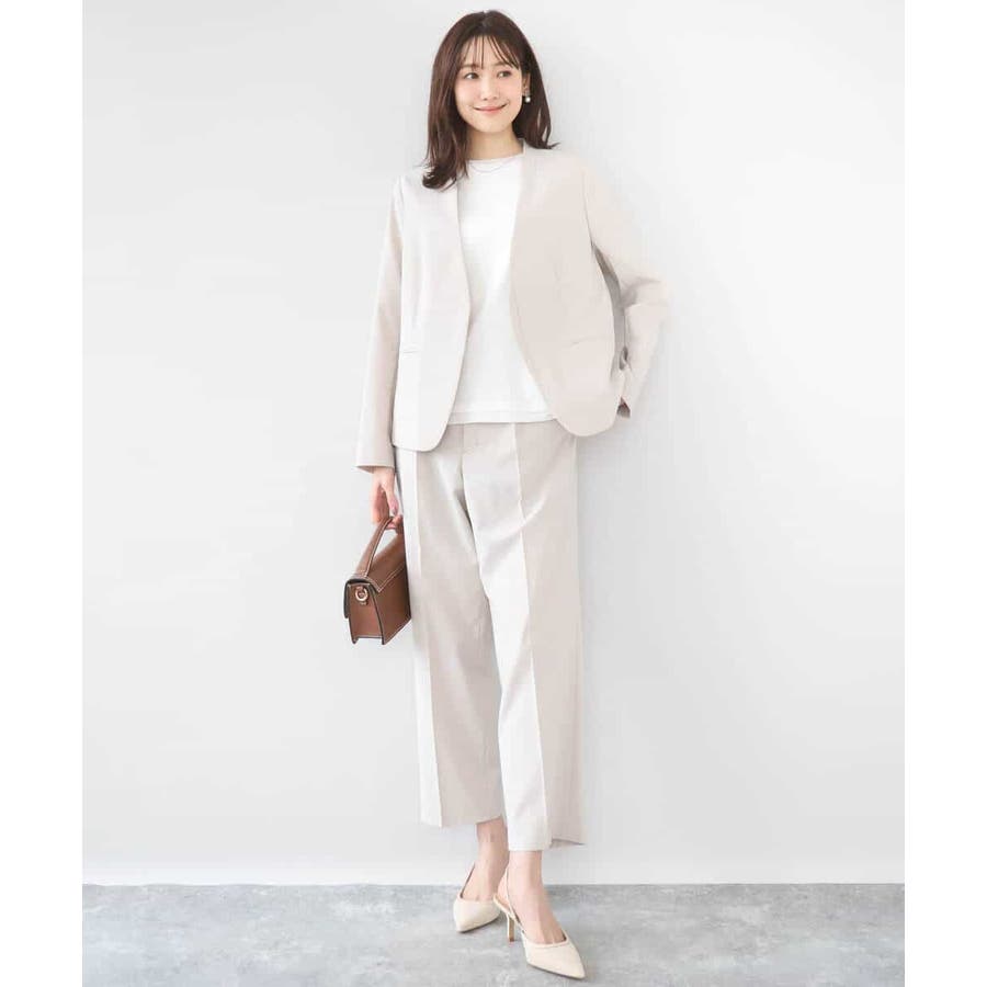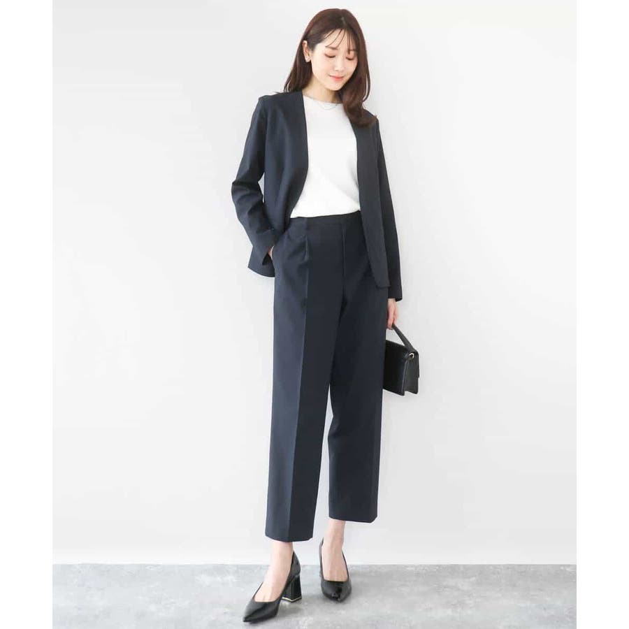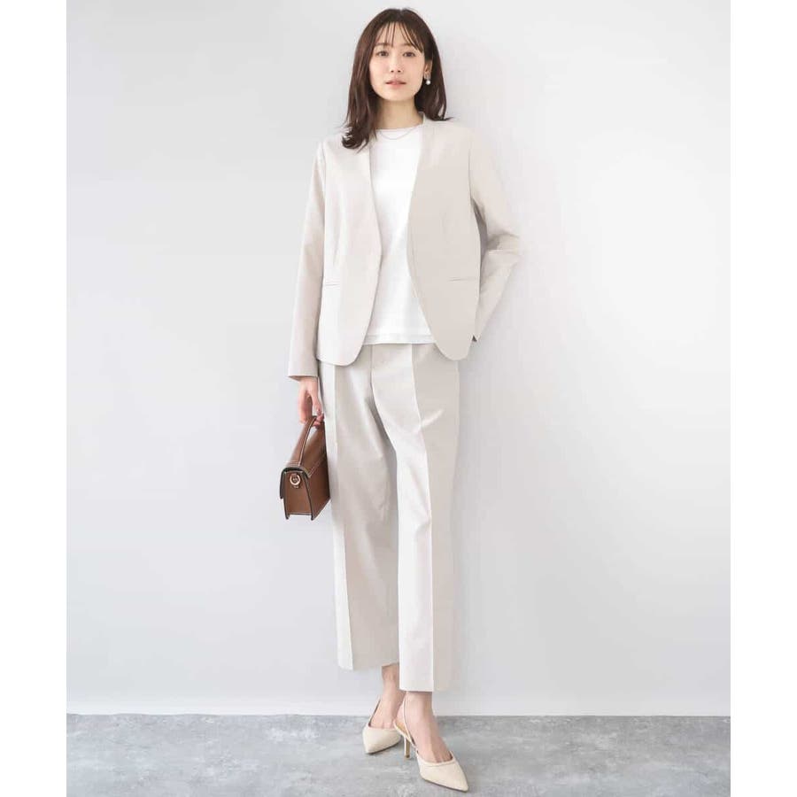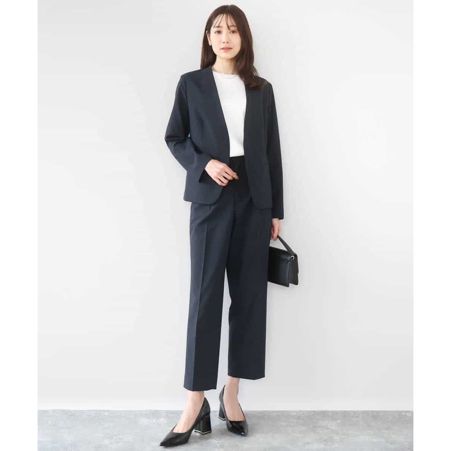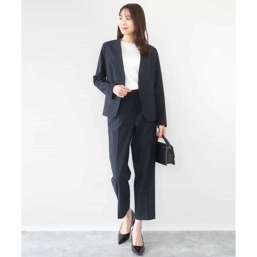 合わせるアイテムを選ばないシンプルなジャケットは毎日の通勤に最適。同素材のパンツを2型ご用意しているので、スーツセットアップとしても着用できます。