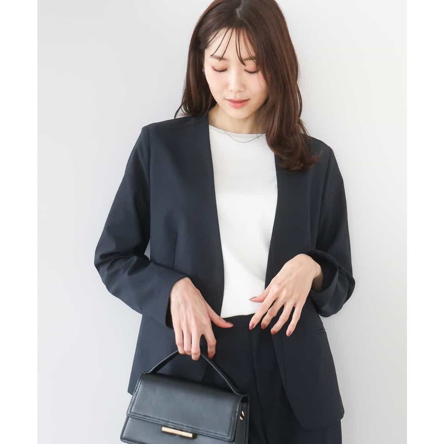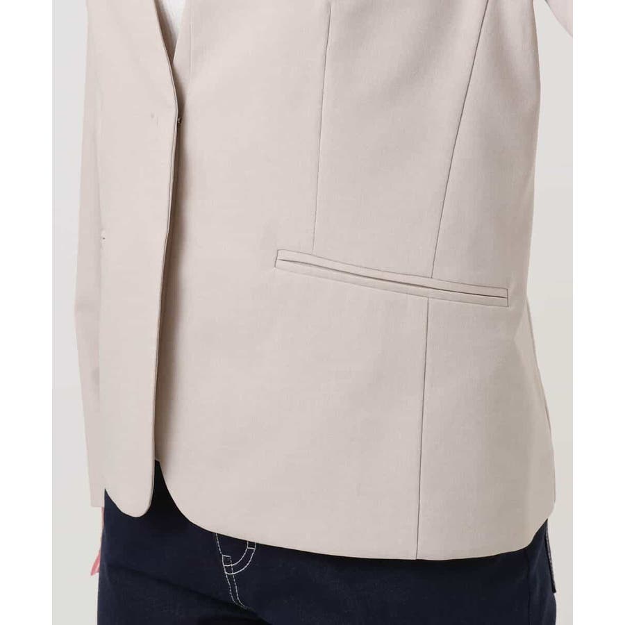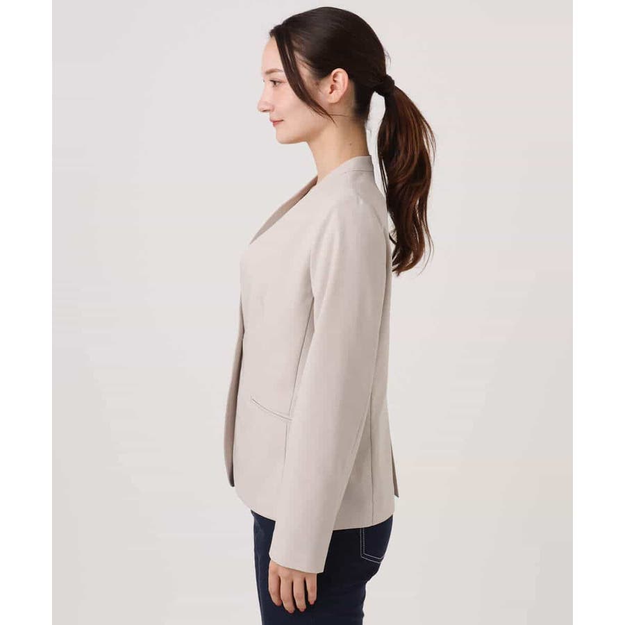 程良くゆとりを持たせたサイズ感のカラーレスジャケット。ストレッチの効いた素材は着心地の良さがポイント。ネックをきれいに見せる衿ぐりのラインや、すっきりとしたフロントデザイン、見返しを付けたインサイドポケットなど、細部までこだわったジャケットです。