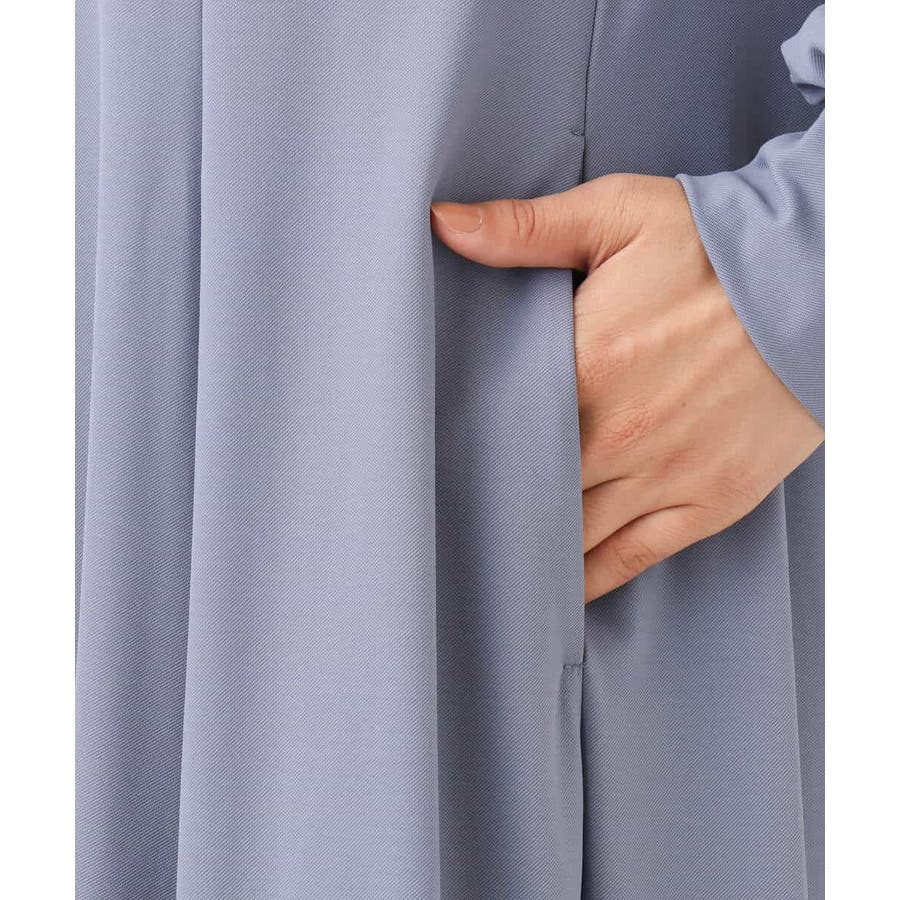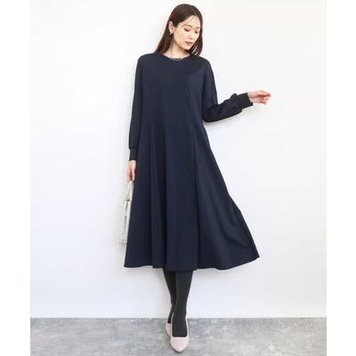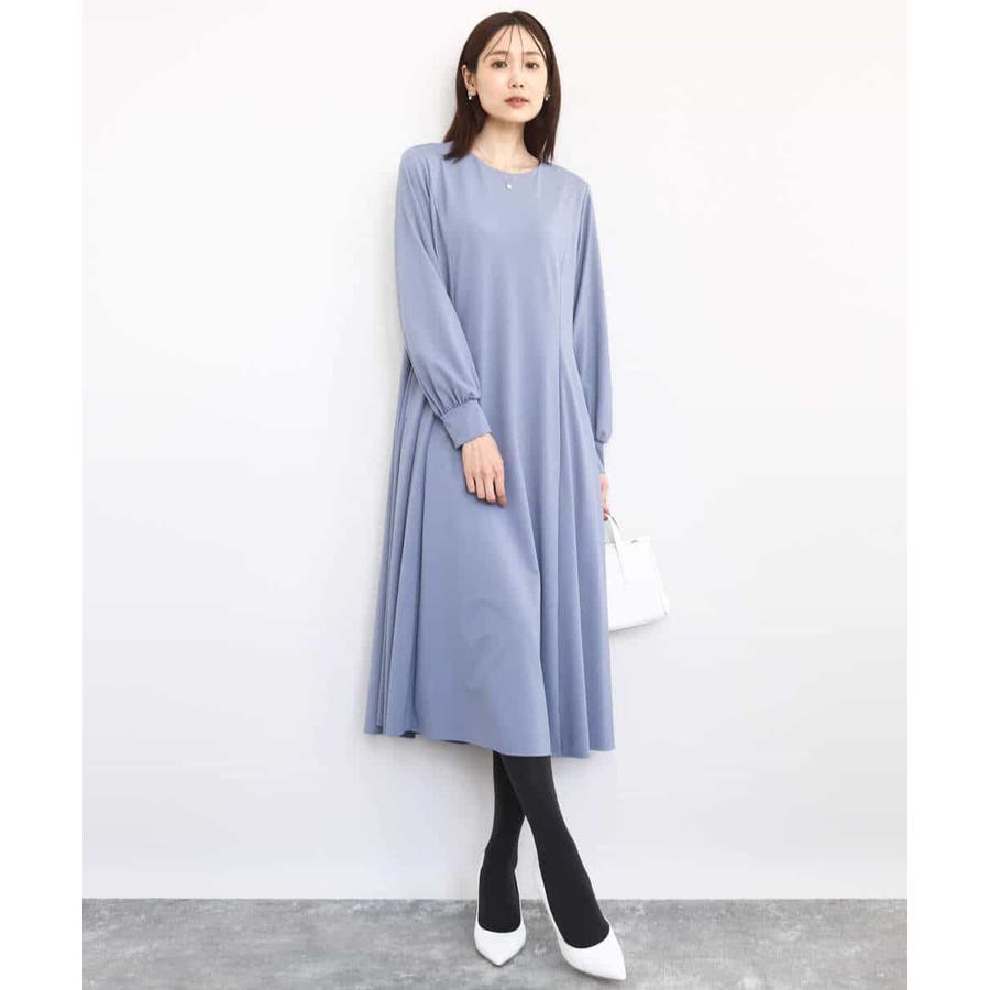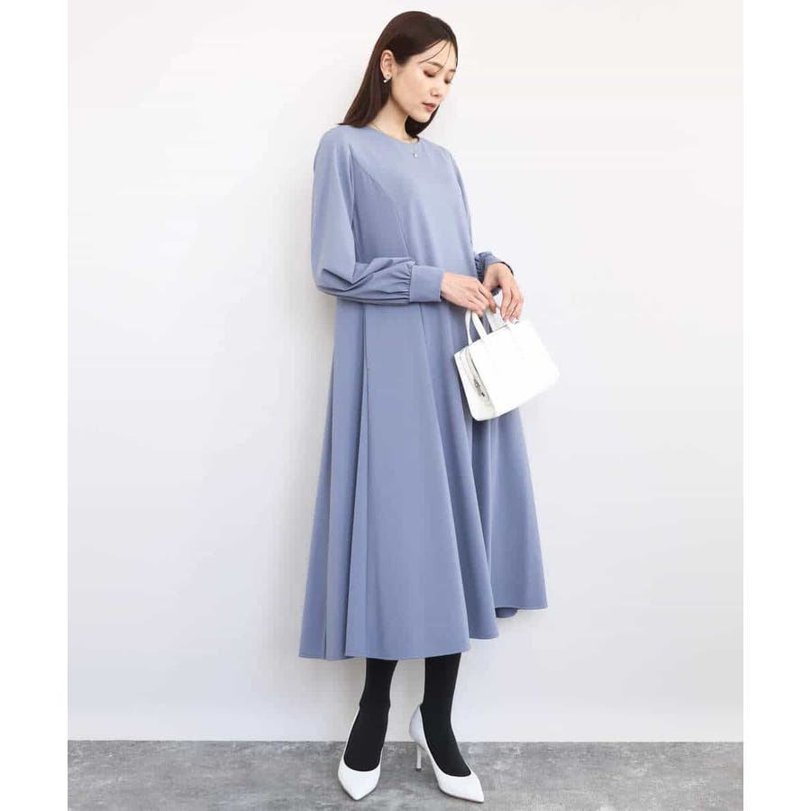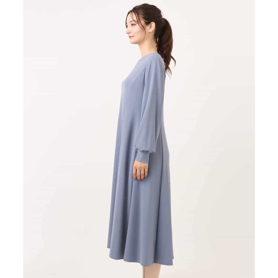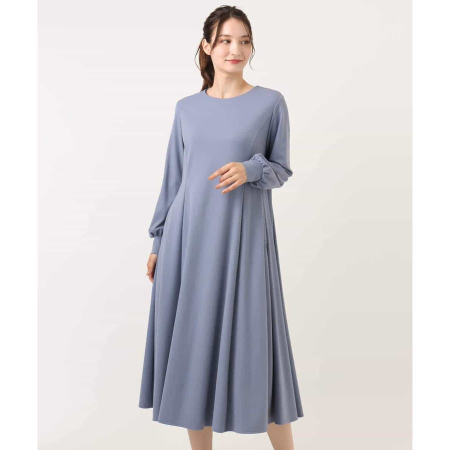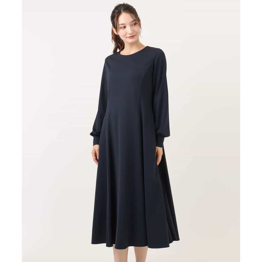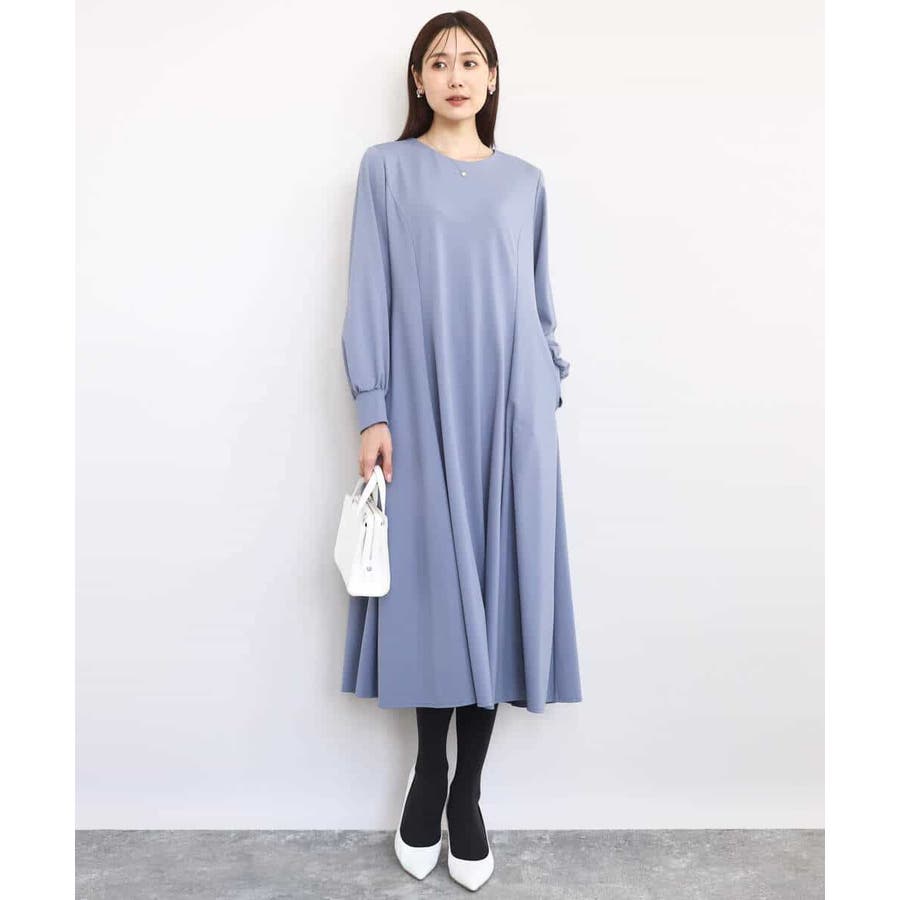 シンプルなデザインの長袖ワンピース。ウエストからきれいに広がるシルエットのきれいさが魅力です。落ち感のある素材はふんわりというよりは上品なシルエットで大人っぽく着こなせるのも嬉しい。便利なポケットありデザインです。