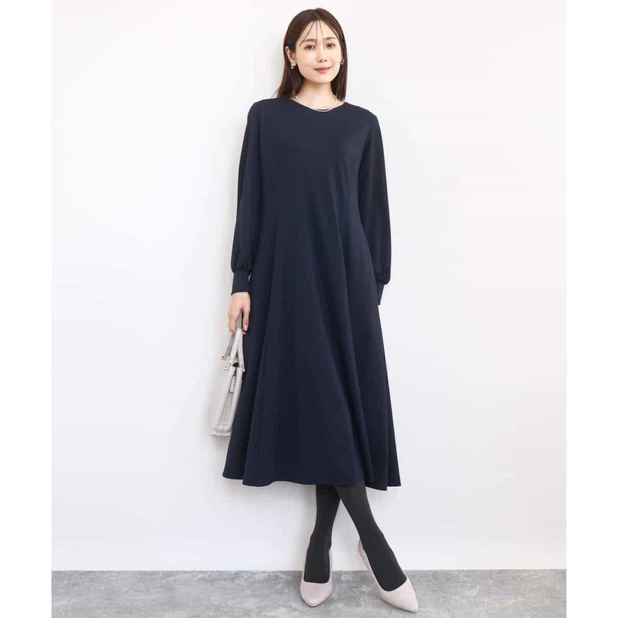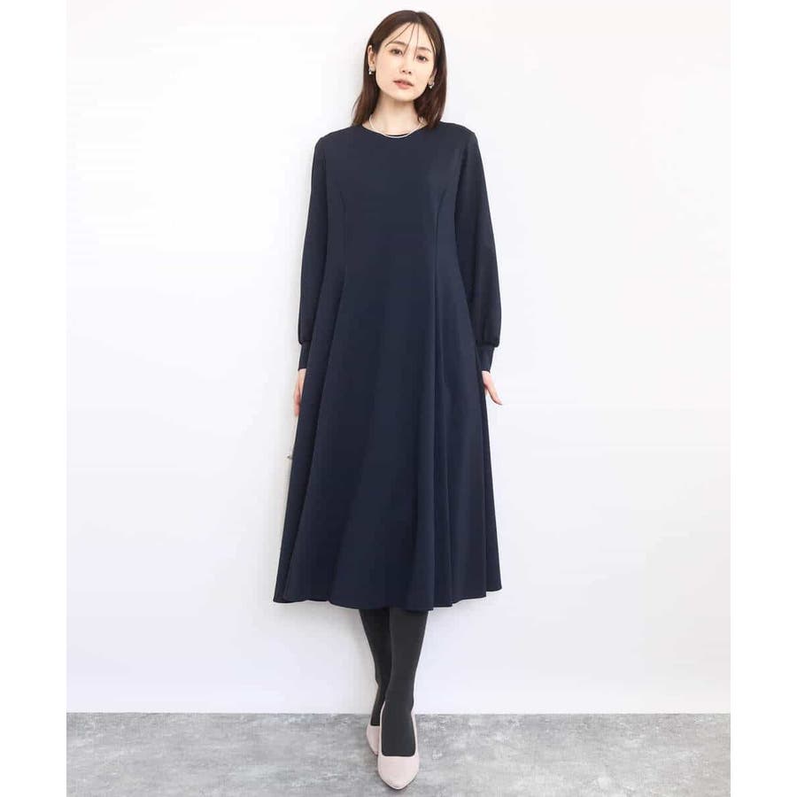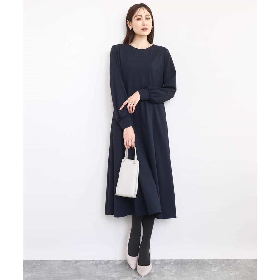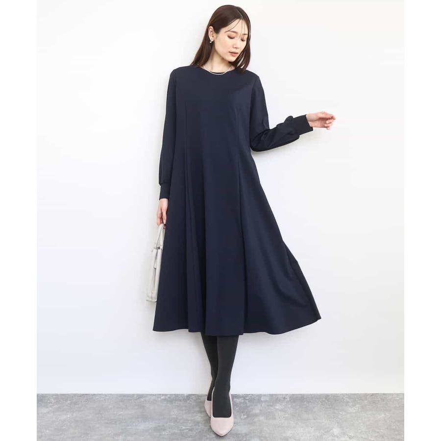 きちんと見えのシンプルワンピースはお仕事やお食事会、式典や二次会などのセミフォーマルシーンにまで幅広く着回し可能。一枚でも、ジャケットやカーディガン合わせでもすっきりと着こなせます。