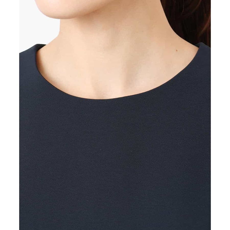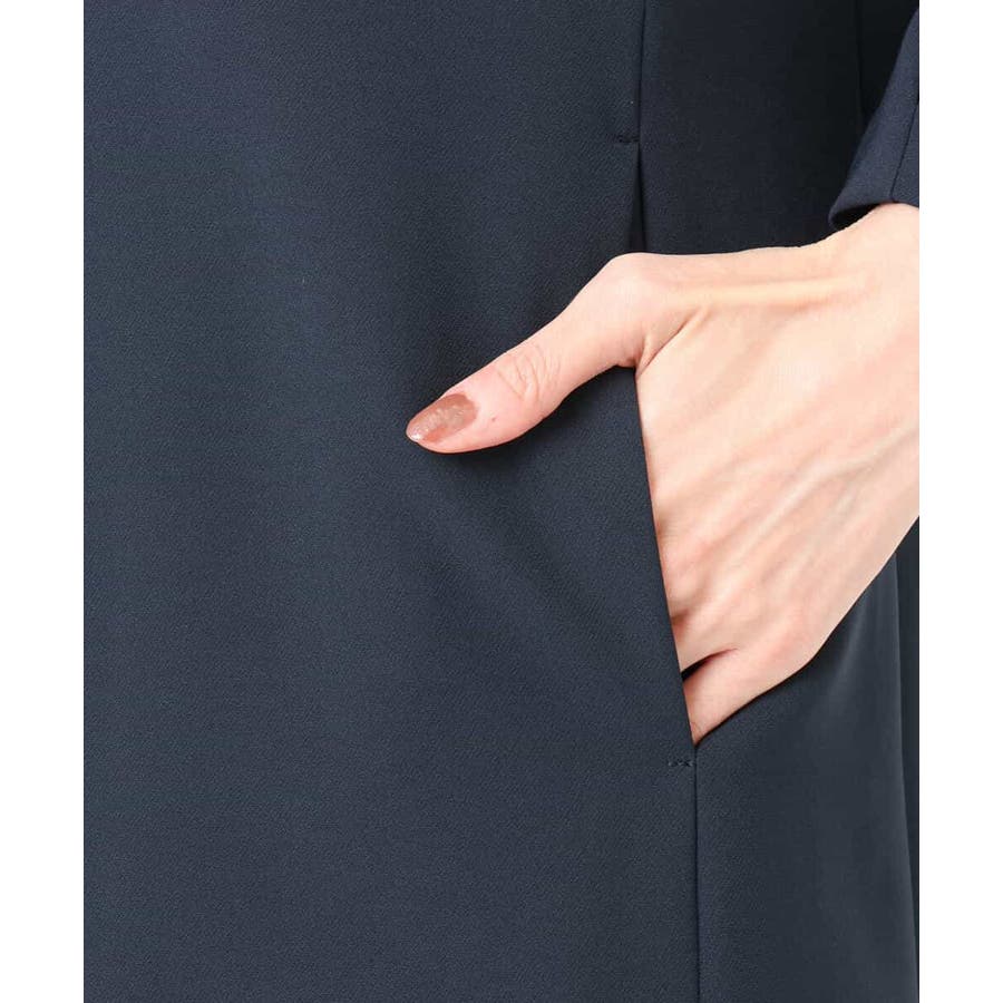 シワになりにくくお手入れもラクなきれい見え素材を使用。なめらかな表面感と程よい光沢感が魅力の素材はシーズン関係なく着用しやすい素材感です。動きやすいストレッチ感とお仕事にも嬉しい防シワ機能付き。