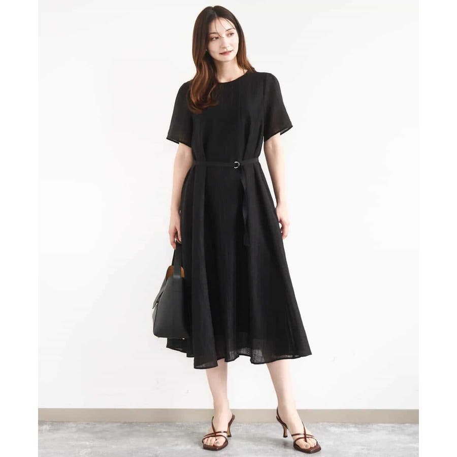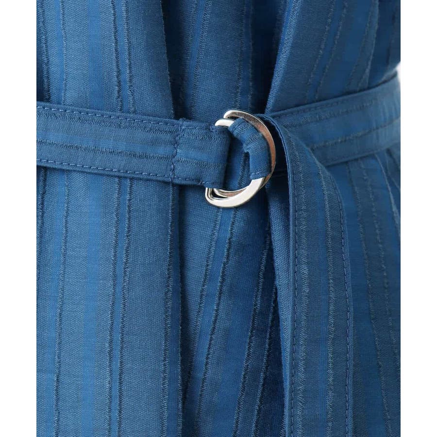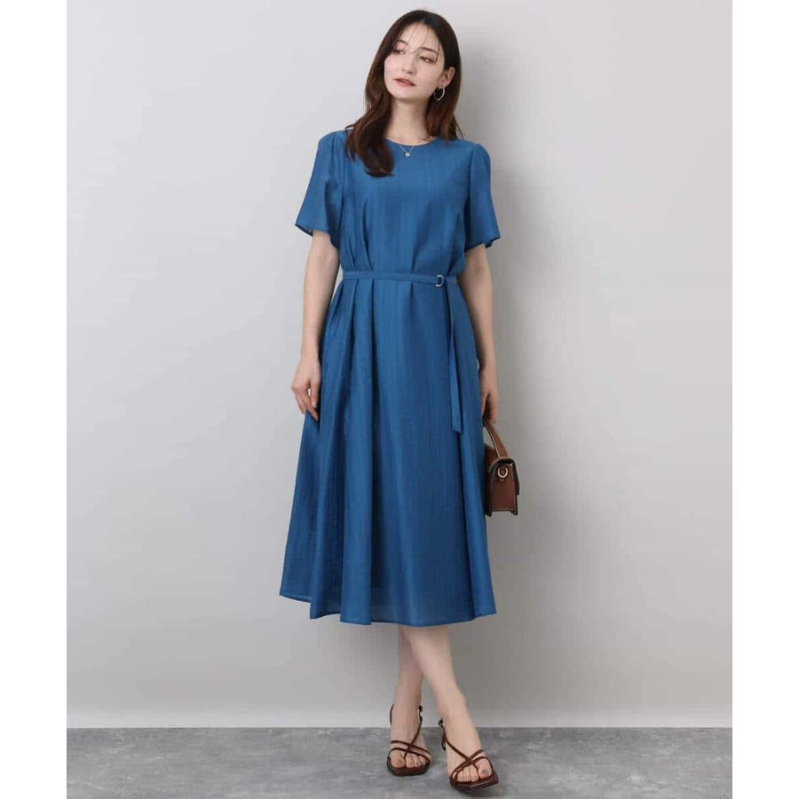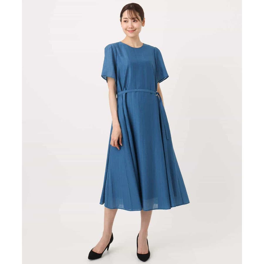 さらりとしていて肌離れのよい、ややシャリ感のある素材。フレアシルエットでゆとりがあり、お休みの日もリラックスして着ていただけます。付属のベルトをするときちんとした印象になるので、お仕事やお食事会にもOK!微光沢のドビーストライプが目を引く、とても着やすいワンピースです!