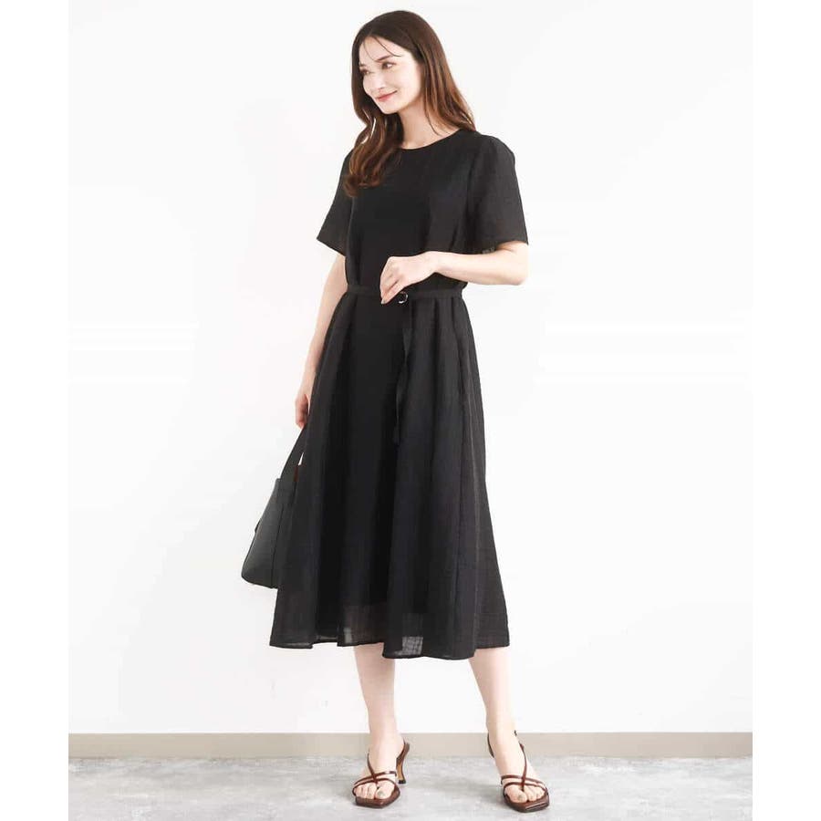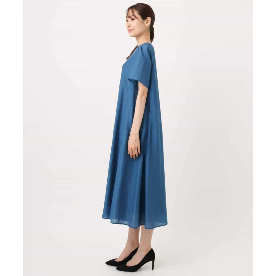さらっと着るだけできれいなシルエットが決まるフレアーシルエットのワンピース。ややゆったりと体のラインを拾わないシルエットがポイントです。共地のウエストベルトが付いているので、ウエストマークしたスタイリングもおすすめですが、ベルト無しでも胸下から広がるフレアーなラインが着膨れせずにきれいに着こなせます。