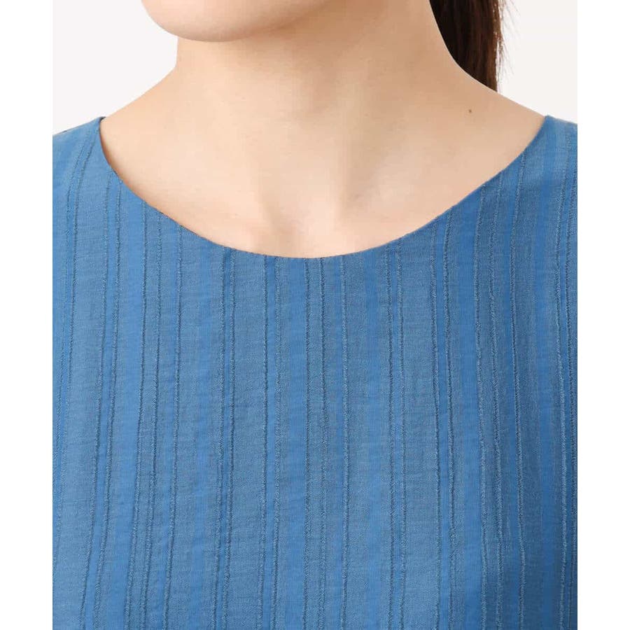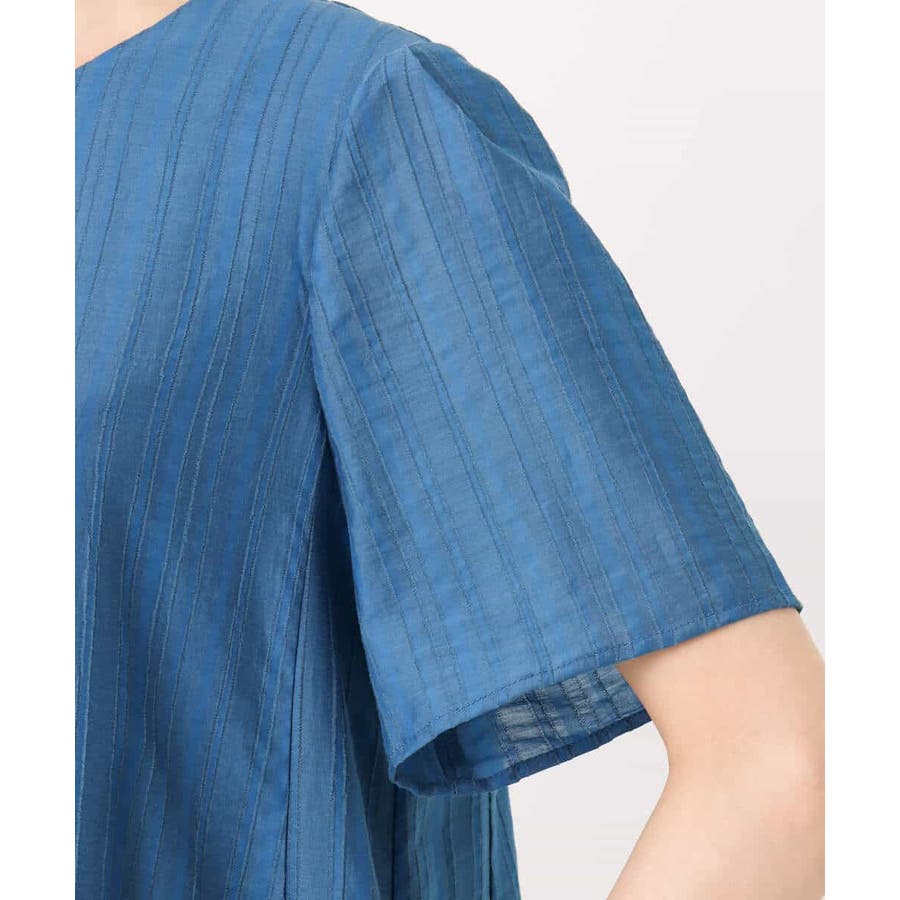 肌離れのいいドビーストライプの素材は着心地の良さが魅力的。シアーな素材ですが、裏地付きなので、着用時は透け感を気にせず一枚で安心して着こなせます。