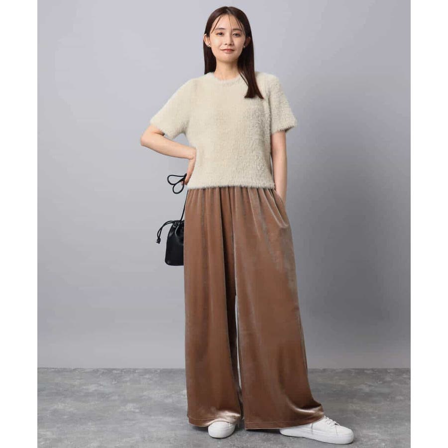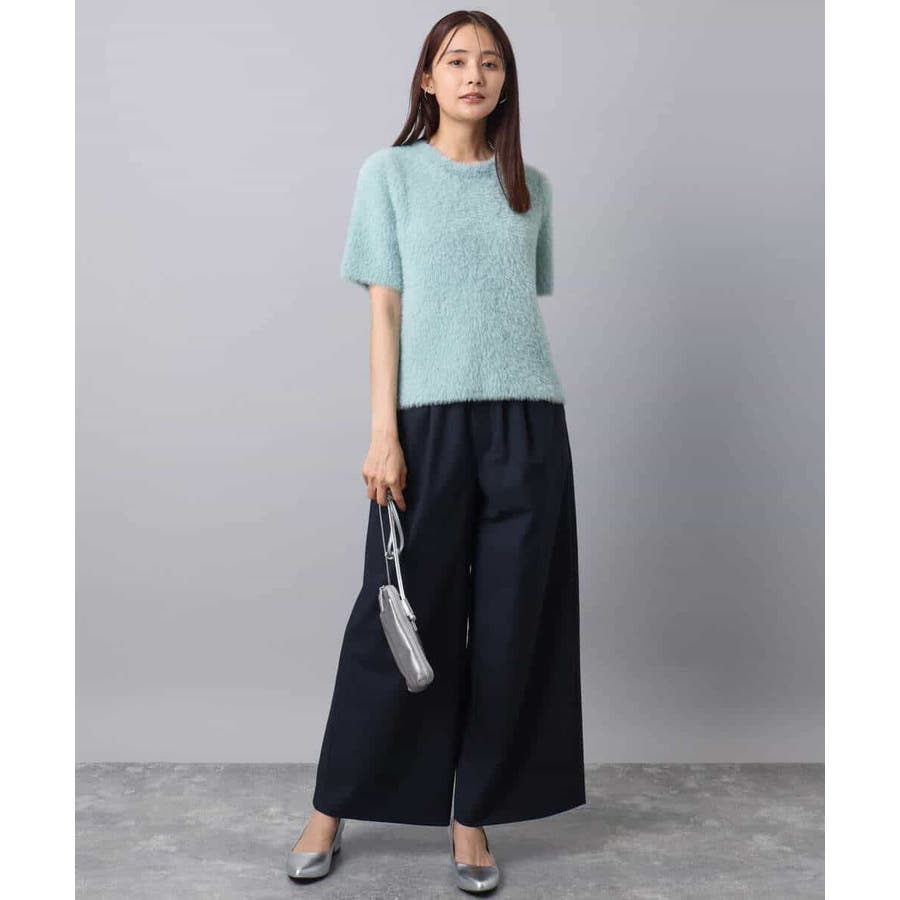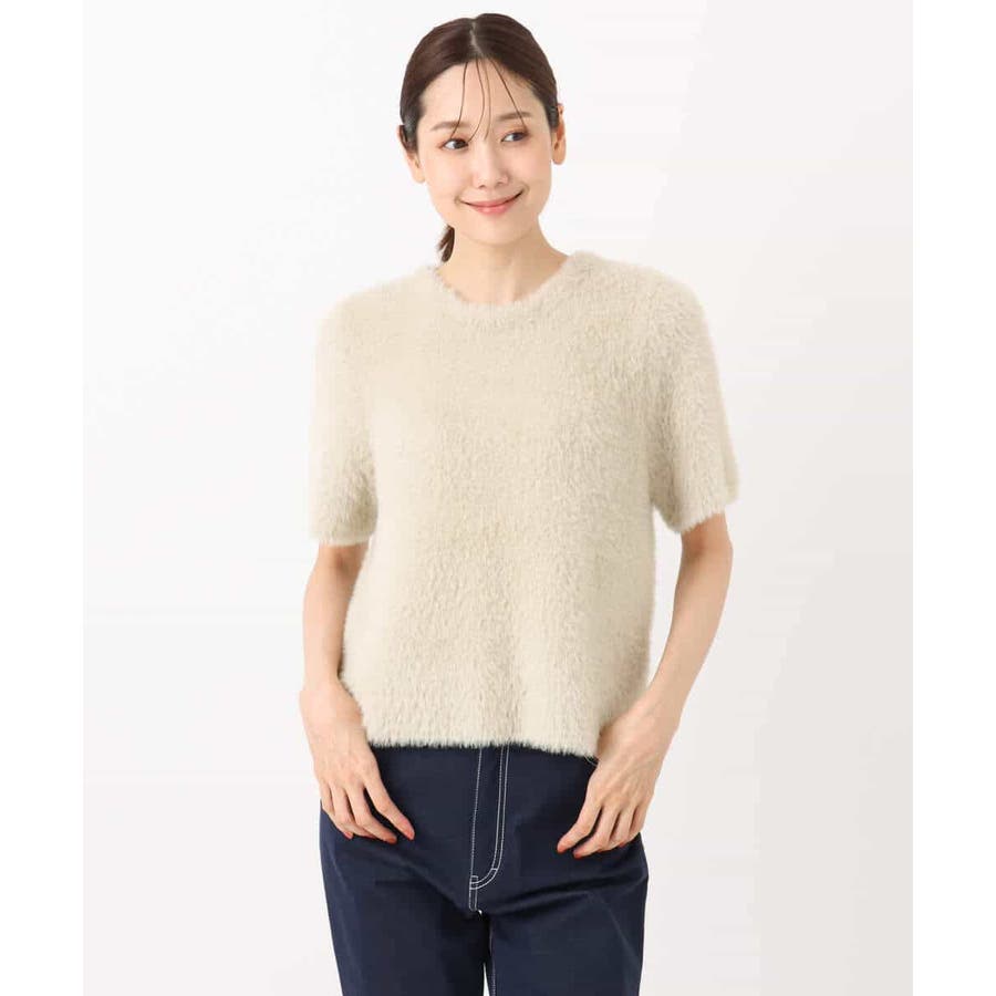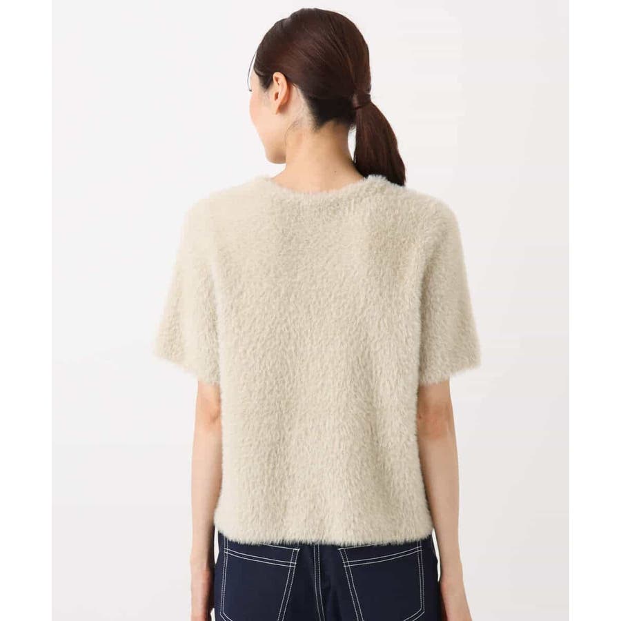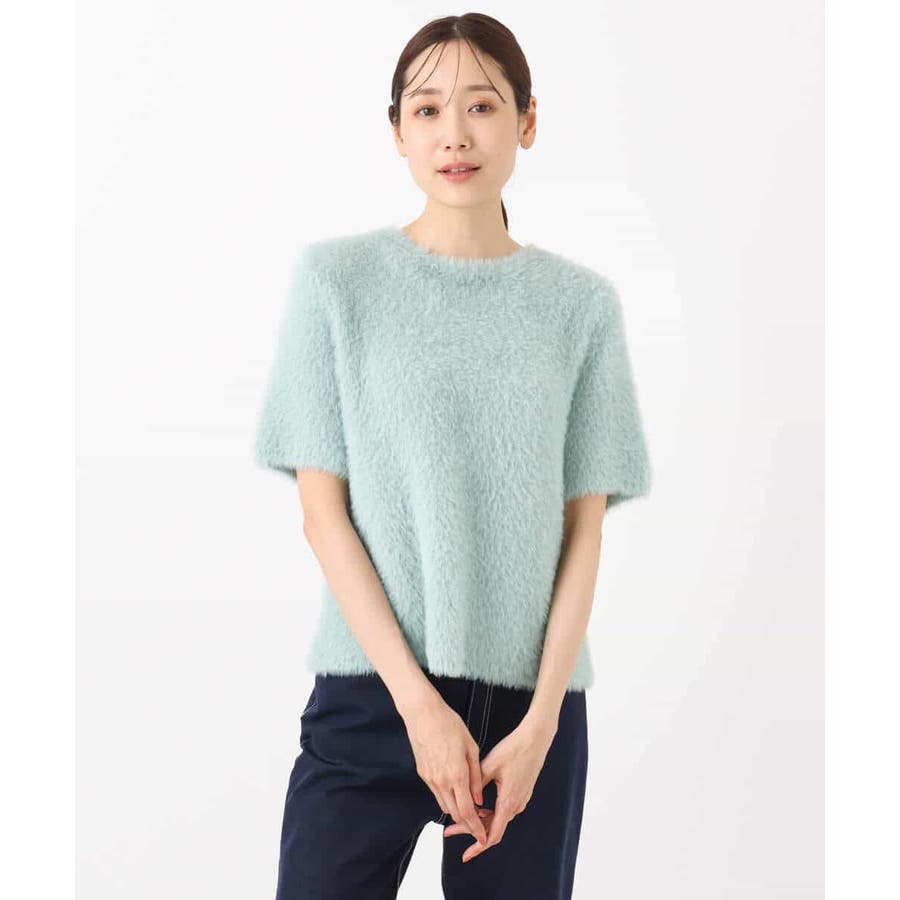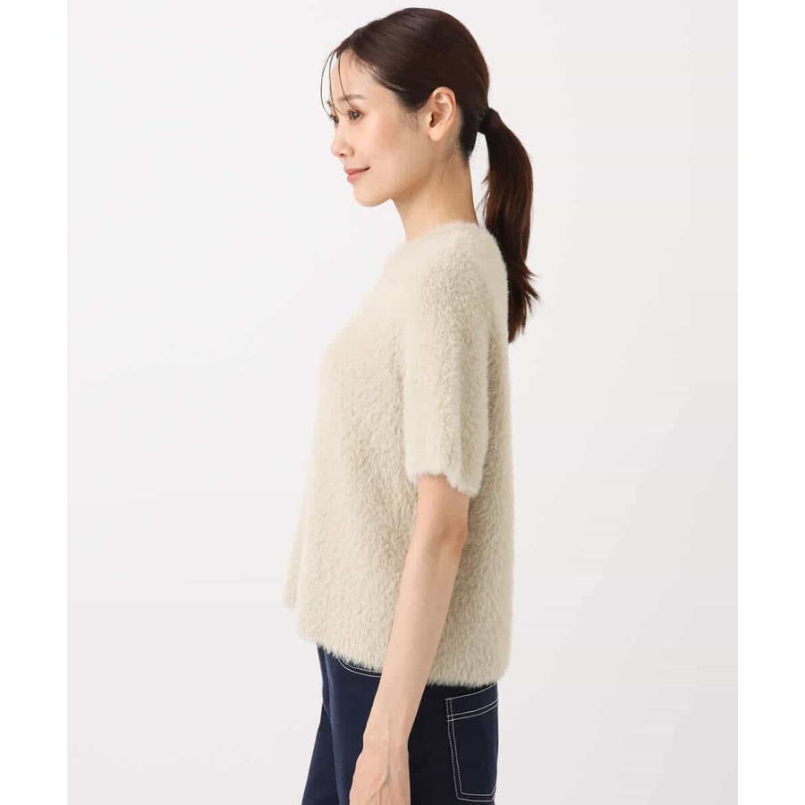 ■コーディネート ボトムを問わずコーディネートできるシンプルな半袖デザイン。見た目にも可愛いシャギーニットは上からアウターを羽織ってもアクセントに。