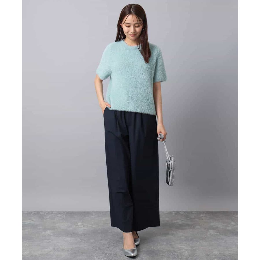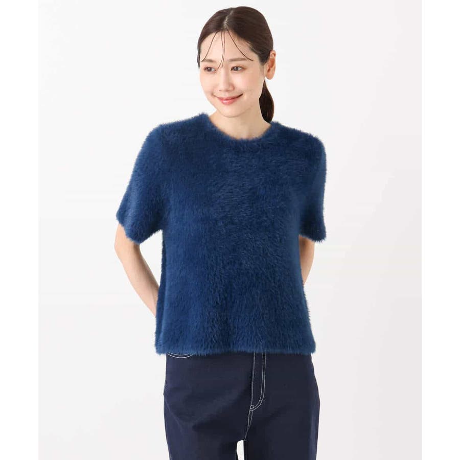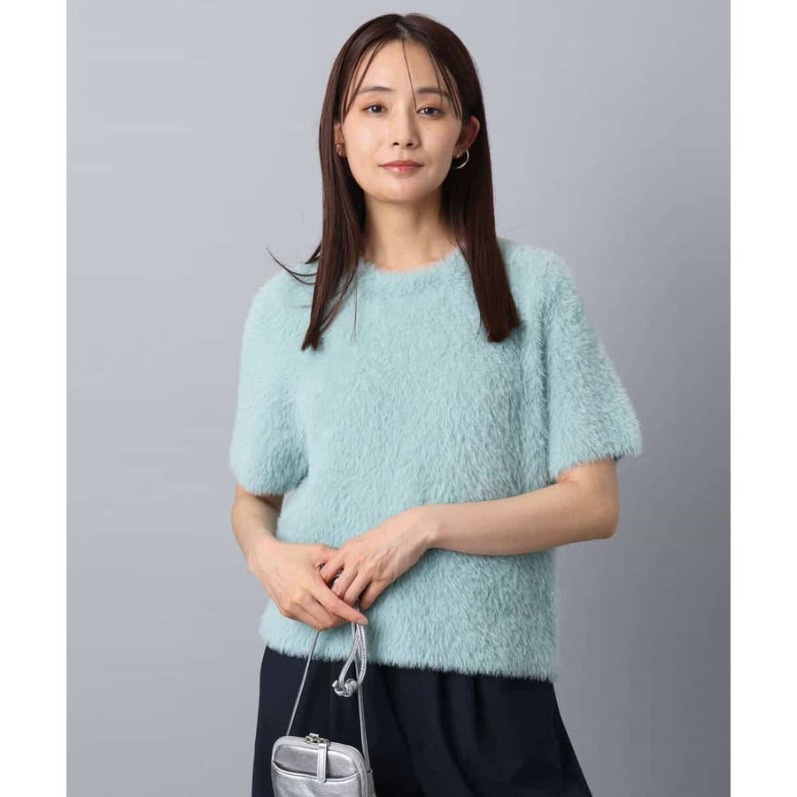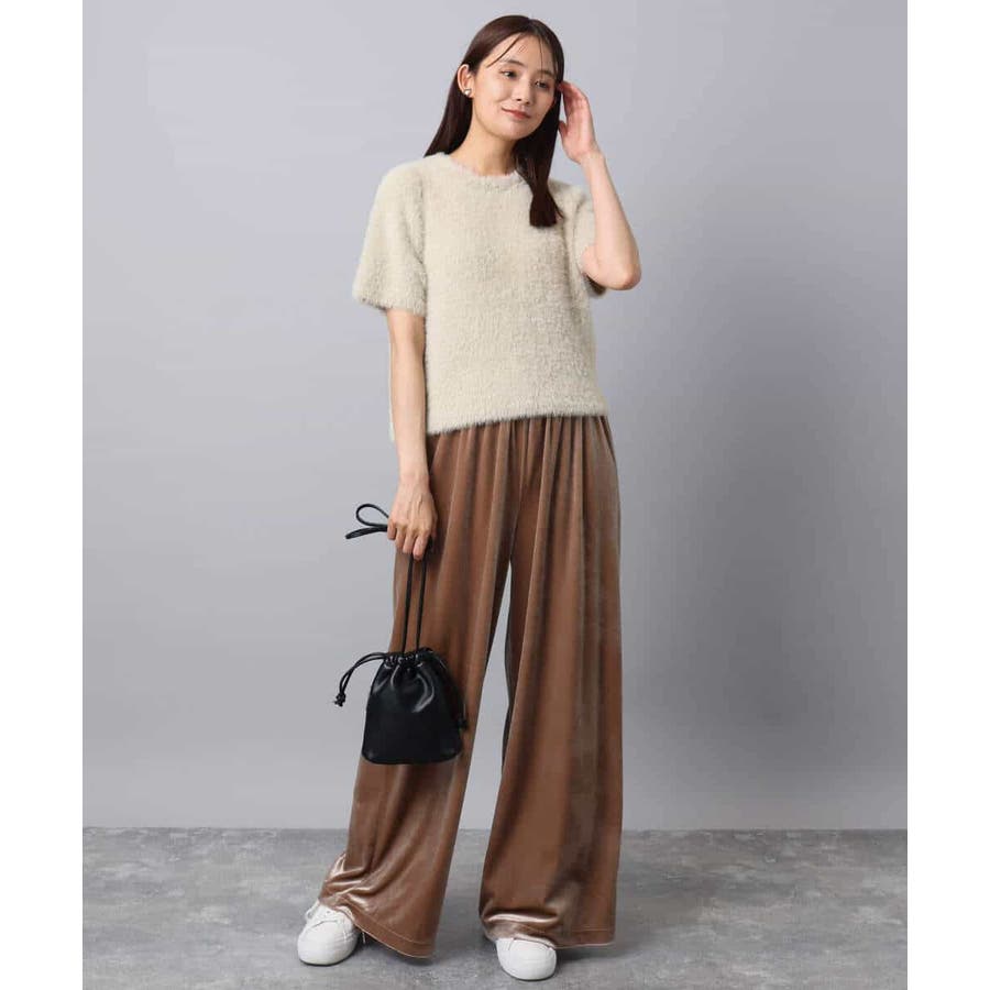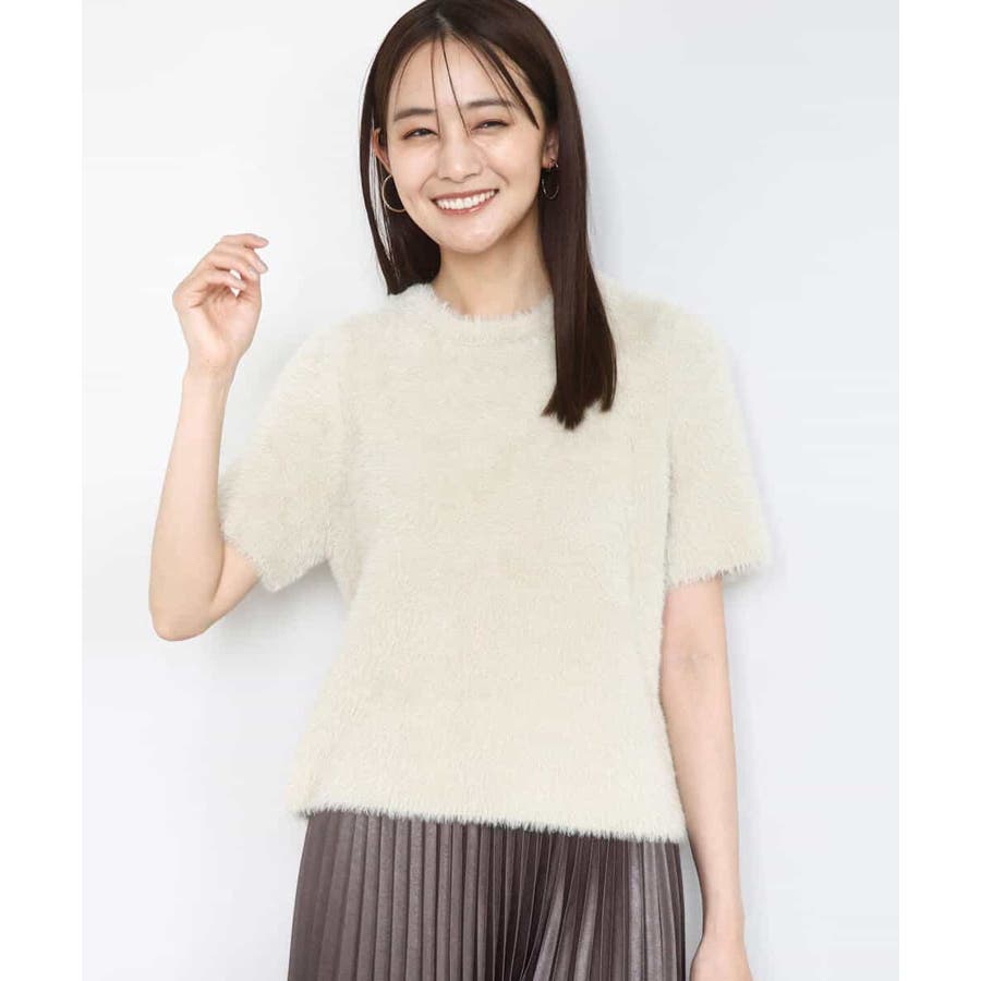 ■コーディネート ボトムを問わずコーディネートできるシンプルな半袖デザイン。見た目にも可愛いシャギーニットは上からアウターを羽織ってもアクセントに。