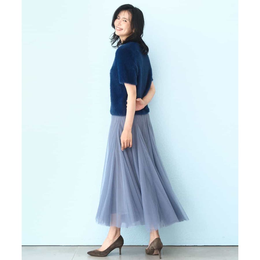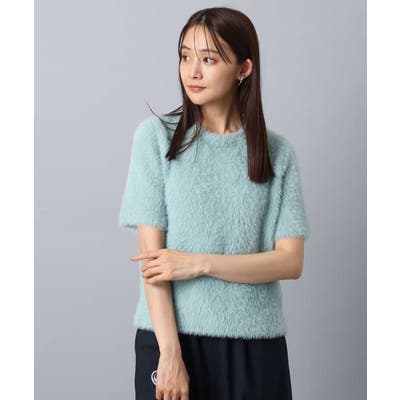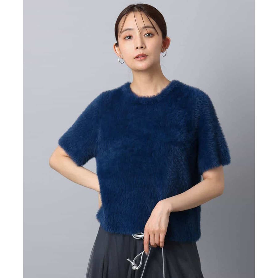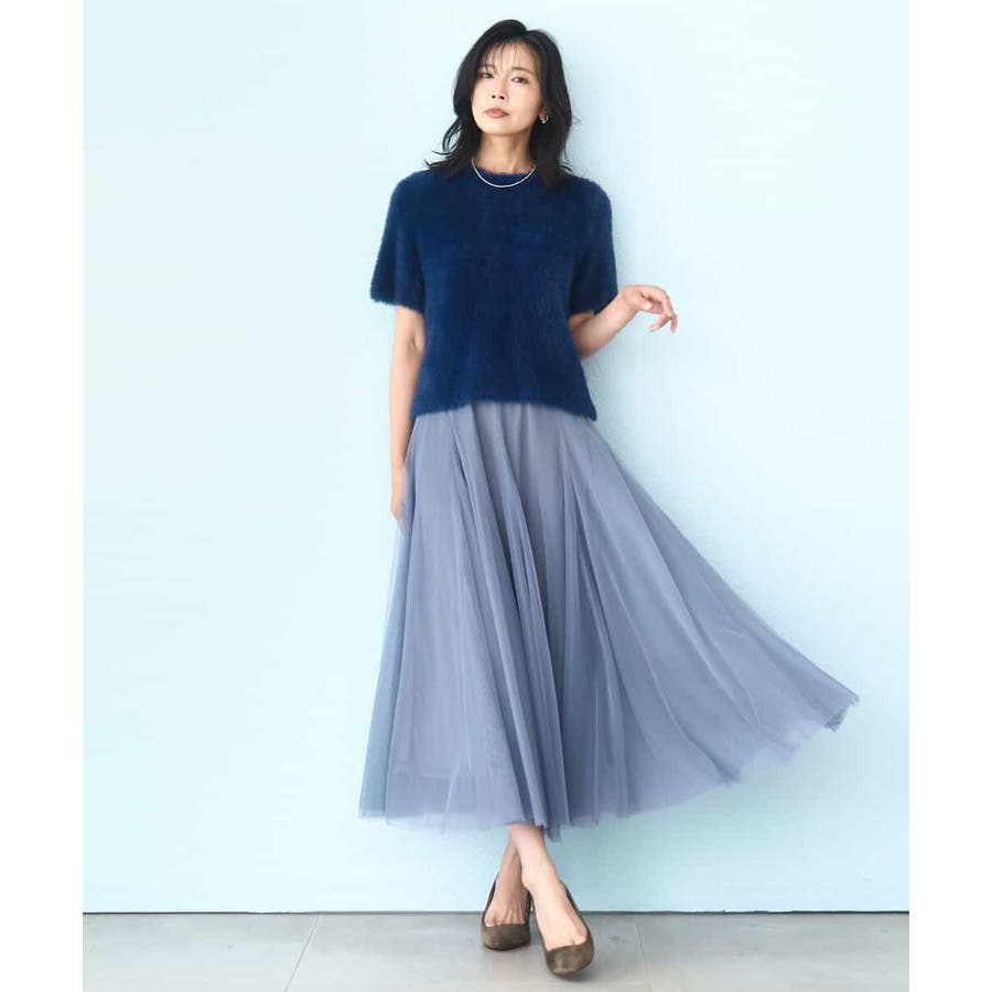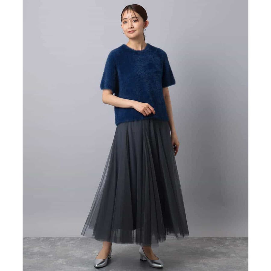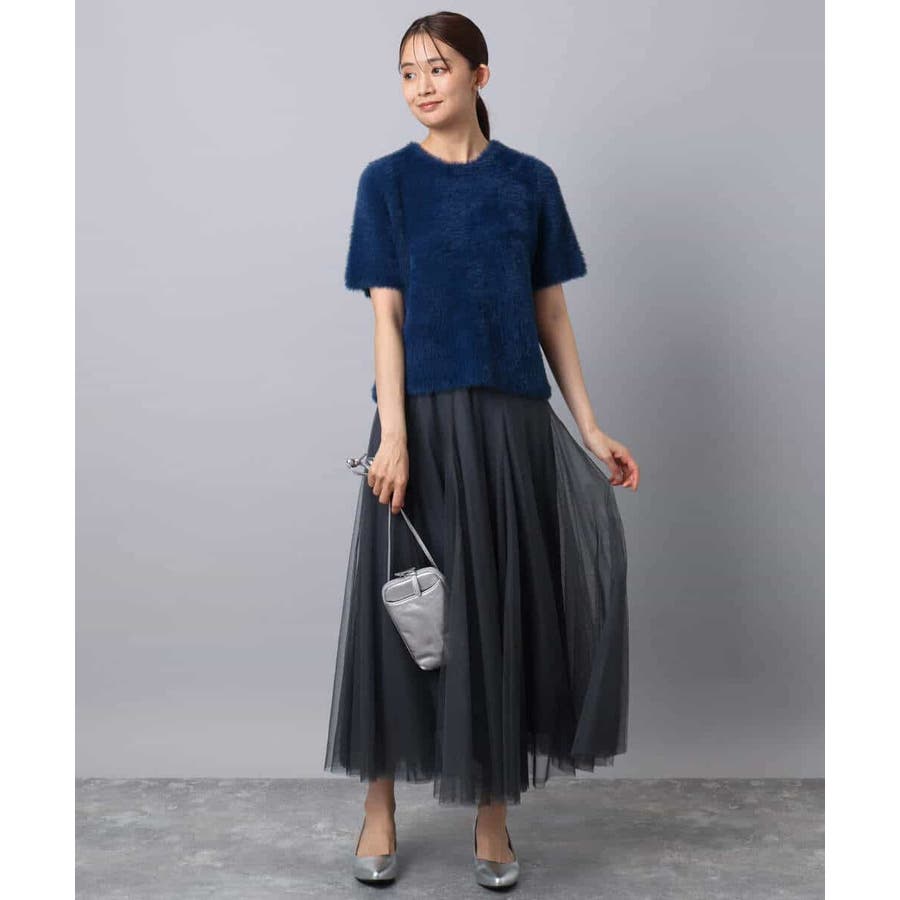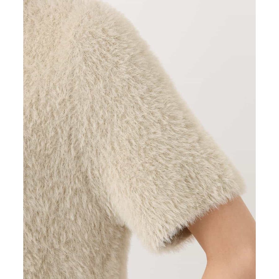 ■コーディネート ボトムを問わずコーディネートできるシンプルな半袖デザイン。見た目にも可愛いシャギーニットは上からアウターを羽織ってもアクセントに。