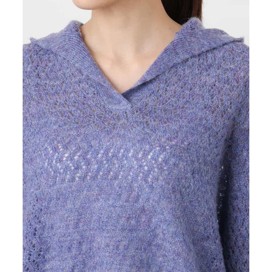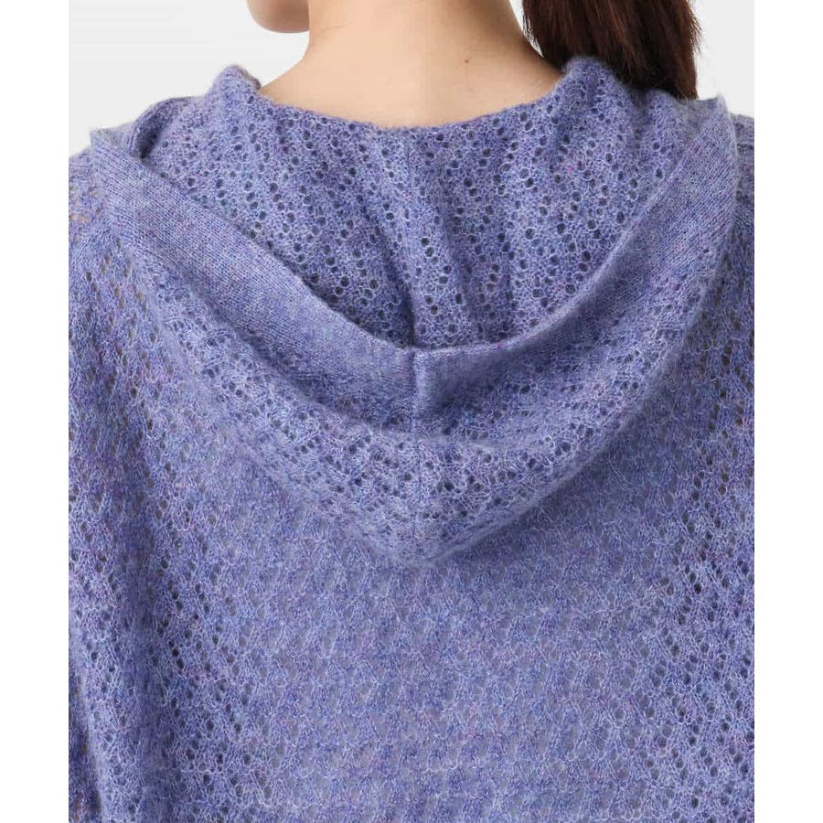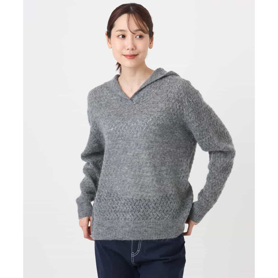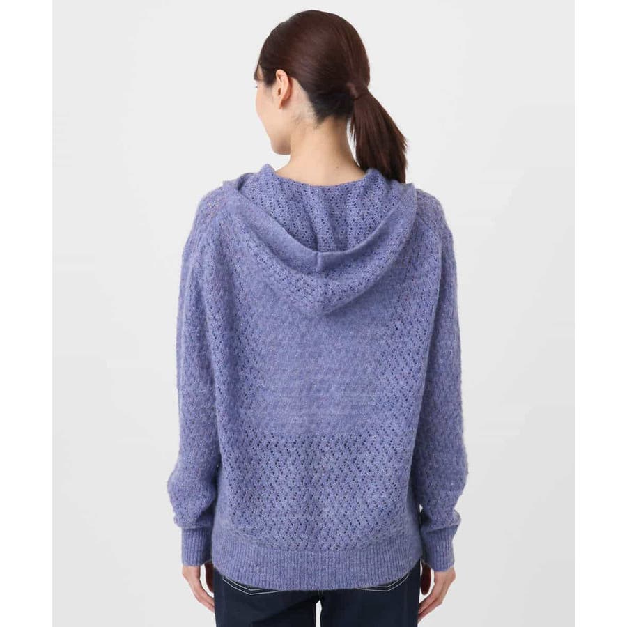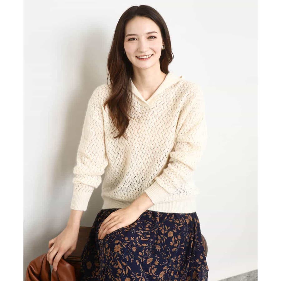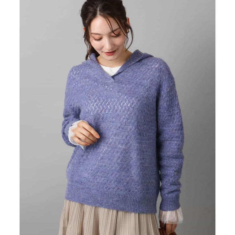 透かし編みニットフーディープルオーバー/洗える