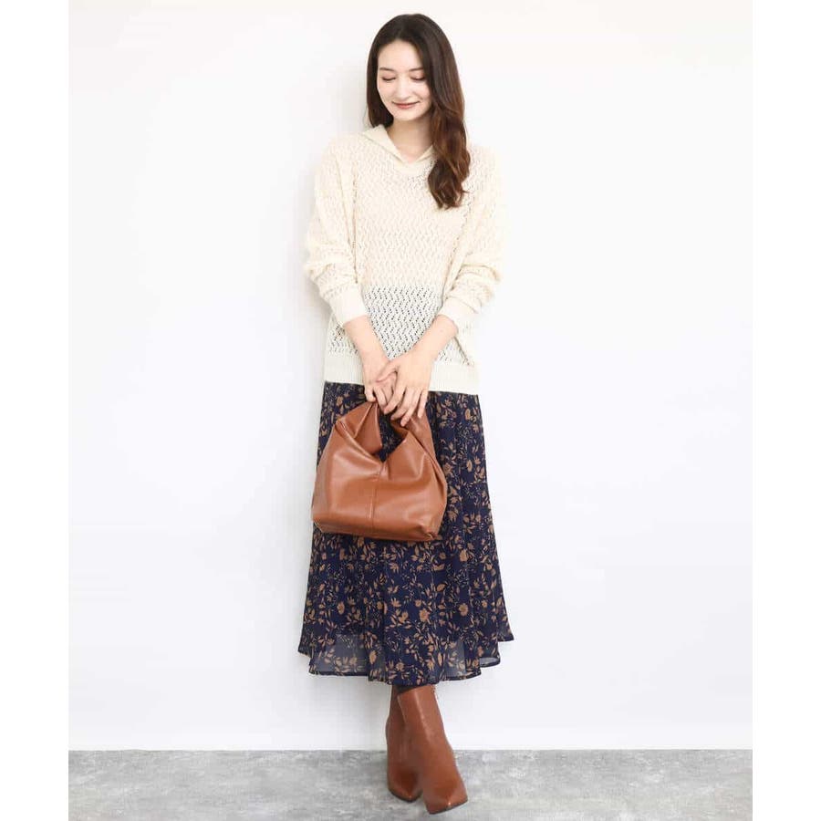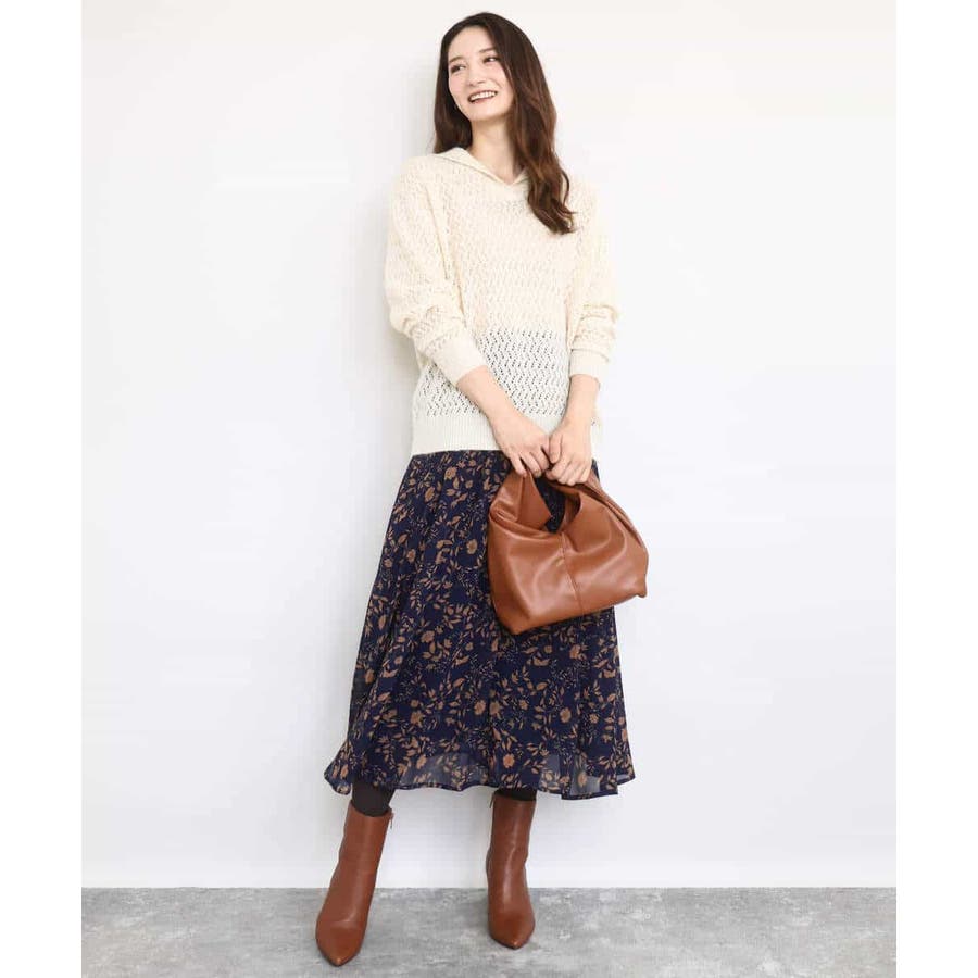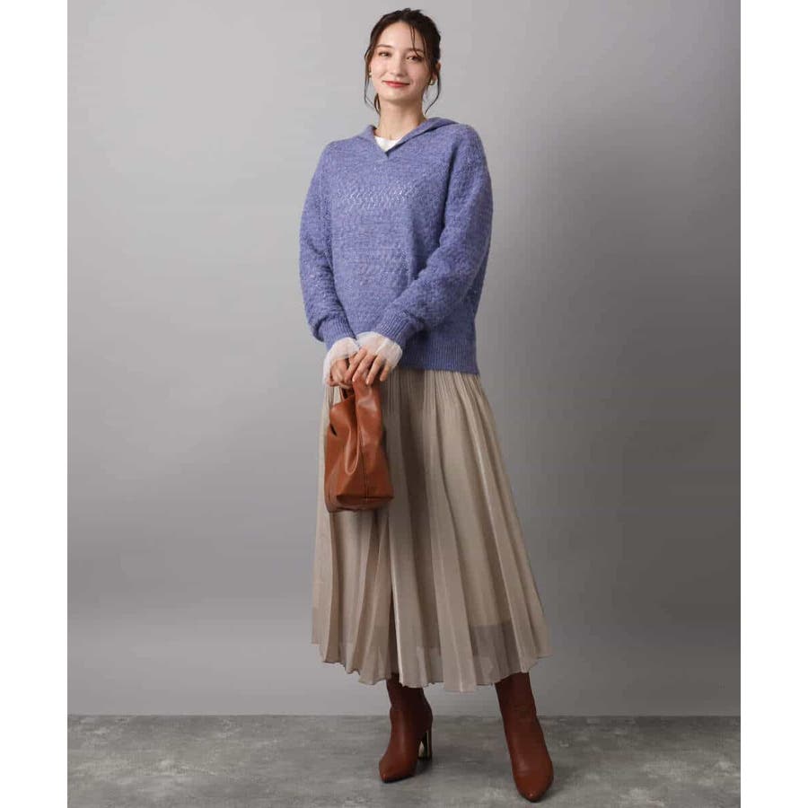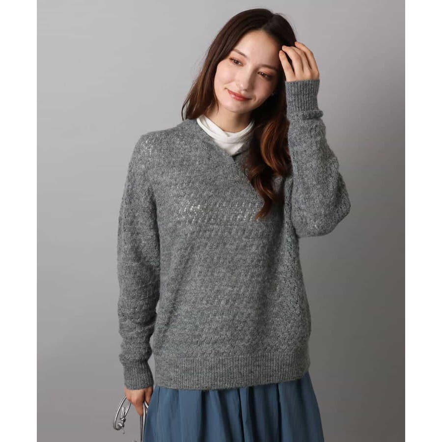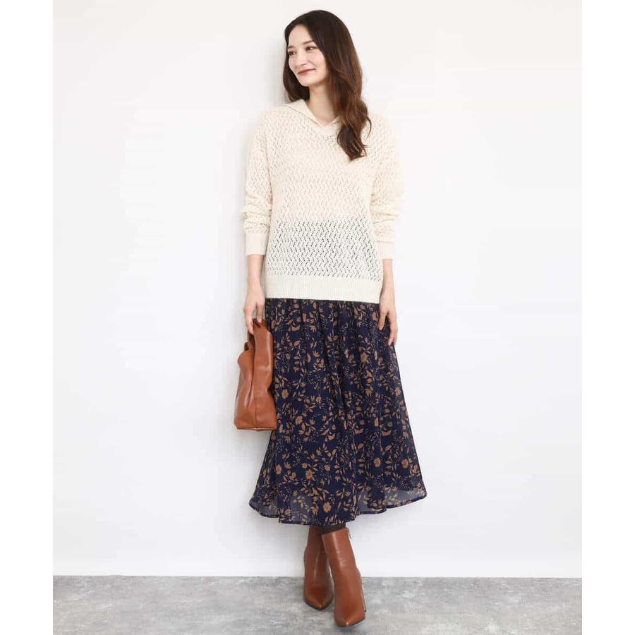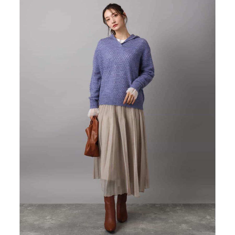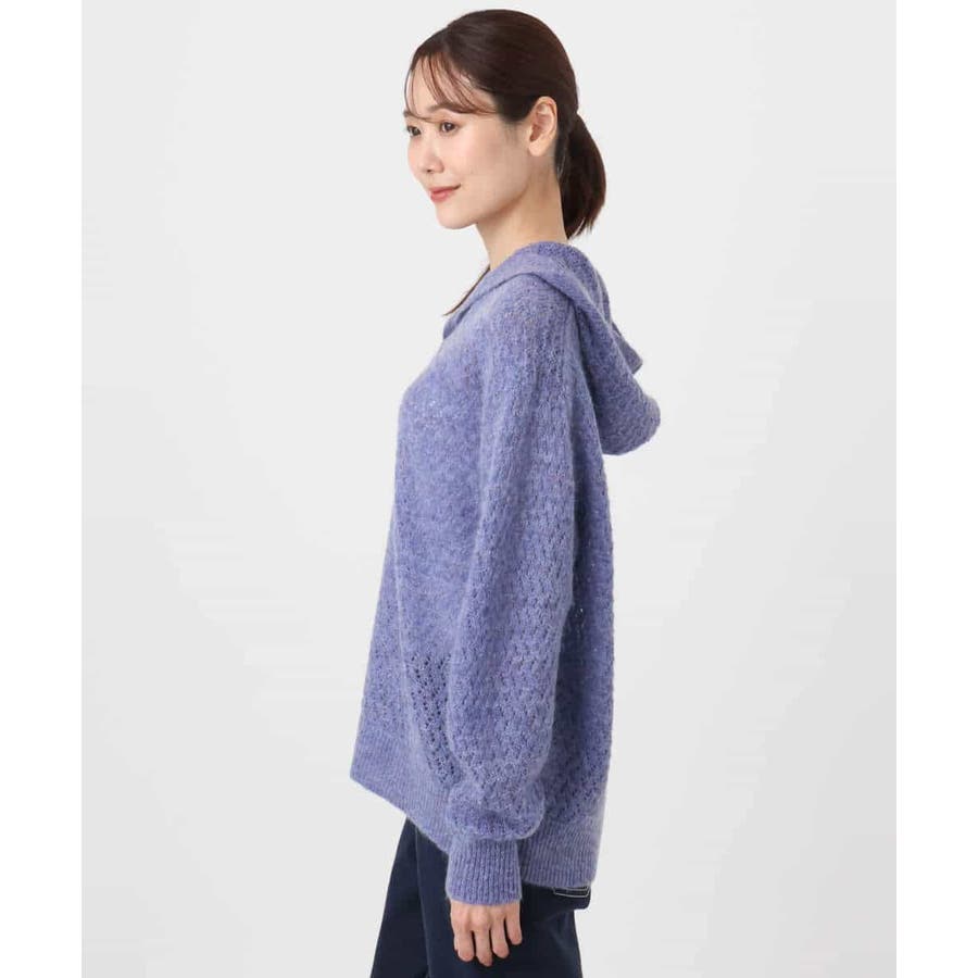 透かし編みニットフーディープルオーバー/洗える