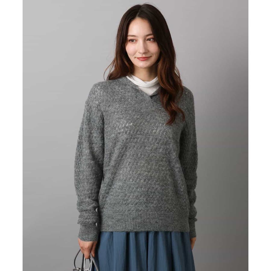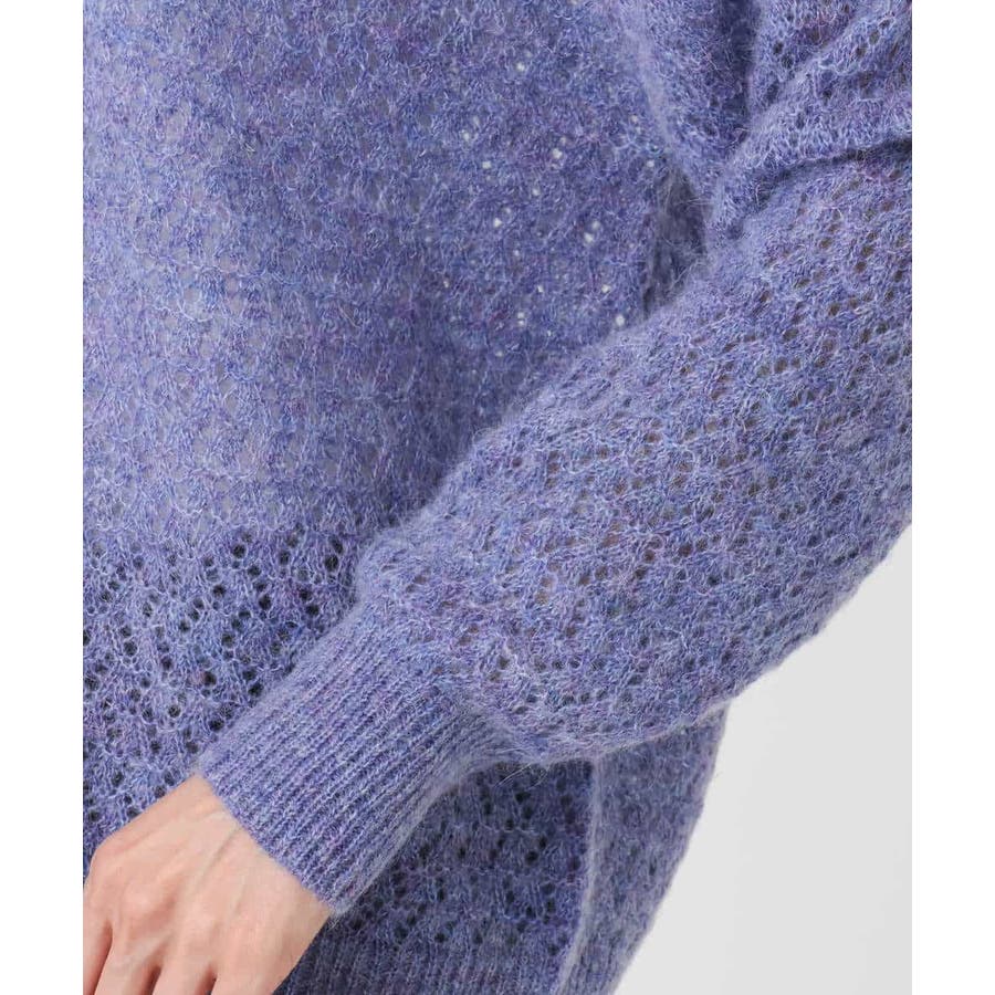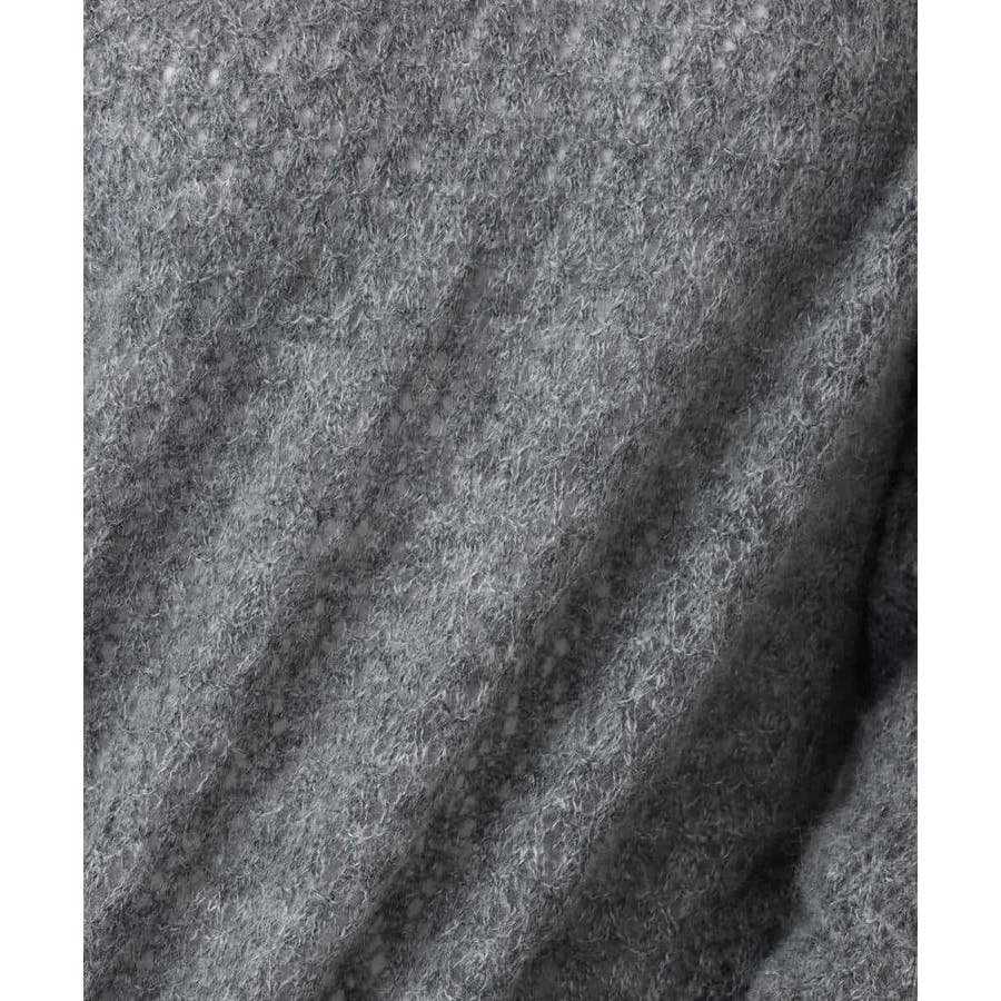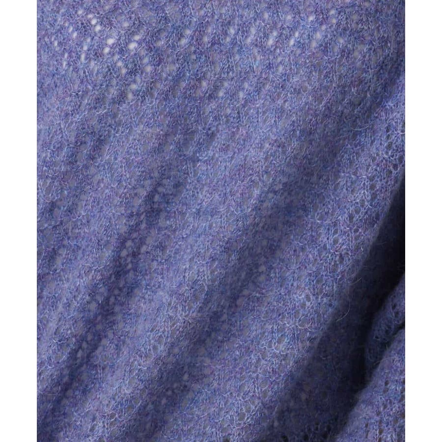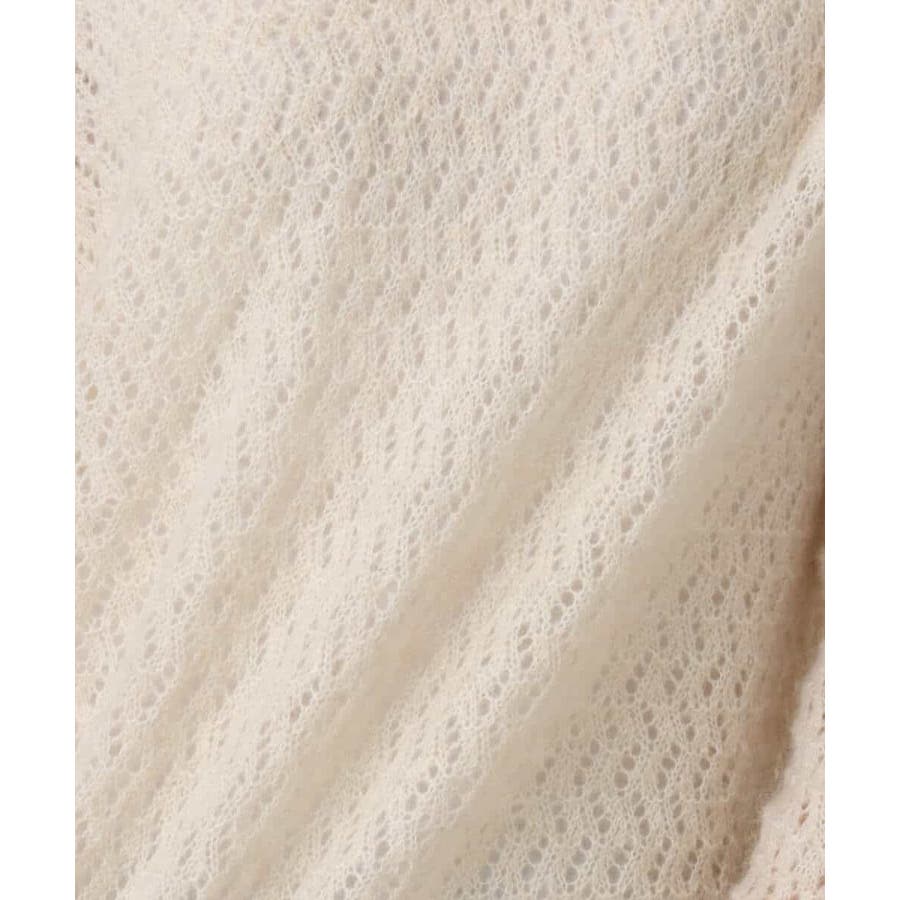 モヘア混の優しい透かし編みのニット編地。やわらかでいてやや薄手の肉感になります。