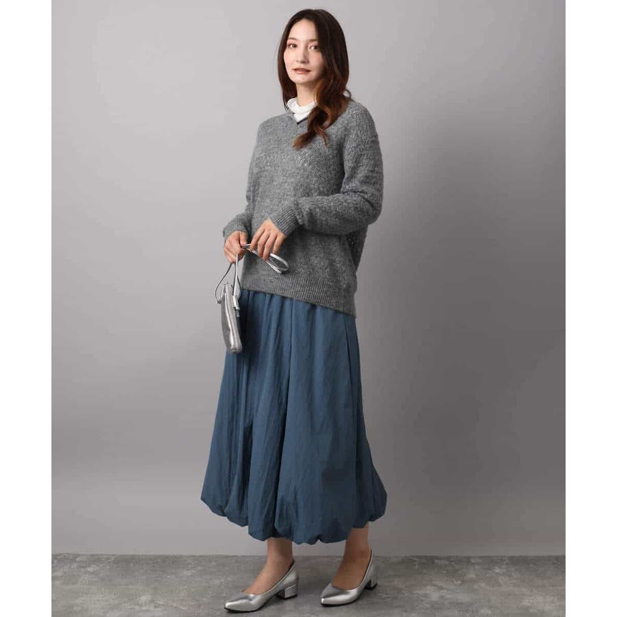 パンツ合わせはもちろん、スカート合わせでラフでカジュアルな着こなしもおすすめ。前裾をタックインすれば、ボリュームスカートともバランス良い着こなしに。