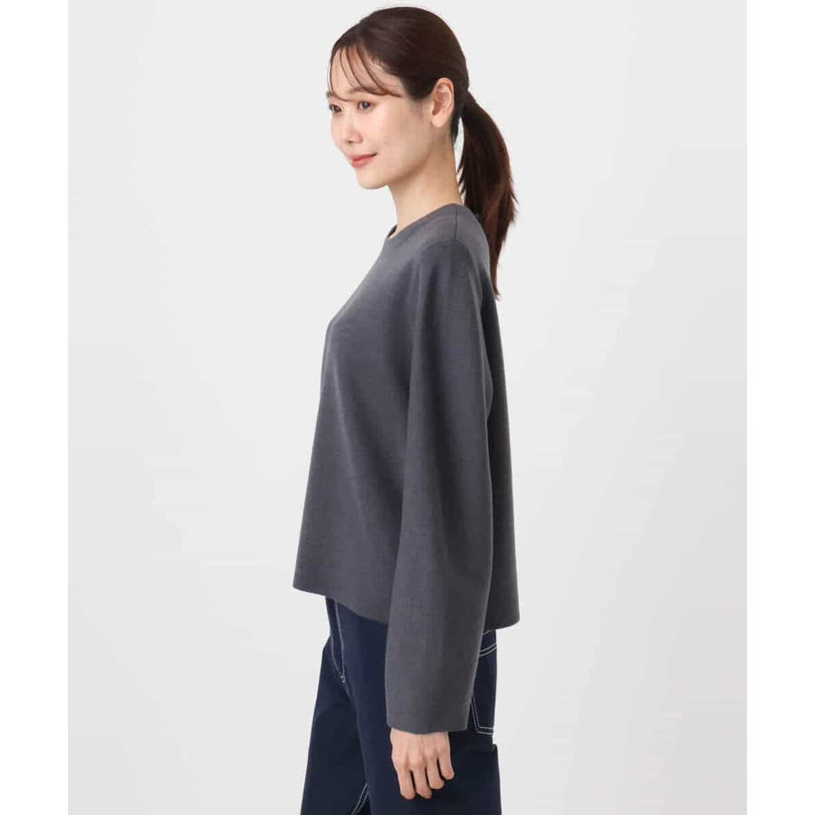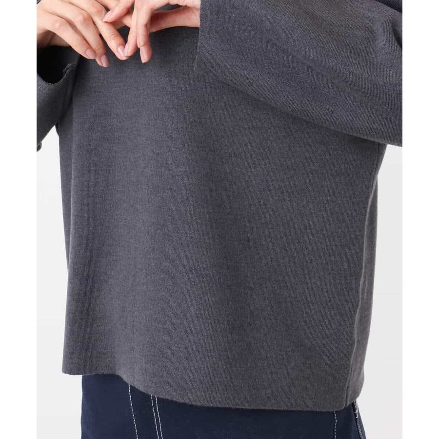 ツルっとしたきれいな表面感とふくらみが特徴のスムース編みのニット素材を使用。ウール混で長い季節楽しめる素材です。