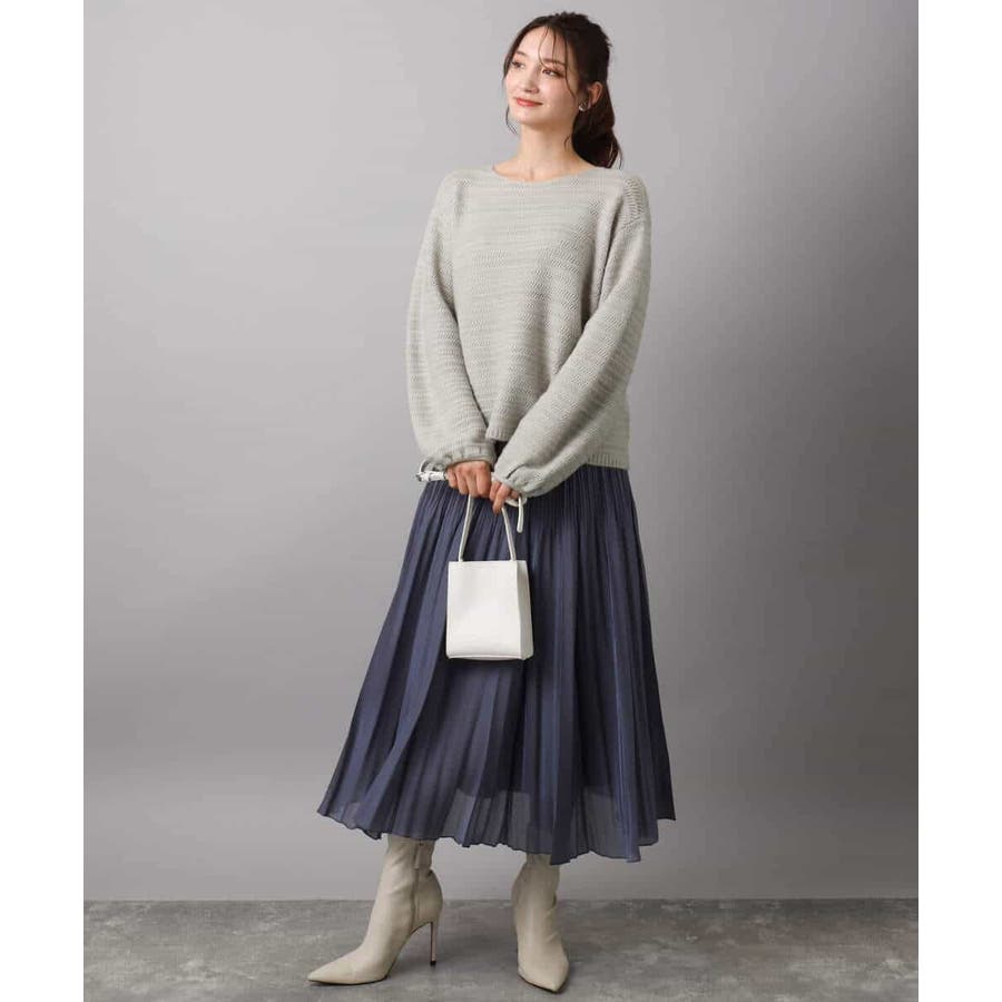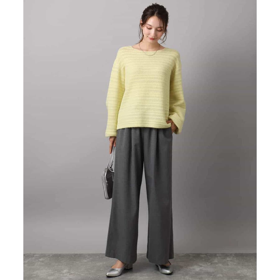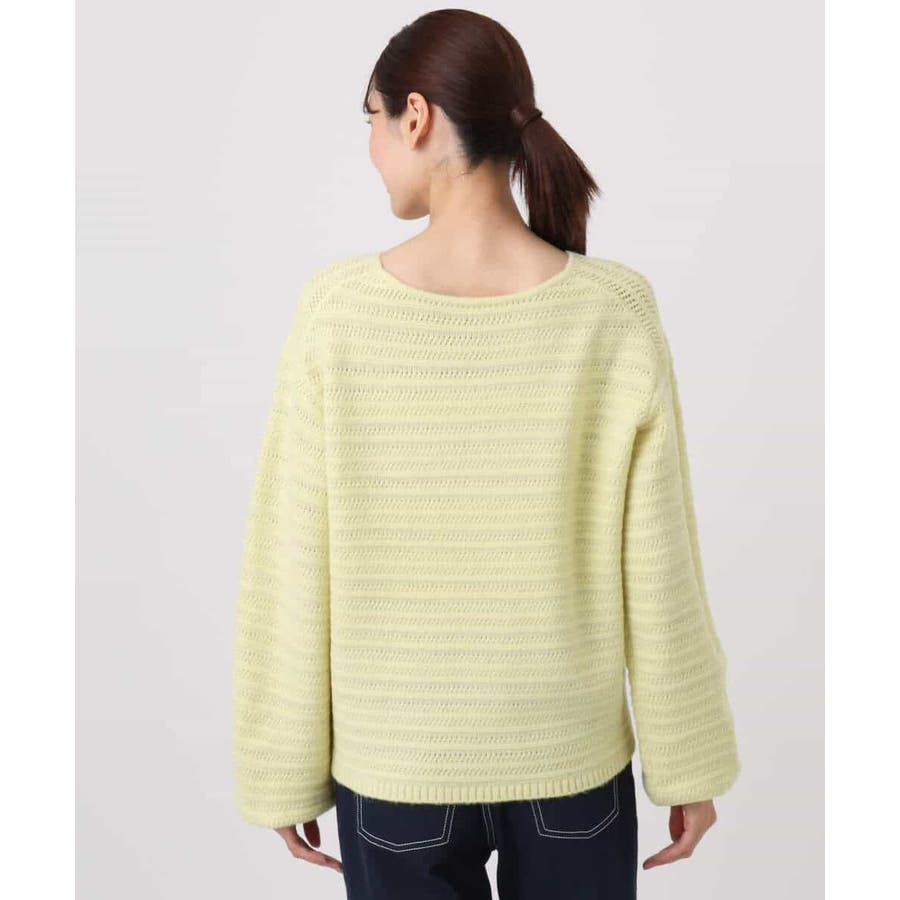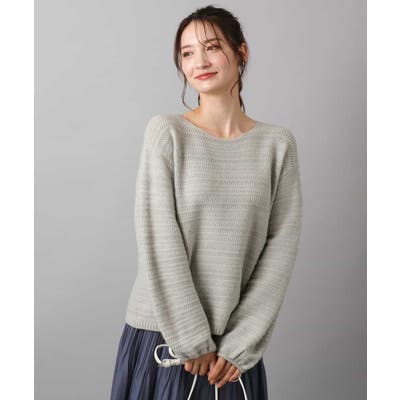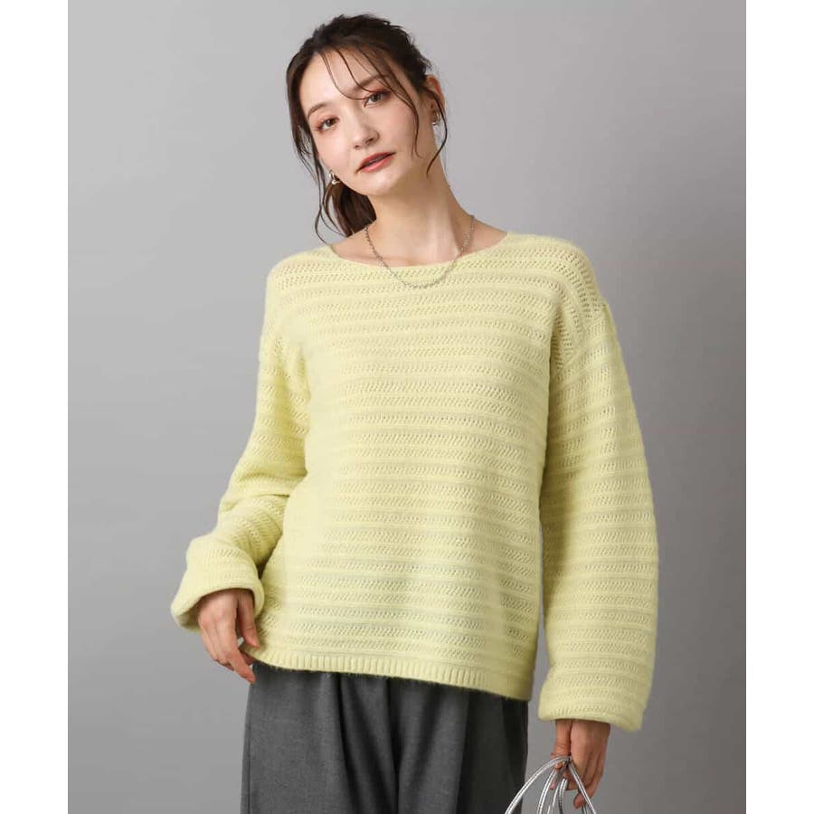 すっきりと見える衿ぐりと袖口のボリュームパフがデザインポイントのニット。編地でボーダーを表現したニットは手持ちにはない、買い足しアイテムとしてもおすすめです。