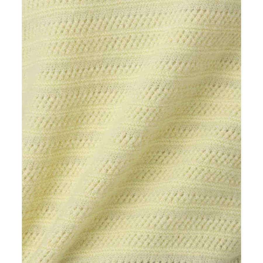 やわらかな起毛素材を使用し、ほんのり透けるメッシュボーダー柄編みに。