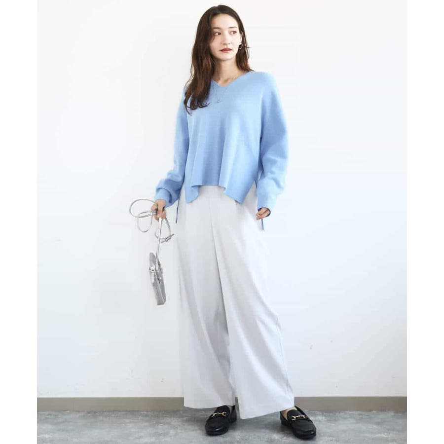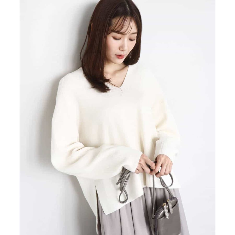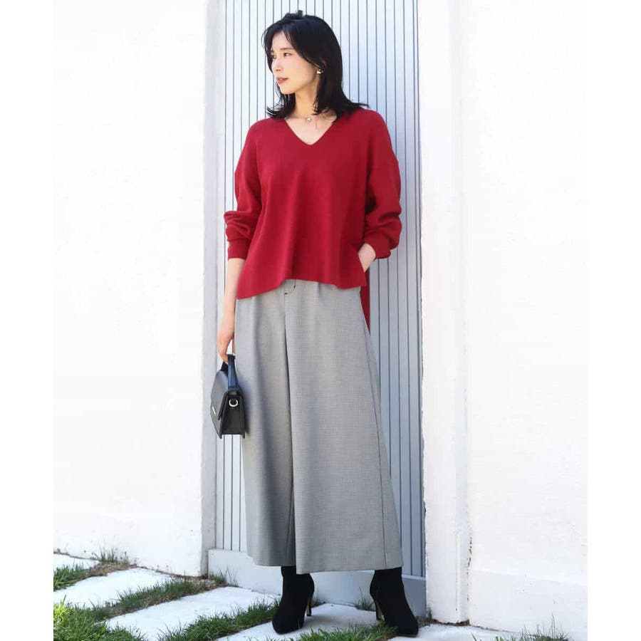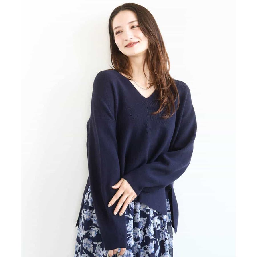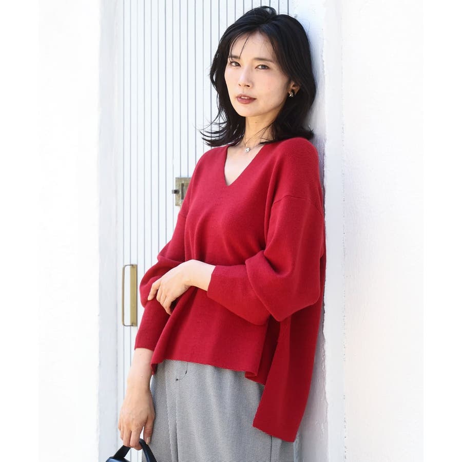 程よくリラクシーなシルエットとVネック開きが女性らしさをぐっと引き立てるニットは、シンプルだからこそ使い勝手抜群。大人のコーディネートに抜け感とこなれ感をプラスしてくれます。アウターも羽織りやすい程よい肉感も嬉しい。