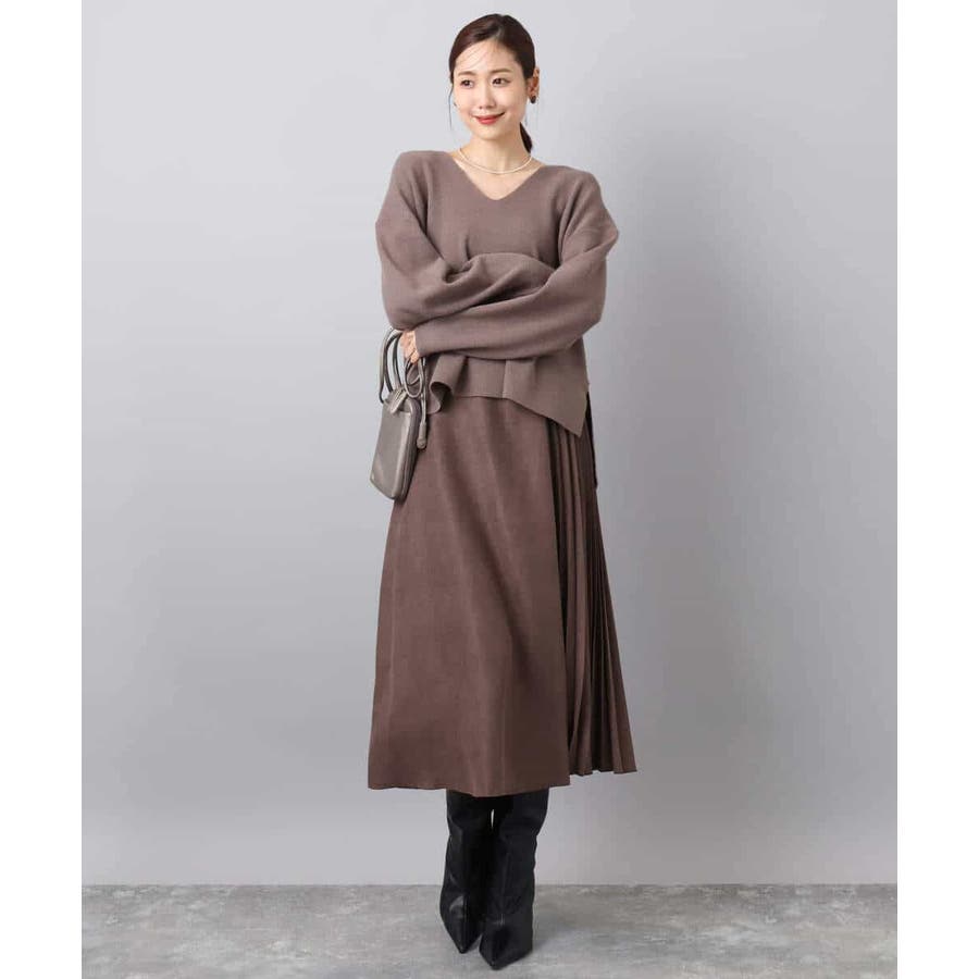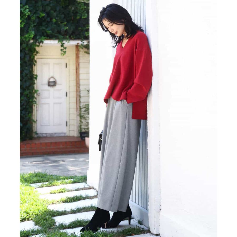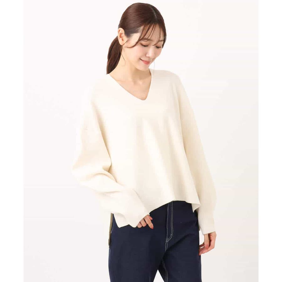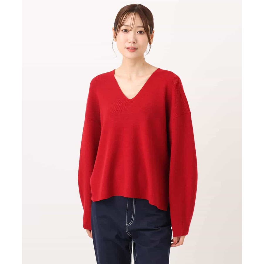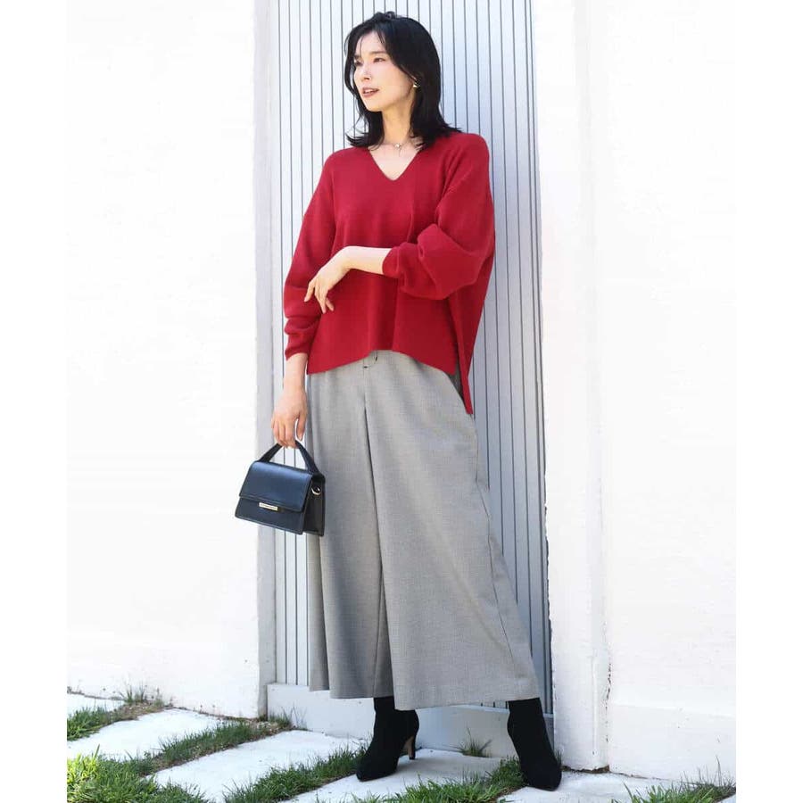 程よくリラクシーなシルエットとVネック開きが女性らしさをぐっと引き立てるニットは、シンプルだからこそ使い勝手抜群。大人のコーディネートに抜け感とこなれ感をプラスしてくれます。アウターも羽織りやすい程よい肉感も嬉しい。