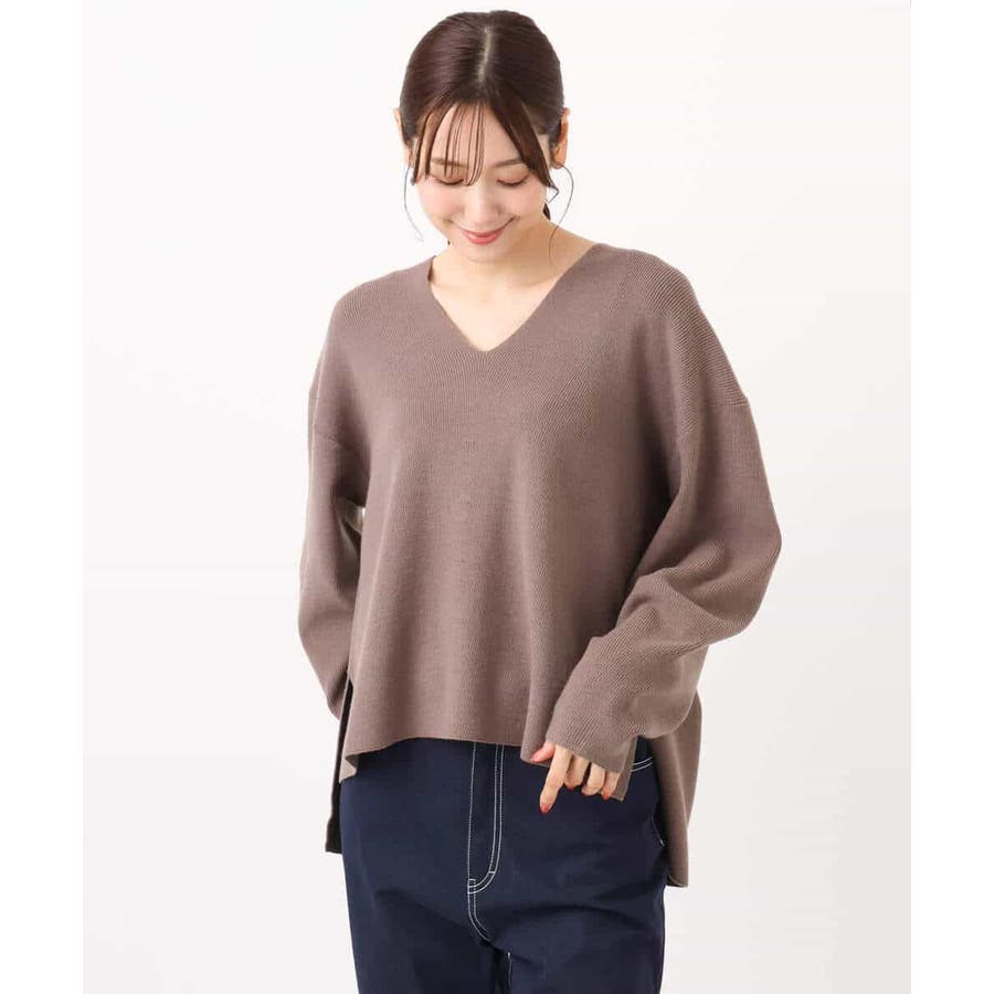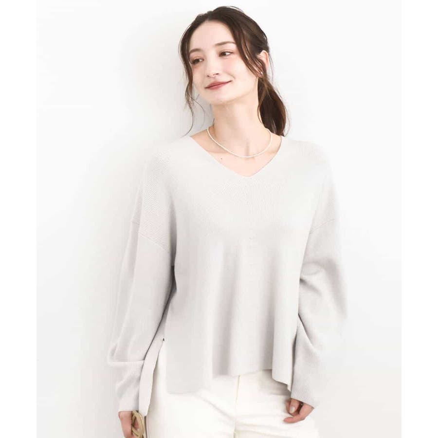 身頃と袖口に片畦編みで傾斜をつけ、シルエットと表情を加えたシンプルなVネックニット。適度な落ち感が女性らしい雰囲気で、デコルテラインをきれいに見せてくれるVネック開きです。パンツ合わせに嬉しい、着丈に前後差の付いたデザインで脇スリット入り。