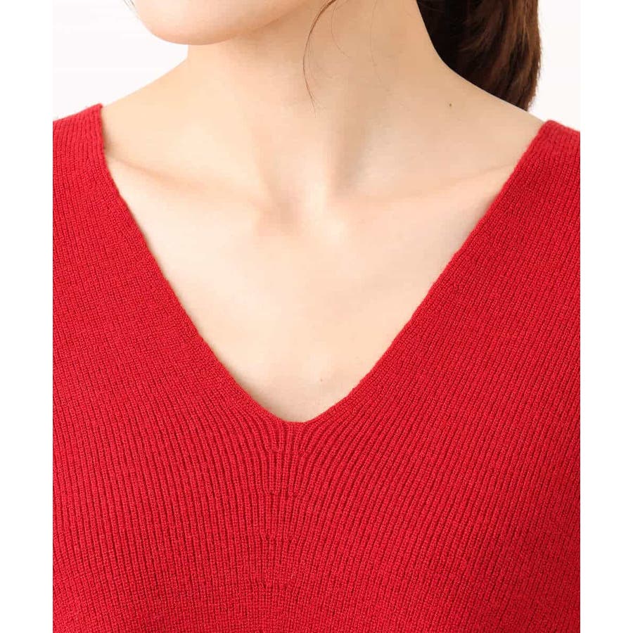 片畦編みVネックニット/洗える