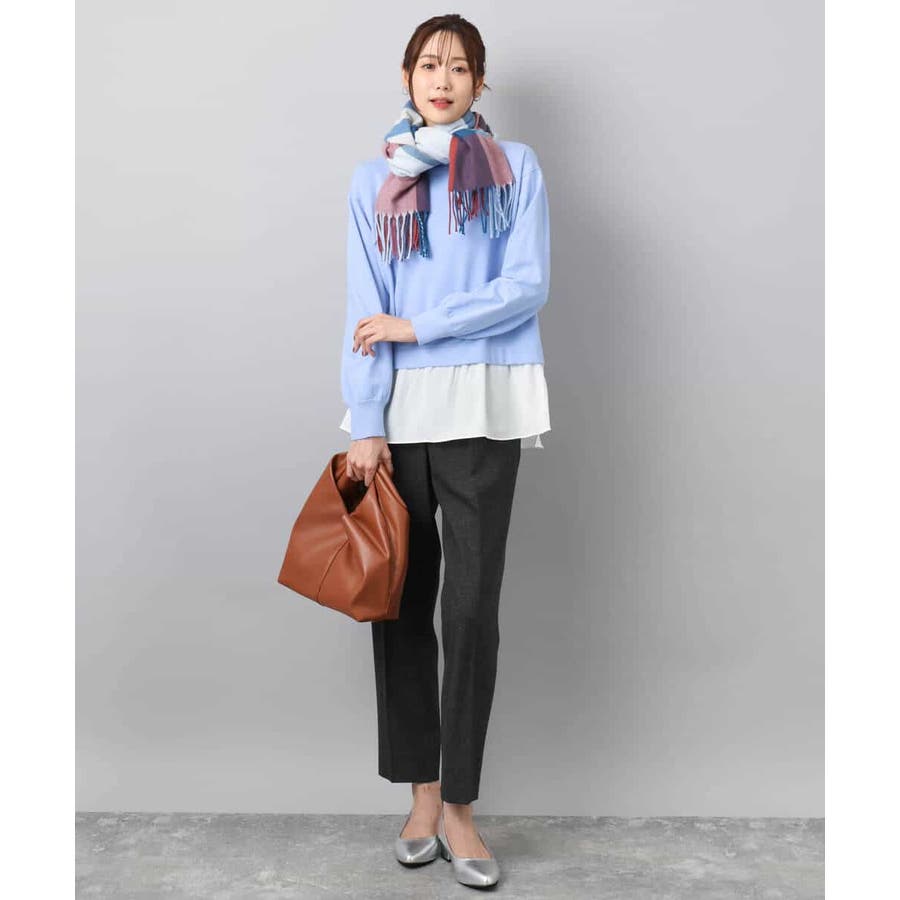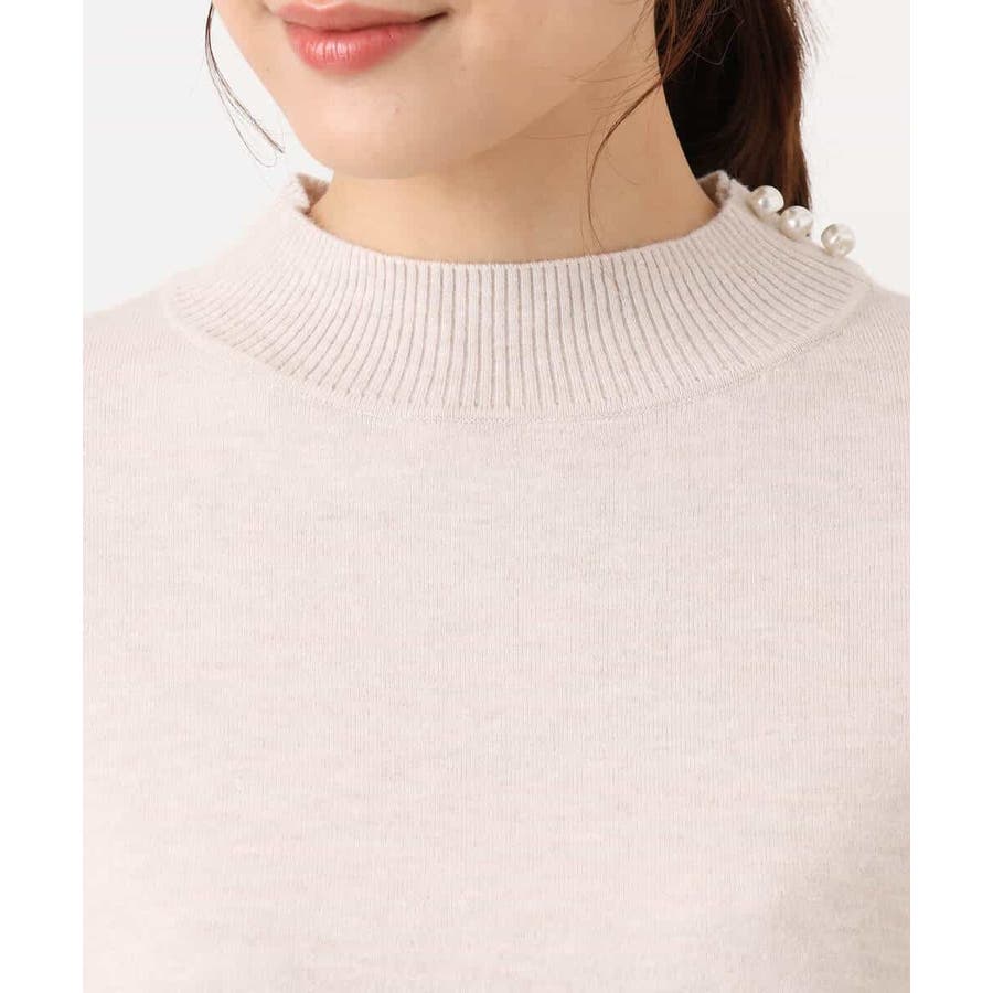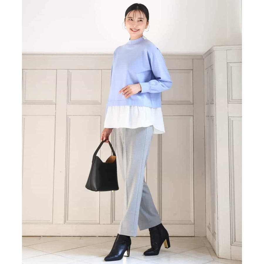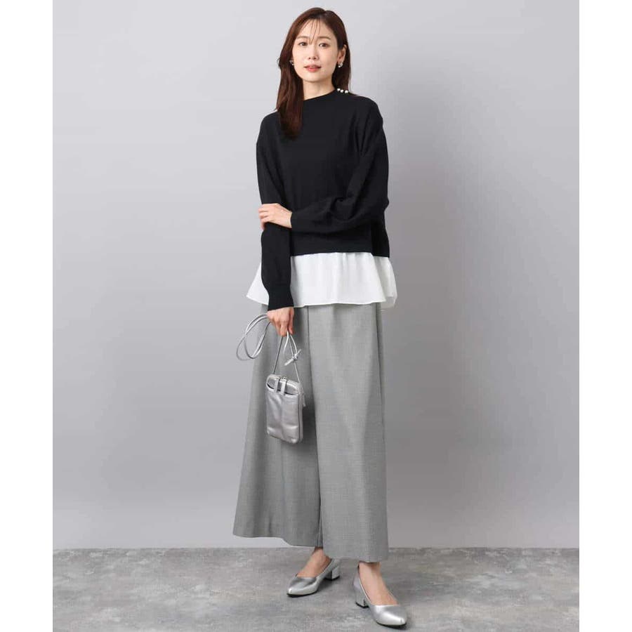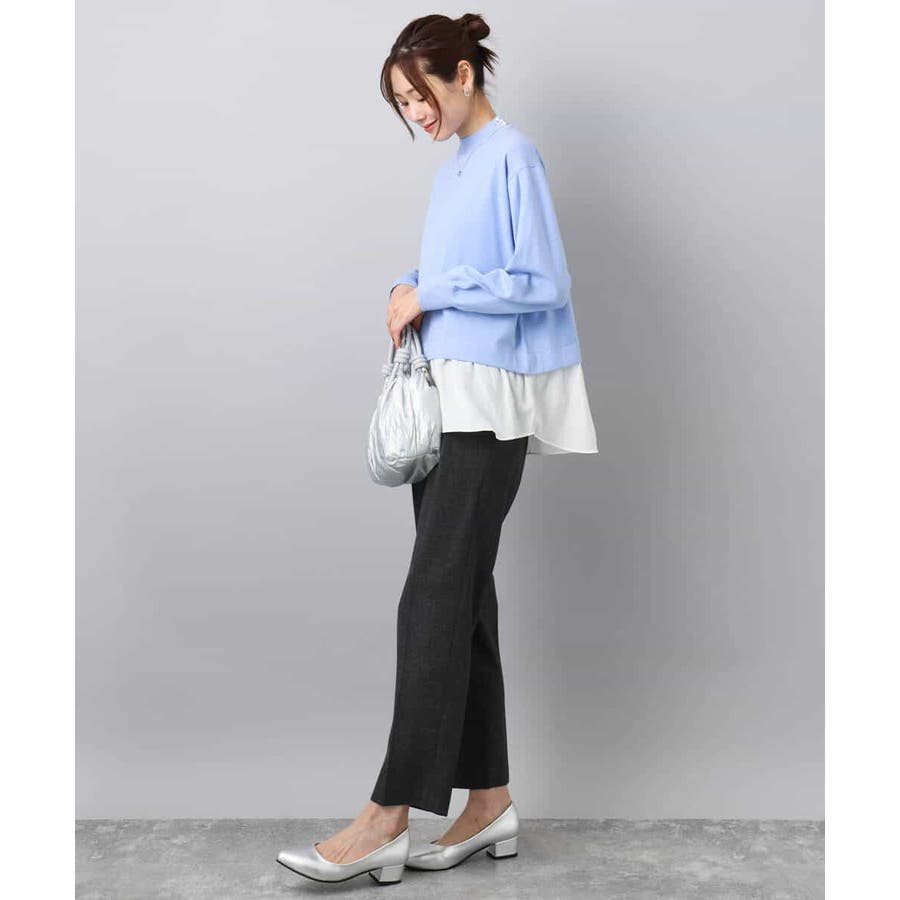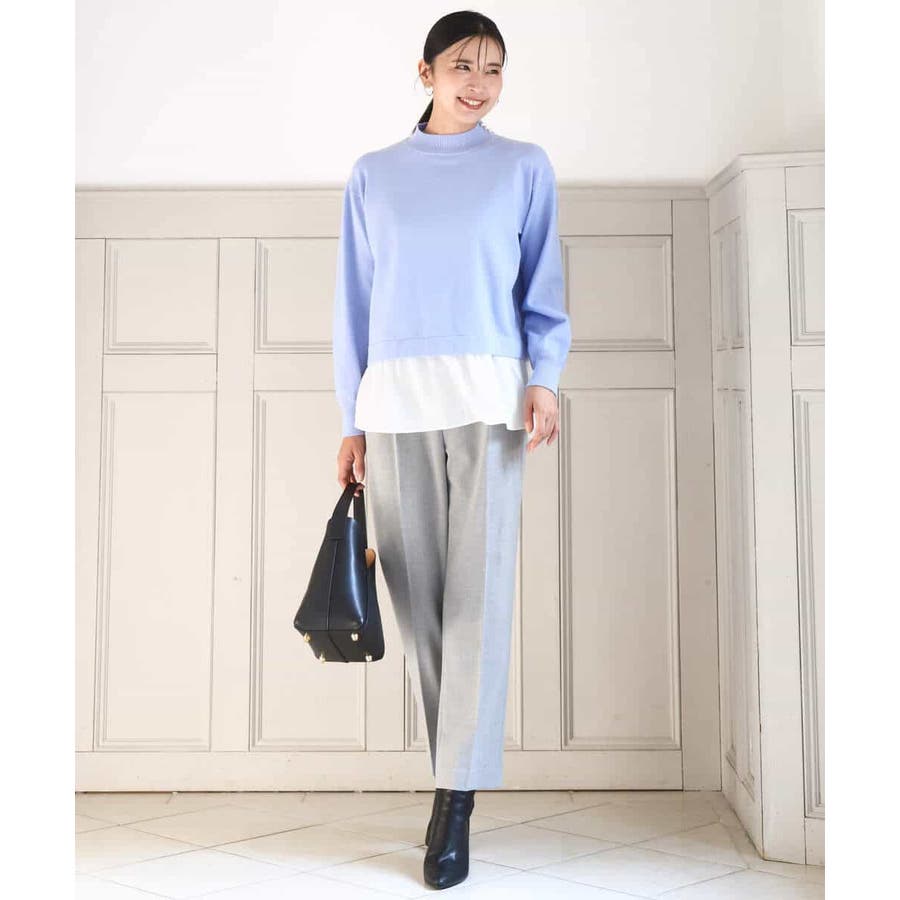 テクニック要らずで簡単に決まるレイヤードデザインのニットトップス。コートのインナー使いにもちょうどいい肉感で秋冬春と3シーズンで活躍してくれます。衿ぐりはさりげないパール調釦が付いたモックネックデザイン。