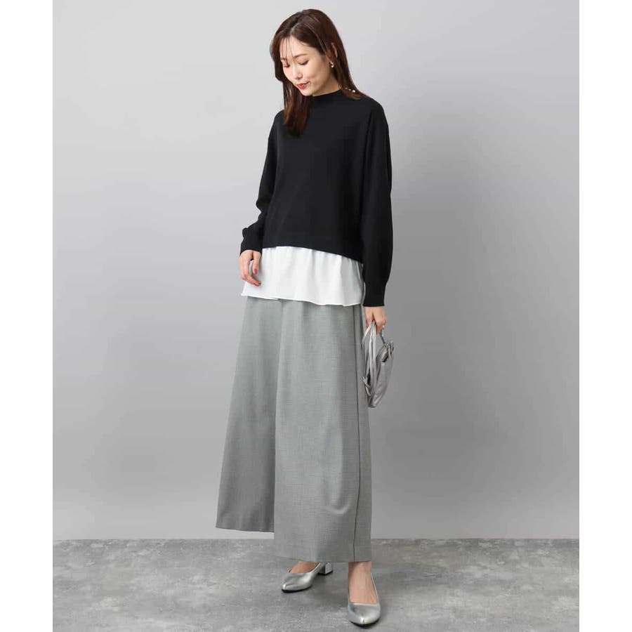 きれい見えするハイゲージニットを使用。裾の切り替え部分はしなやかなデシン素材を使用し、こちらもきれい見え。