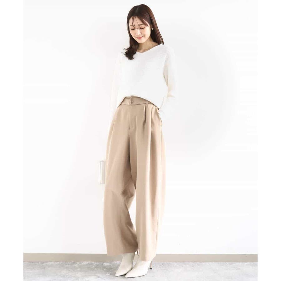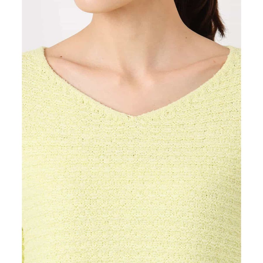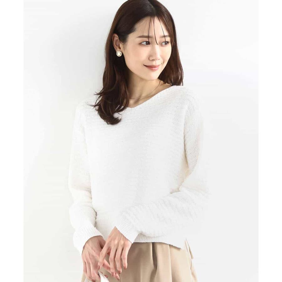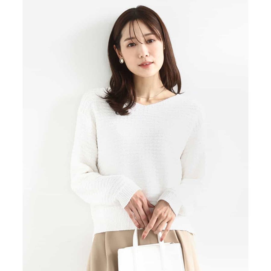 やや短めの着丈がボトムを選ばないクロップド丈のニット。デコルテラインをきれいに見せるVネックのデザイン。