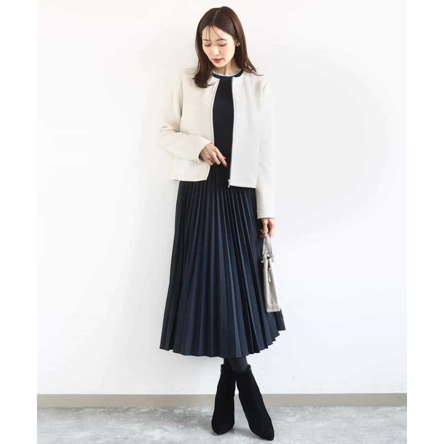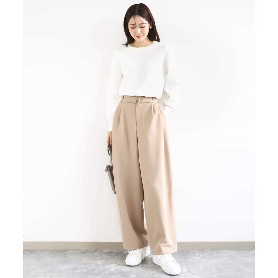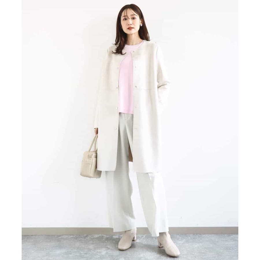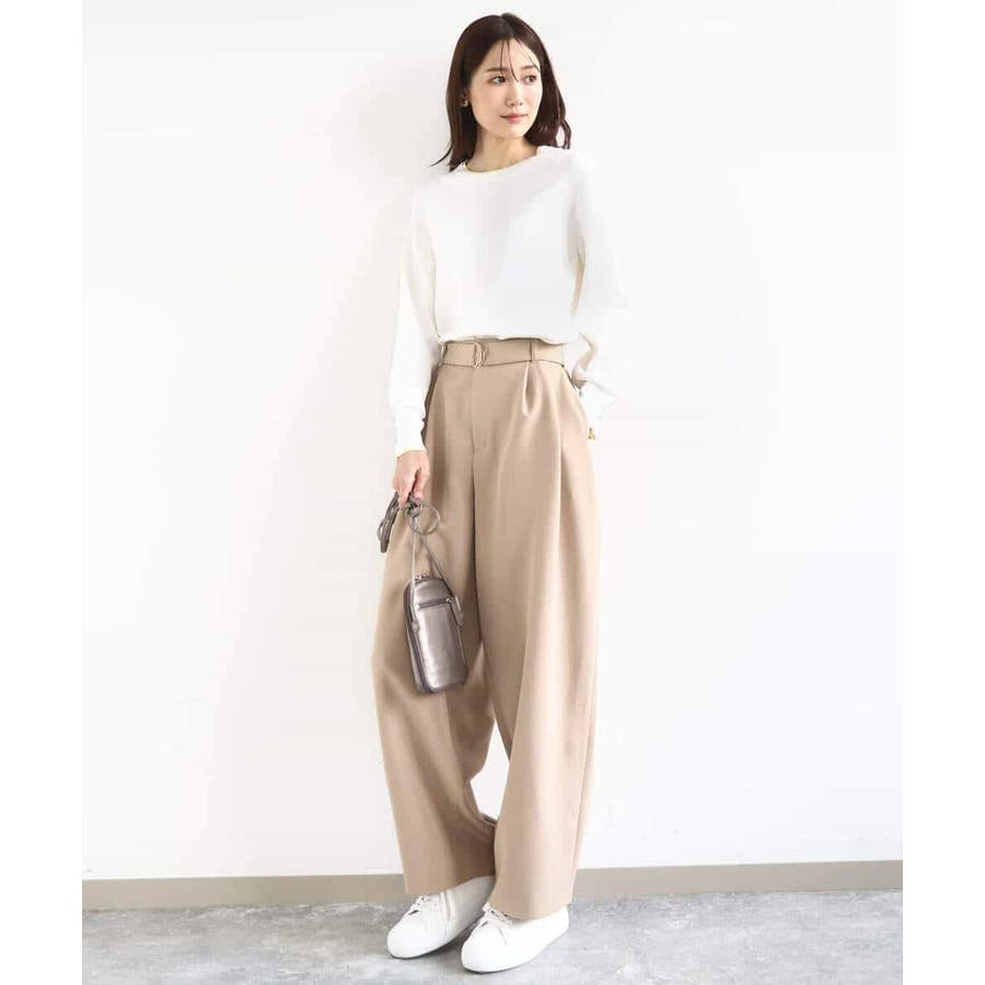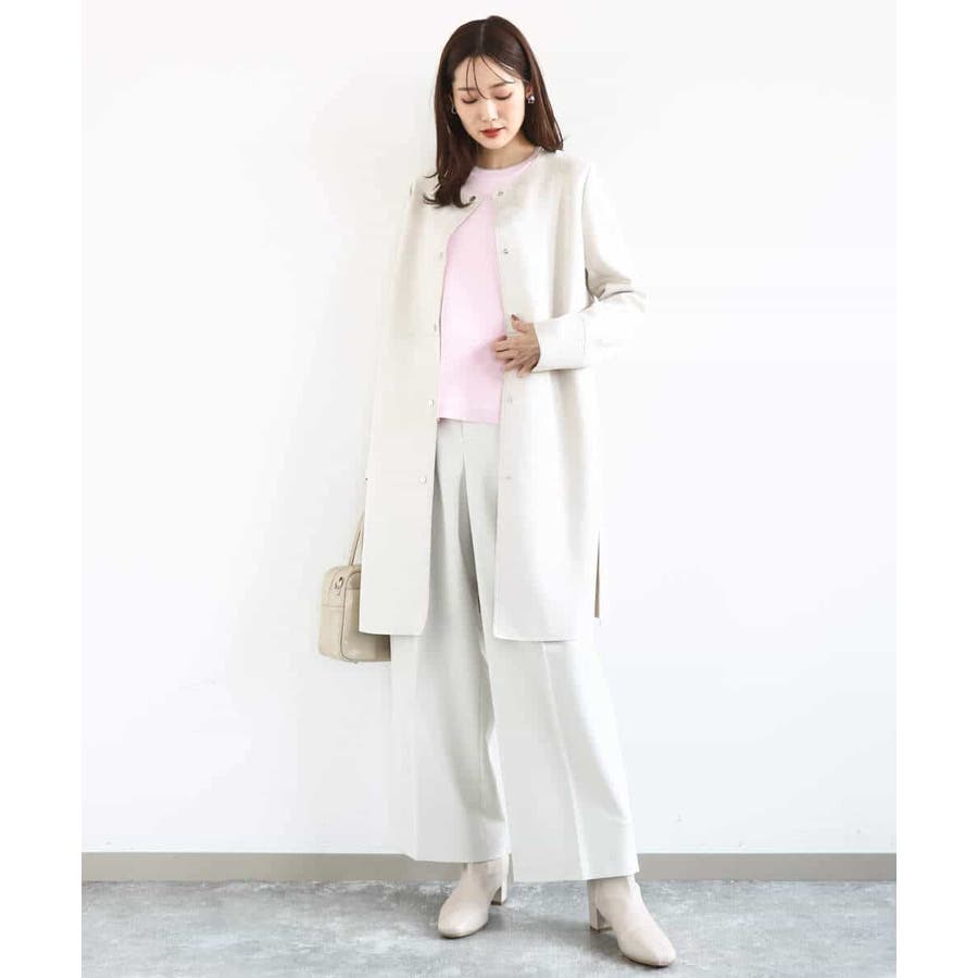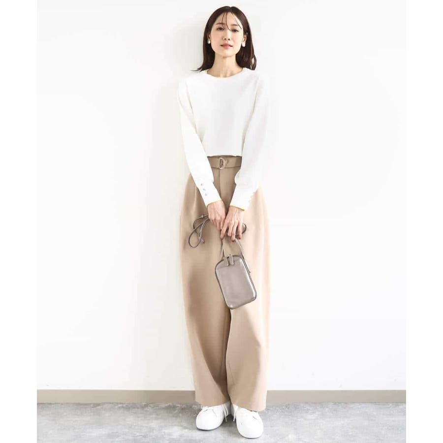 さらりとしたややシャリ味のあるような肌触りのニットで、暖かみやふくらみ感もなく、秋冬春と3シーズンで使いやすい素材感です。シンプルなデザインながら、衿元と袖口の配色ラインがさりげないポイントとしてコーデに映えてくれます。着丈は腰骨がしっかり隠れる程度の長さで長すぎるということもなく、ボトムにインしなくてもラクに着こなせる丈感でした。裾にスリットが入っているので、ウエストインしたい気分のときにも嬉しいデザインです。ホワイトは真っ白というよりもオフホワイトに近い色味なので顔馴染みも良く着こなせました。透け感がある、という感じではありませんが、ホワイトは黒いインナーなどは見えてしまいますので、淡い色のインナーがおすすめです。