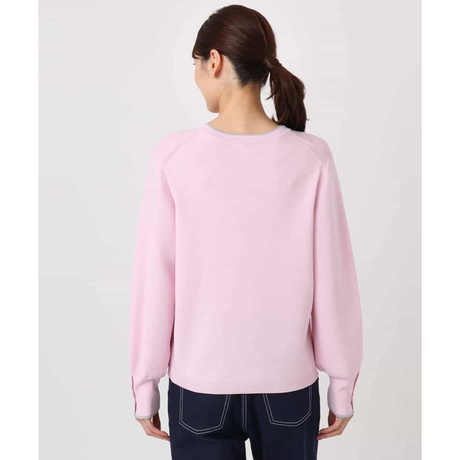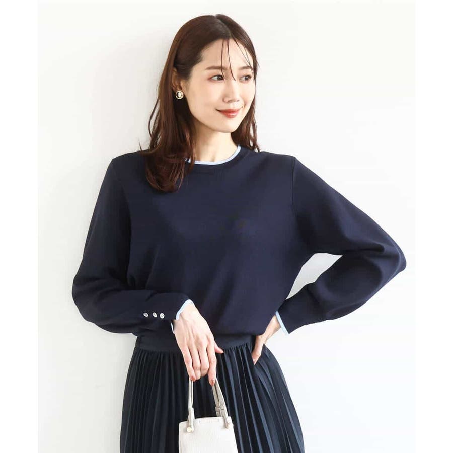 きれいな色の配色ニットプルオーバー。衿と袖口にあしらった配色デザインがポイントに。袖口のパフスリーブでシンプルながらも大人かわいいシルエットに仕上げました。