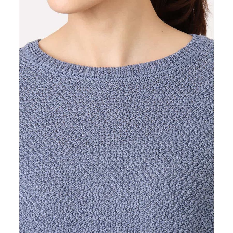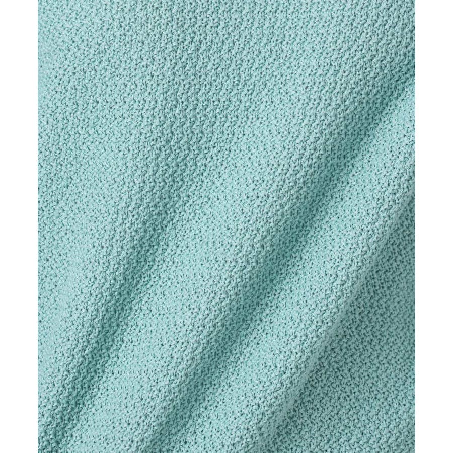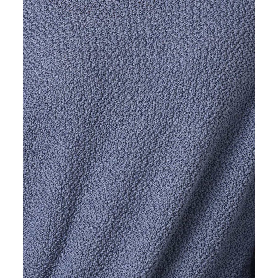 ふくらみのあるポリエステルのリリヤーン糸を使い、鹿の子編みで表面感を出しました。編み地の効果でシワも目立たず、イージーケアな素材も魅力。