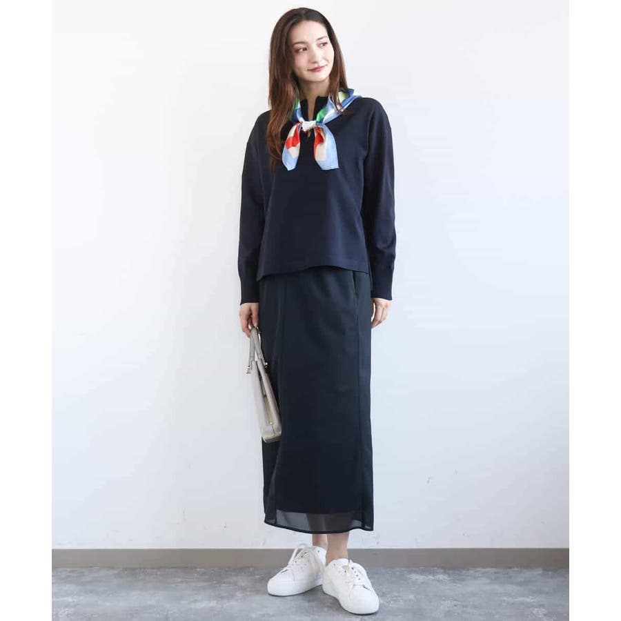 パジャマっぽくなるのではと心配しましたが、脇スリットと後見頃が長くなっていることで抜け感が出てオシャレに着用出来ました。レイヤードせず、一枚で着用する時は、ファスナーを少し開けてトレンドのキーネックのようにし、ネックレスを覗かせるのがおすすめです。素材はスポンディッシュなポリ素材なので4月頃まで着られそうです。おすすめのコーディネートは、トップスより濃色の細身のボトムス(Iラインスカートやデニム)を合わせてカジュアルなトップスとのバランスを取ることです!