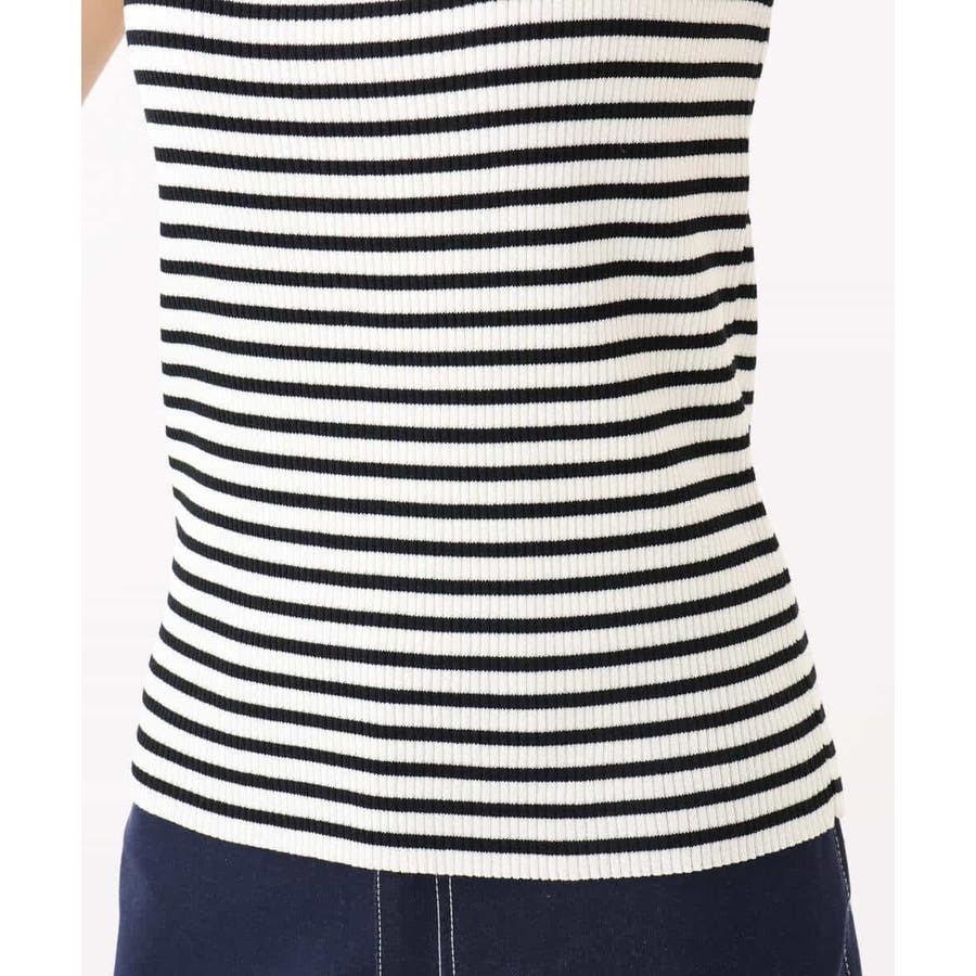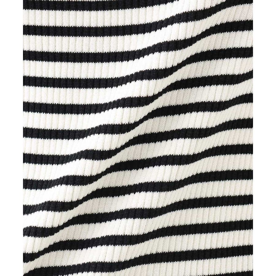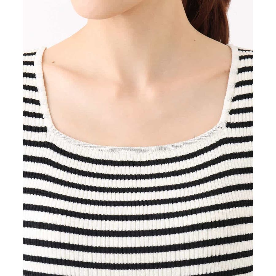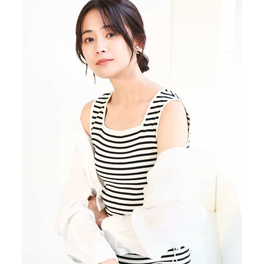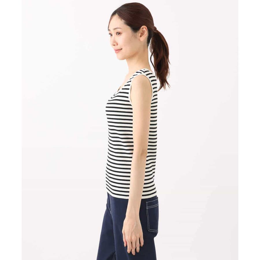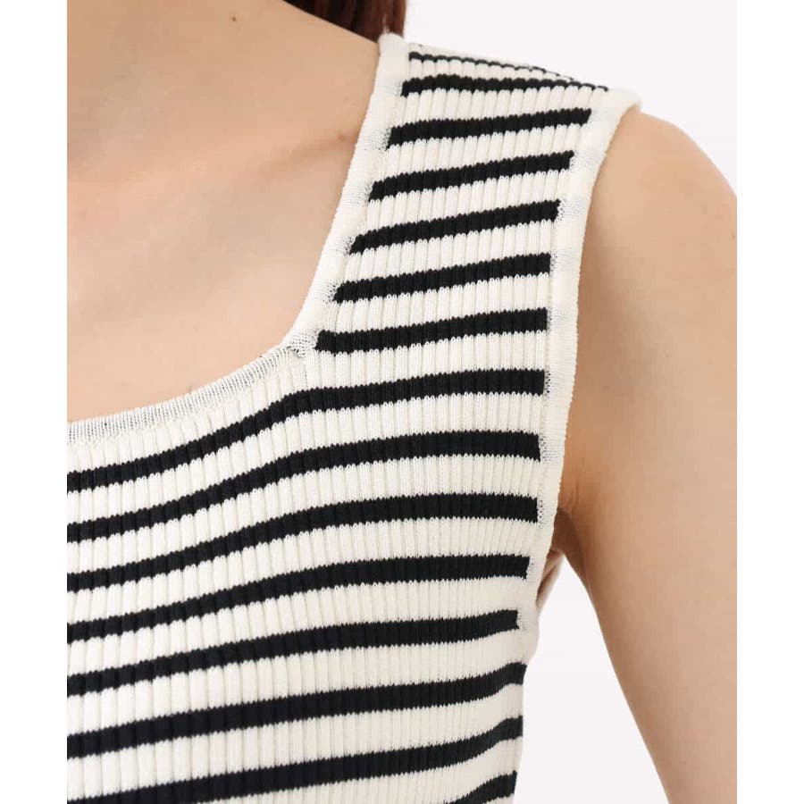 無地とボーダーの二柄展開のスクエアネックリブニットタンクトップ。