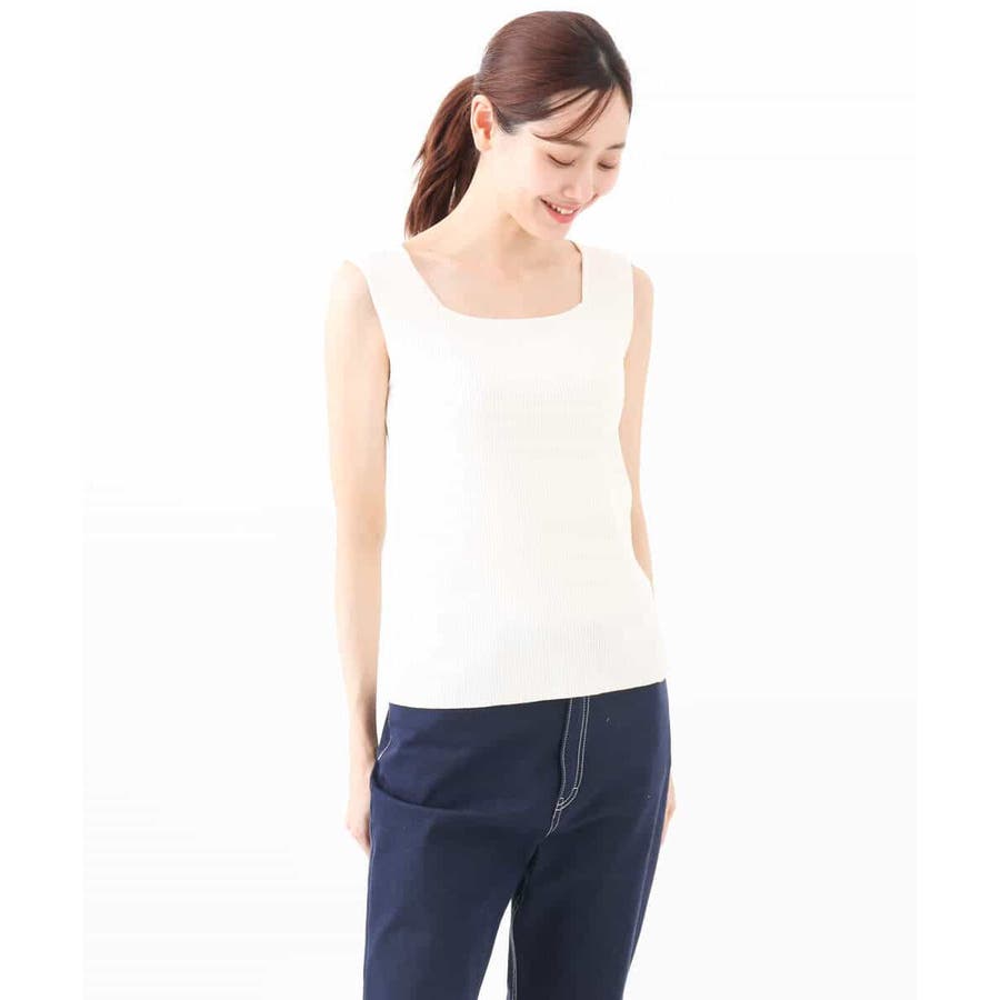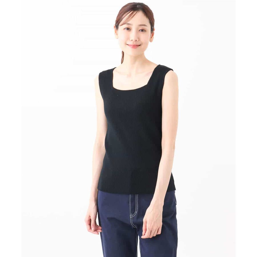スクエアネックリブニットタンクトップ/UVカット/洗える
