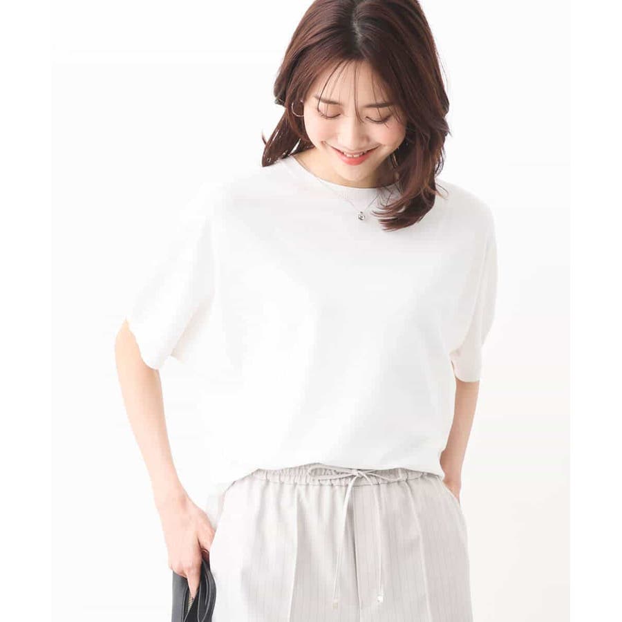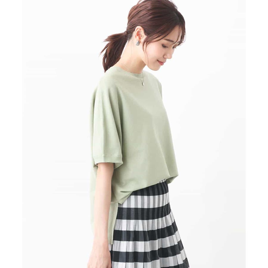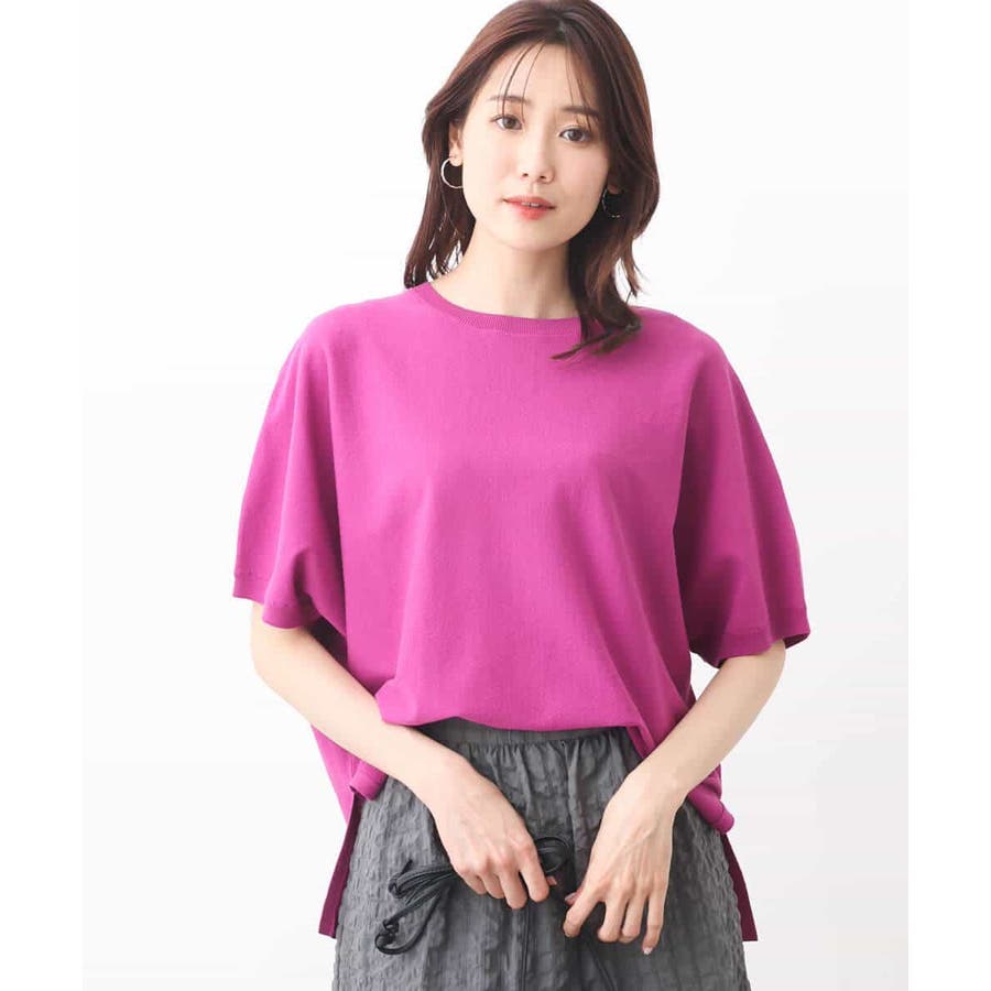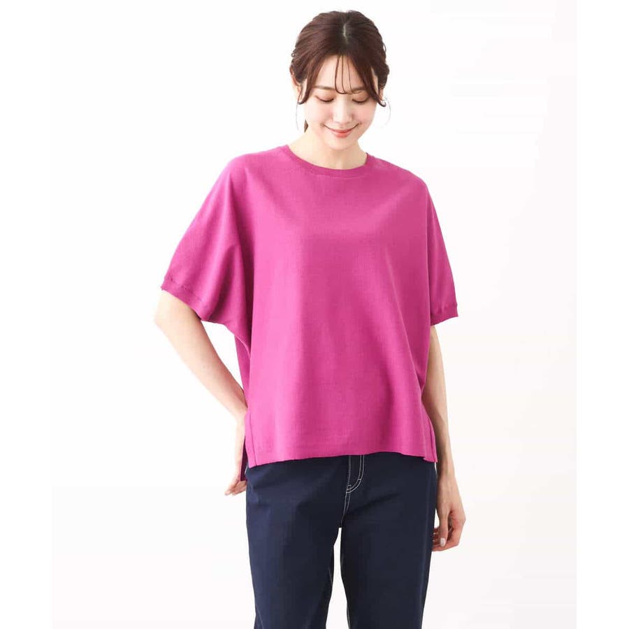 ほどよくゆったりながらも華奢見えするコットン混ニットは夏場でもさらりとお召しいただけます。丈もほどよくあり、パンツスタイルにもおすすめ。