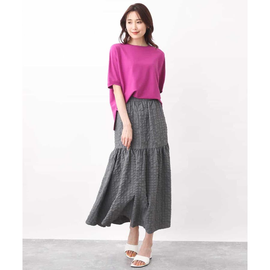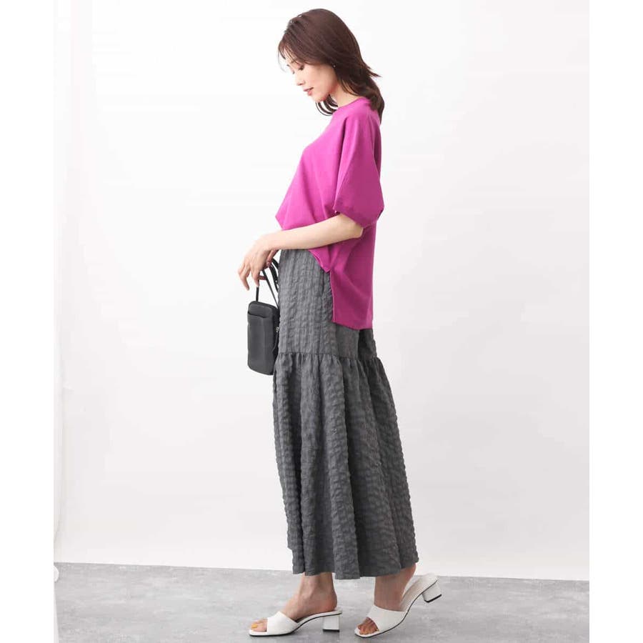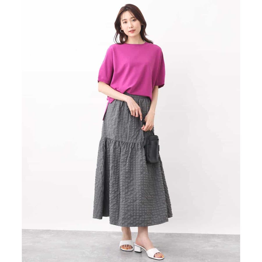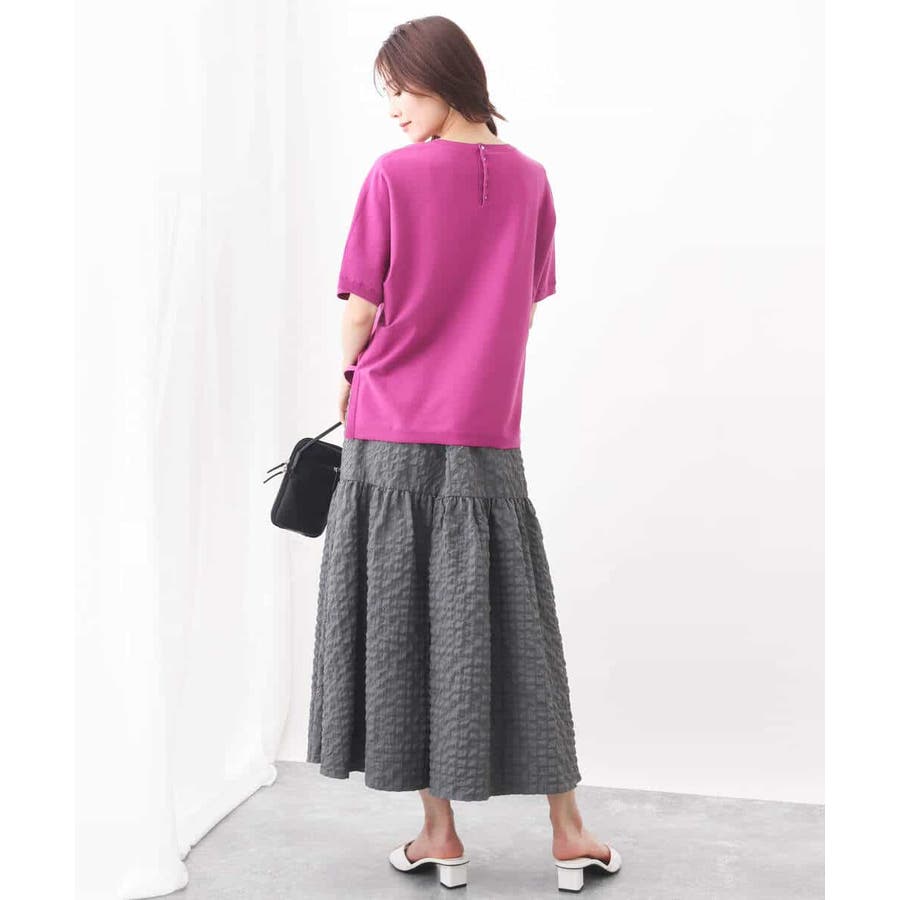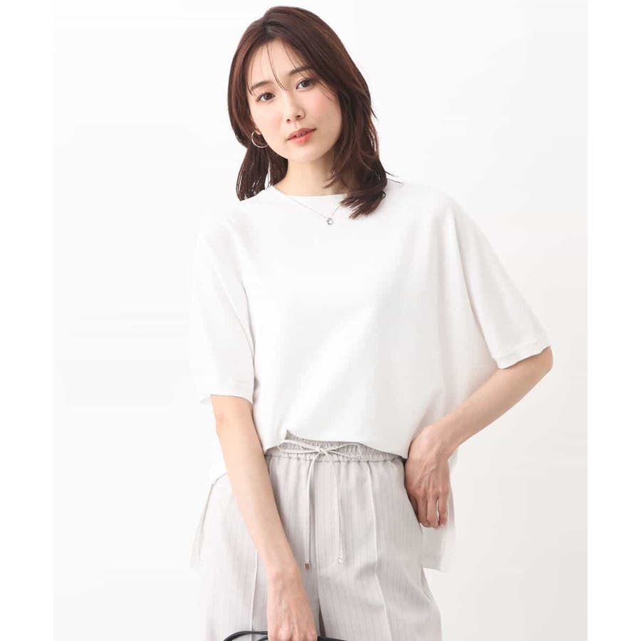 ほどよくゆったりながらも華奢見えするコットン混ニットは夏場でもさらりとお召しいただけます。丈もほどよくあり、パンツスタイルにもおすすめ。