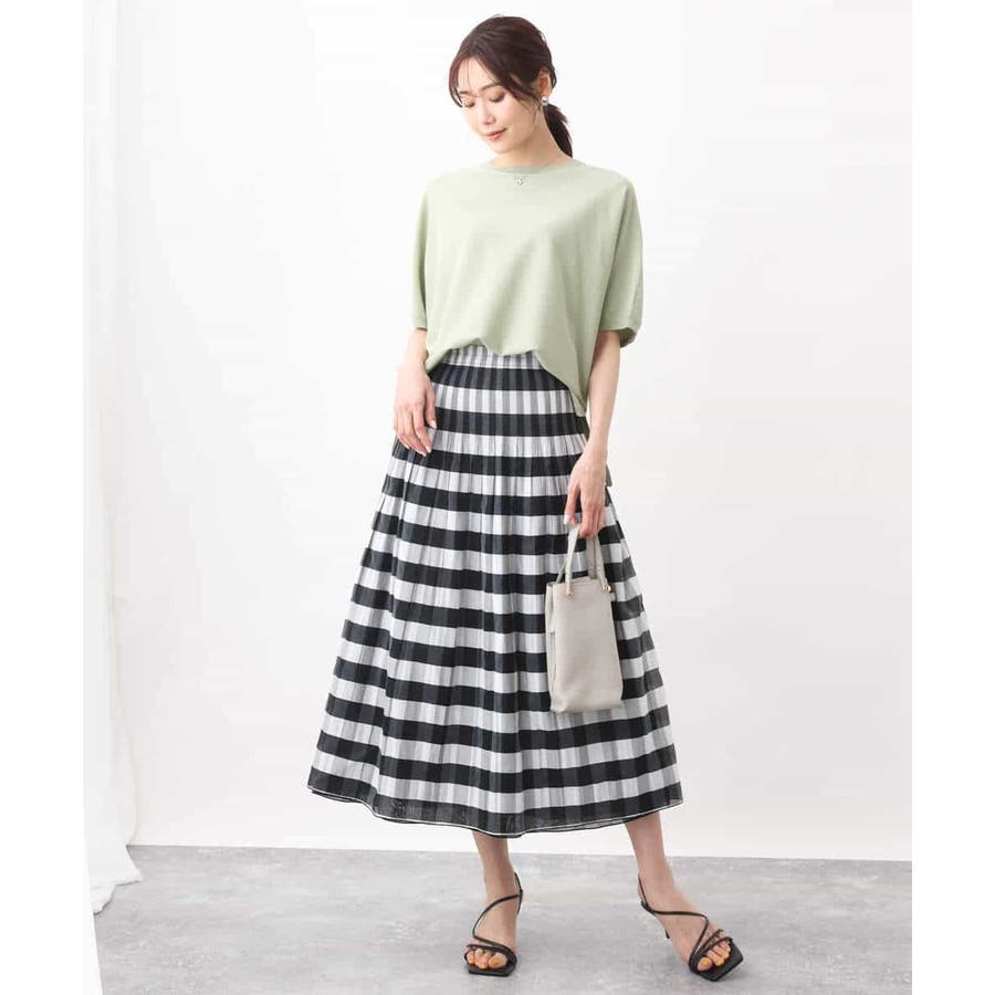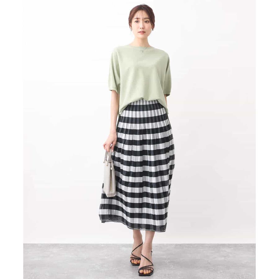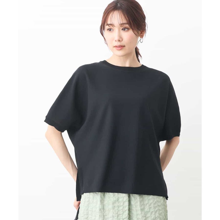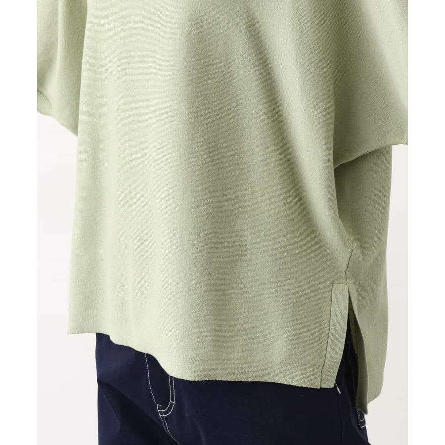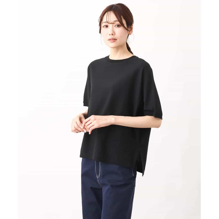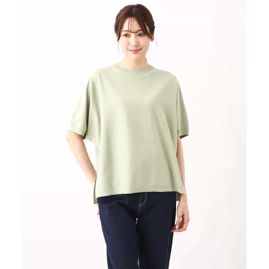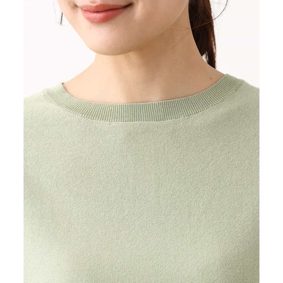 綿混のさらっとタッチのハイゲージニット。きれいな目面はカジュアルすぎずきれい見えで着こなせます。UVカット機能付き。
