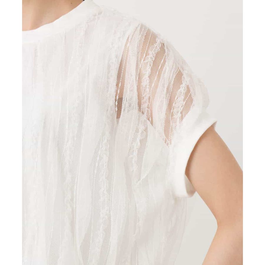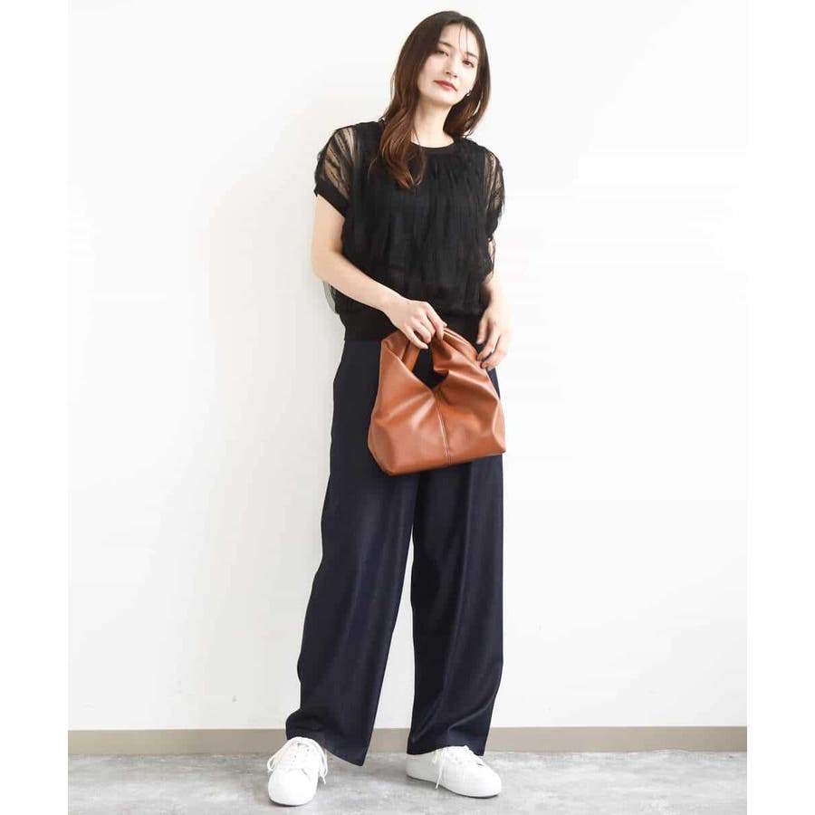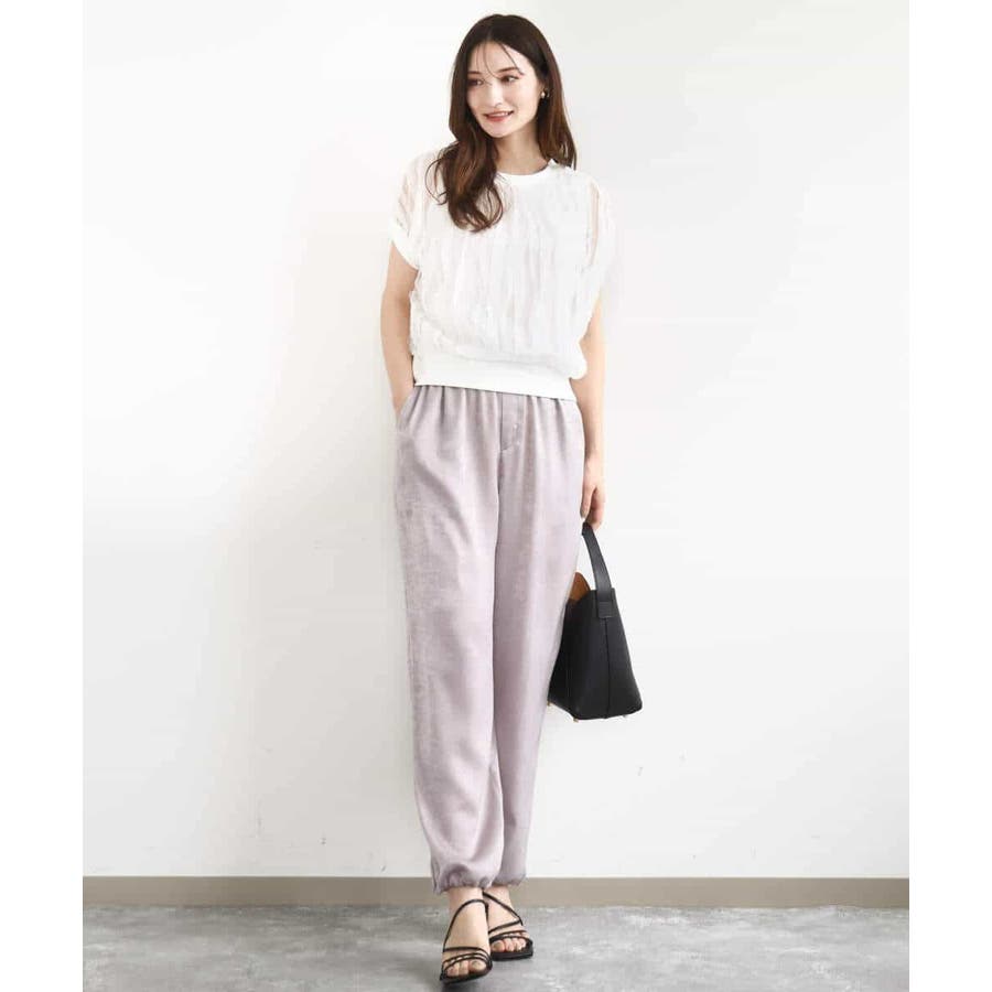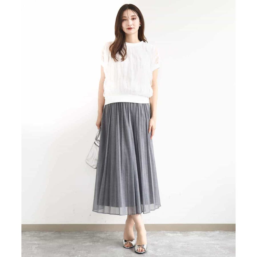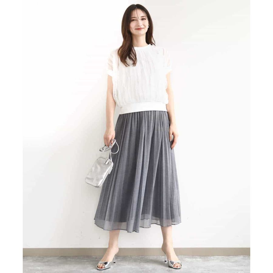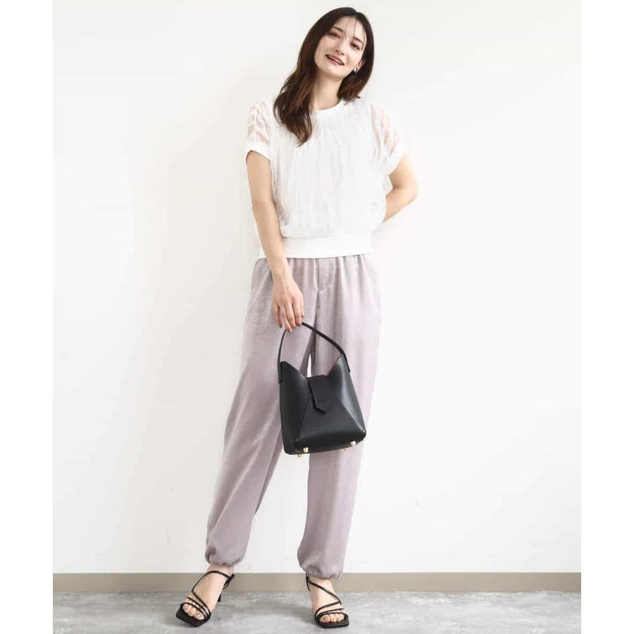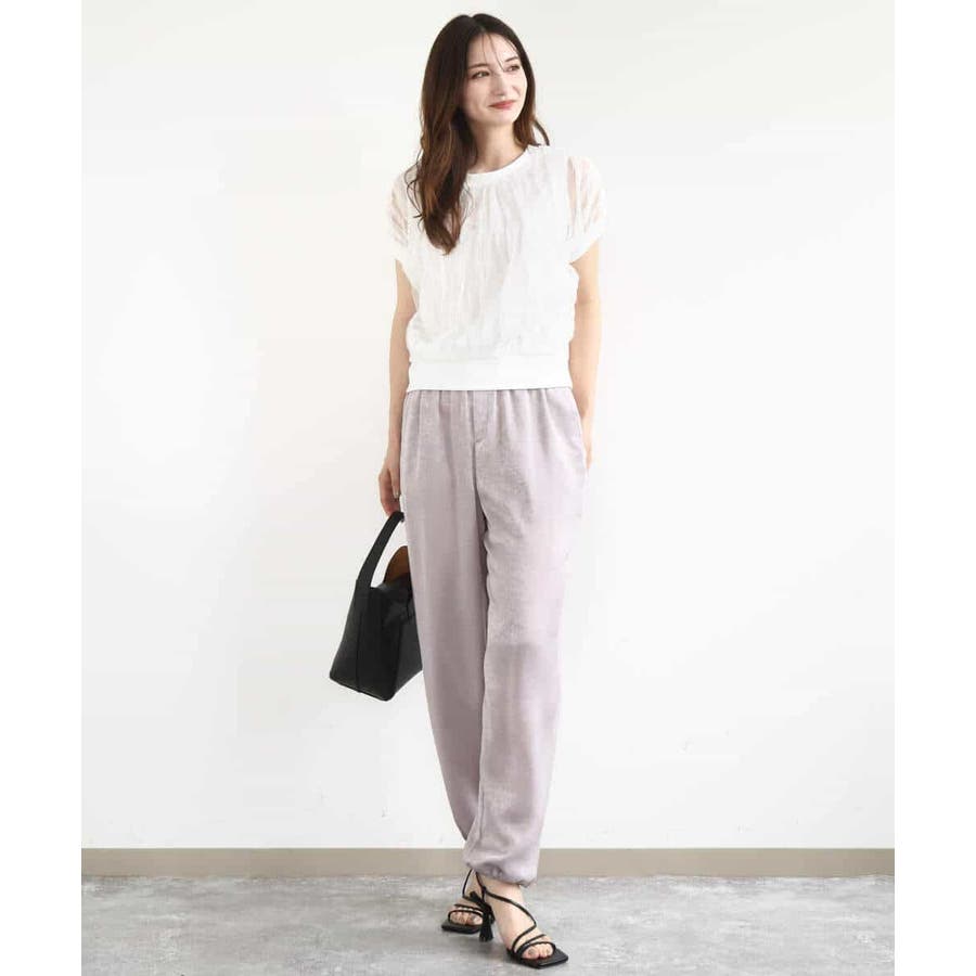 トレンドのチュール素材のプルオーバーです。透かしのスリーブが大人可愛い印です。表面感のあるチュールは柔らかで着心地がとても良いです。タンクトップ型のインナーを縫い合わせてあるので一枚着しやすいのも嬉しいですね。コンパクトなのでワイドパンツやスカートとの相性がとても良いです。