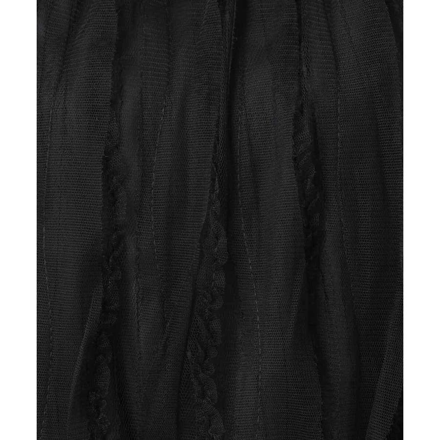 二種類のチュールテープがランダムについたファンシーな素材を使用。裏地にはストレッチ性のあるニットをノースリーブ型に重ね、チュールの透け感をカバー。一枚でも安心して着用いただけます。