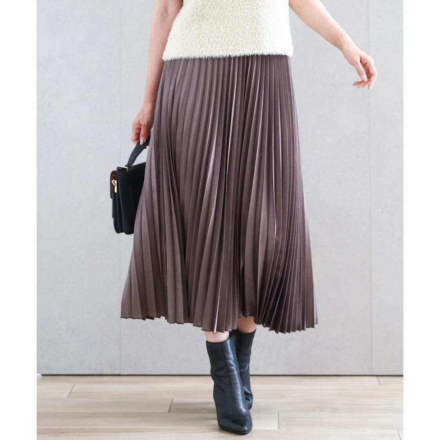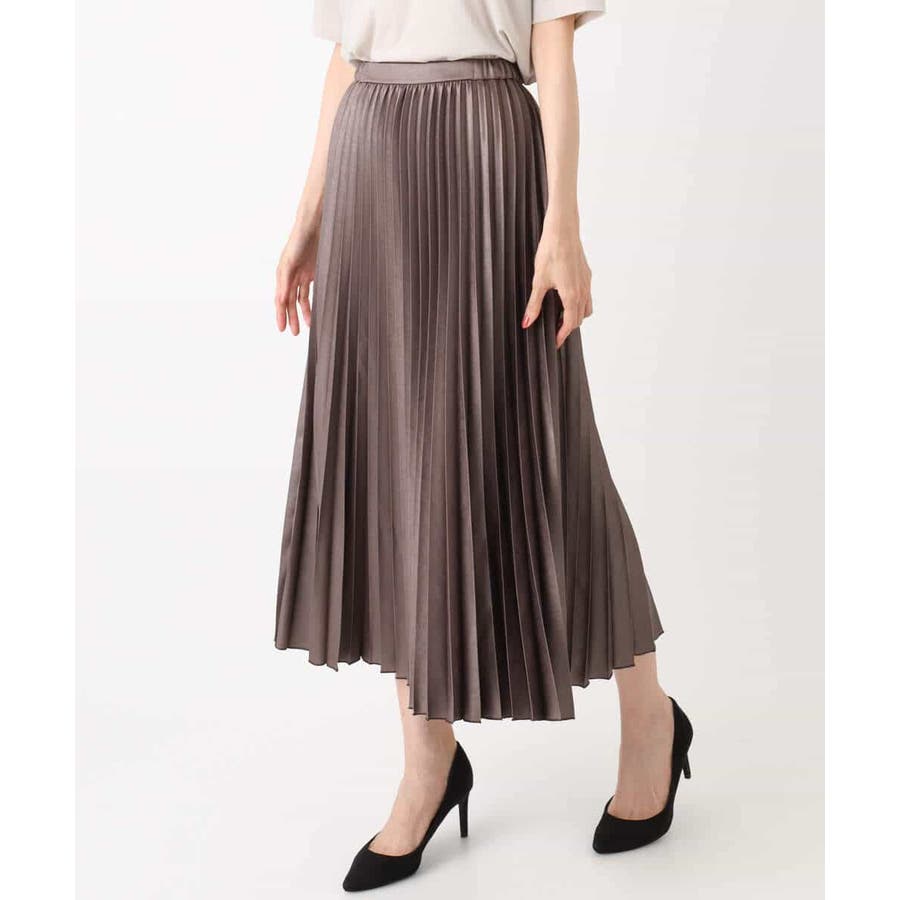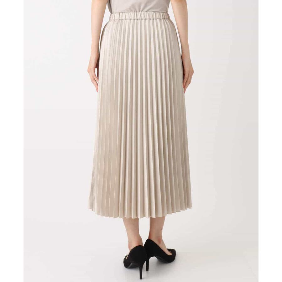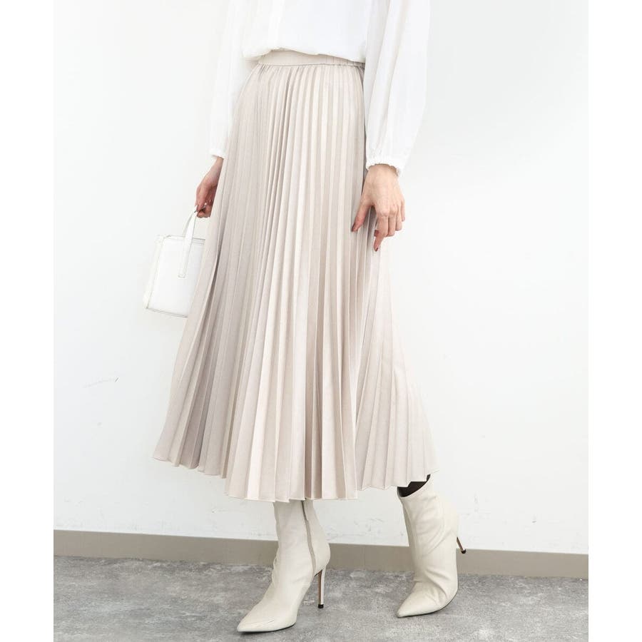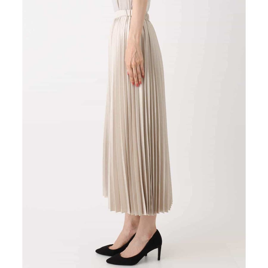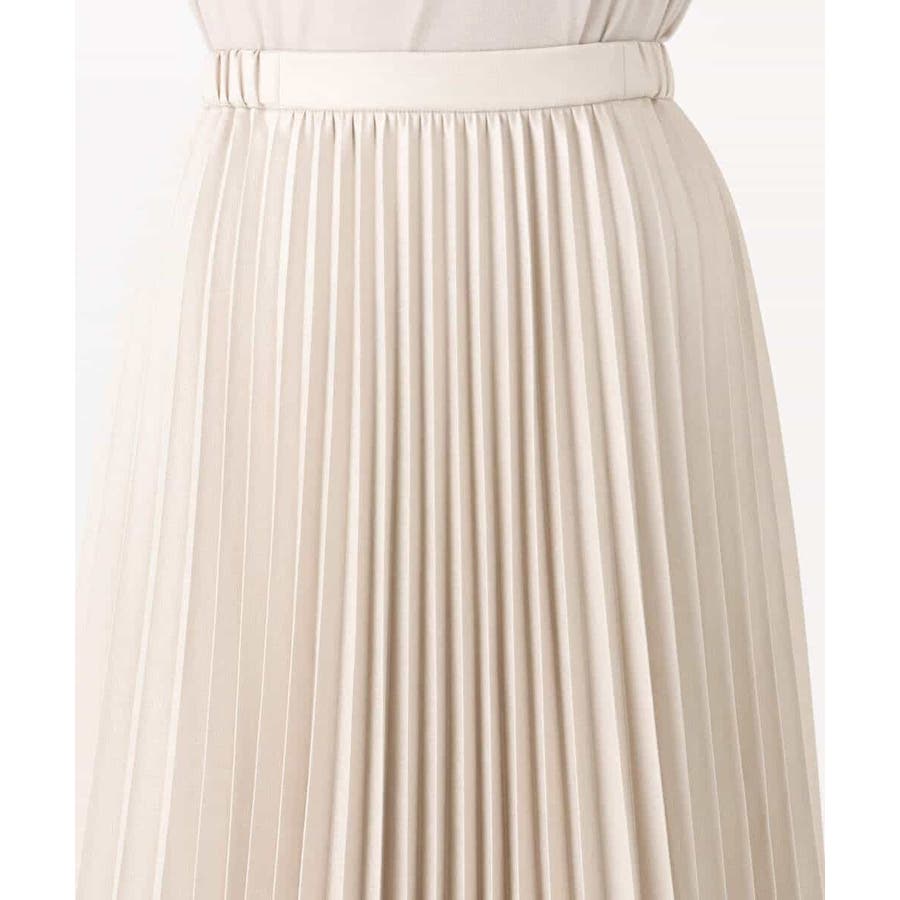 太幅と細幅が組み合わさった動きのあるプリーツがデザインポイントのスカート。軽い素材で動きに合わせて揺れるシルエットが女性らしい印象です。ウエストはバッグゴム仕様なので、様々な体型の方にフィットします。