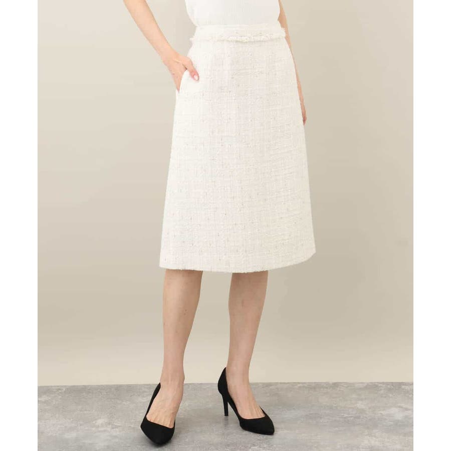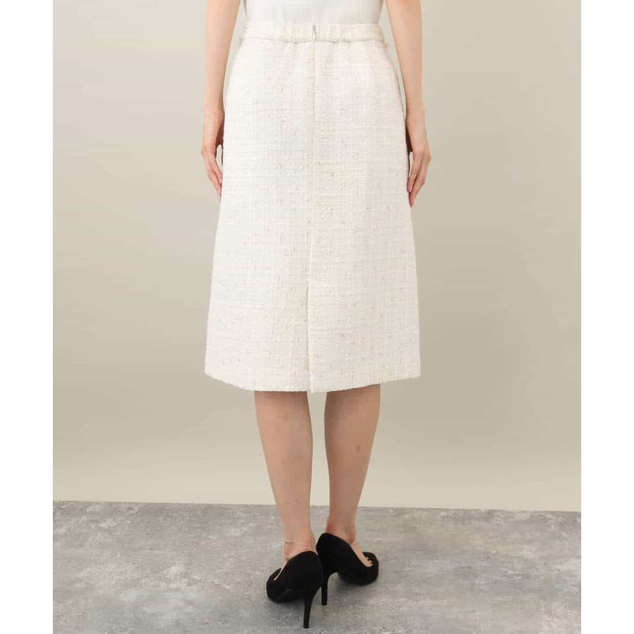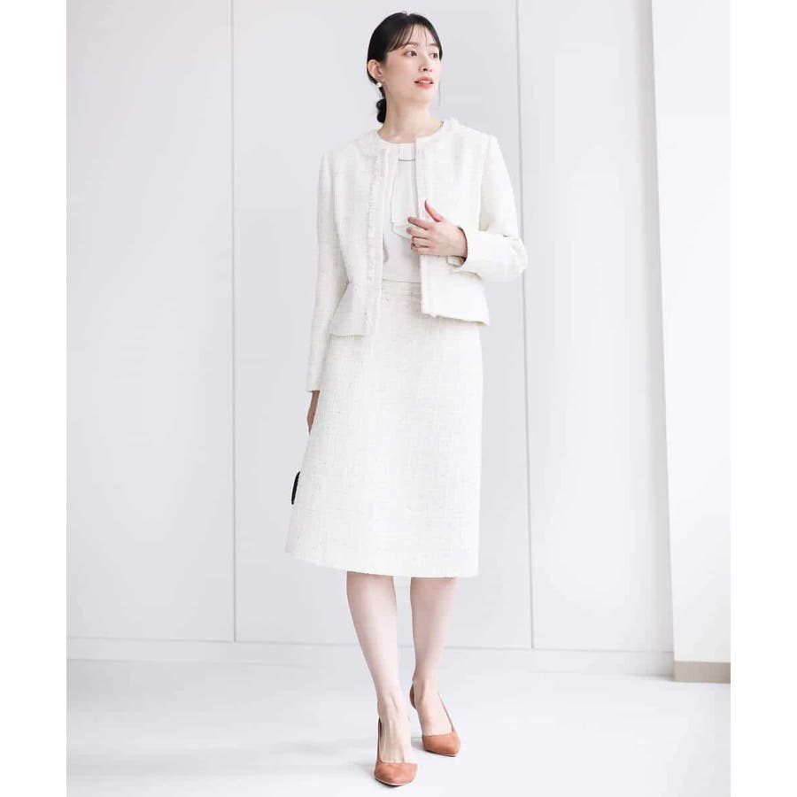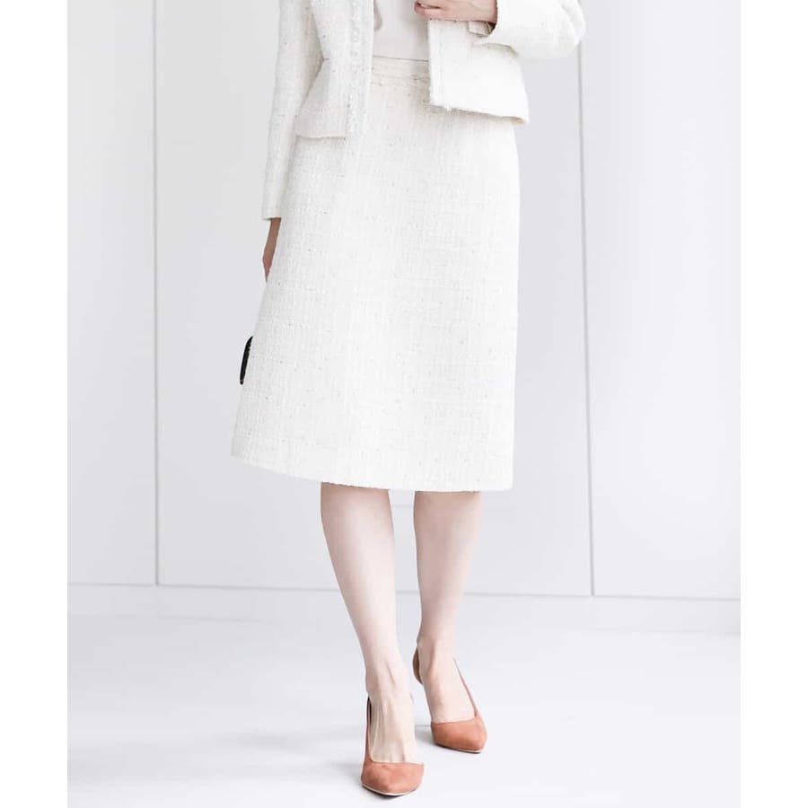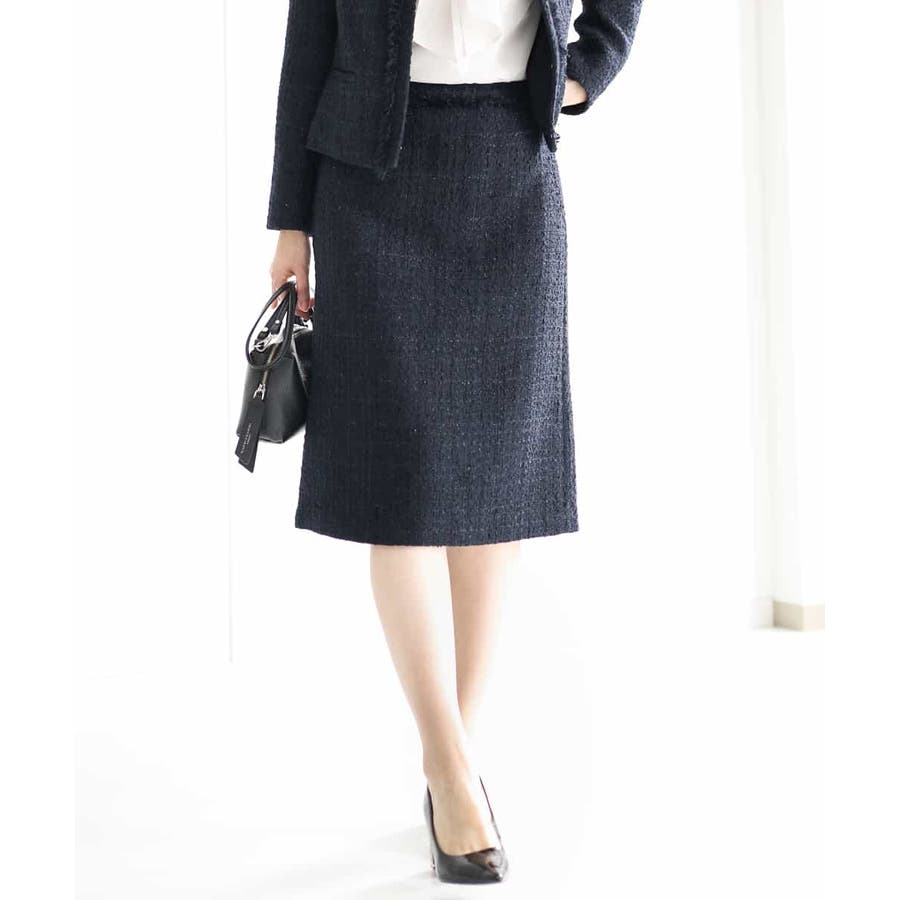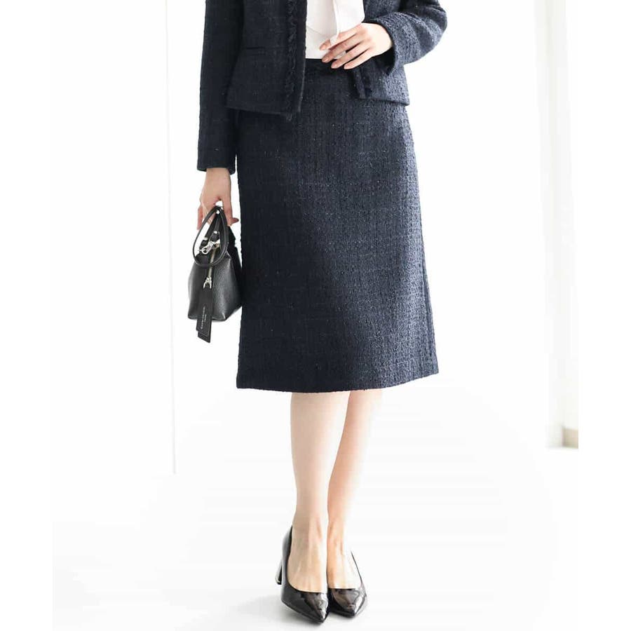 体のラインを拾わない、タイトすぎないややフレアシルエットに仕上げたツイードスカート。対のジャケットとバランスを取りやすい丈に仕上げました。椅子に座った時にも安心できる丈感で、セレモニーシーンなど式典の再にも安心して着用いただけます。
