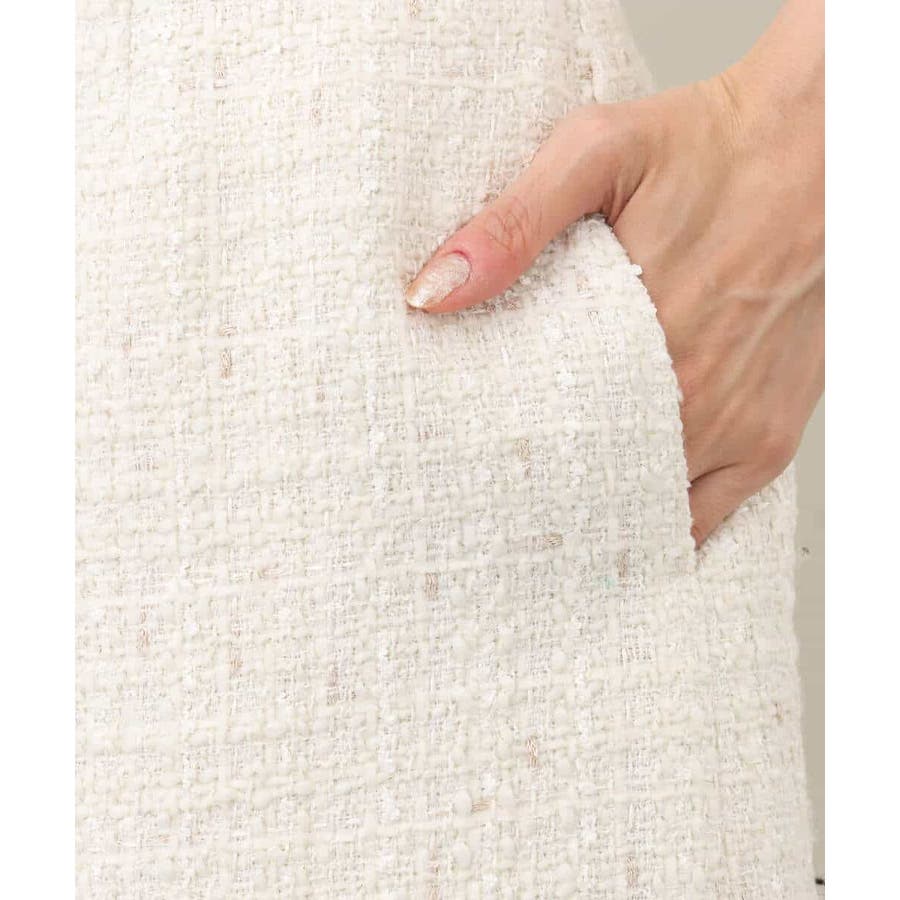 様々な糸によって生み出される表情が印象的なファンシーツイードを使用。さりげなくキラキラと光る上品なラメ糸や意匠糸が華やかな印象に。