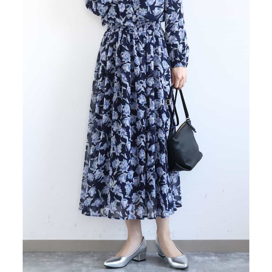 繊細なタッチで表現された花柄のシフォンスカート。落ち感がある素材は広がりすぎないので甘くなりすぎず大人っぽく着こなせます。ウエストゴムでストレスフリーな着心地も嬉しい。