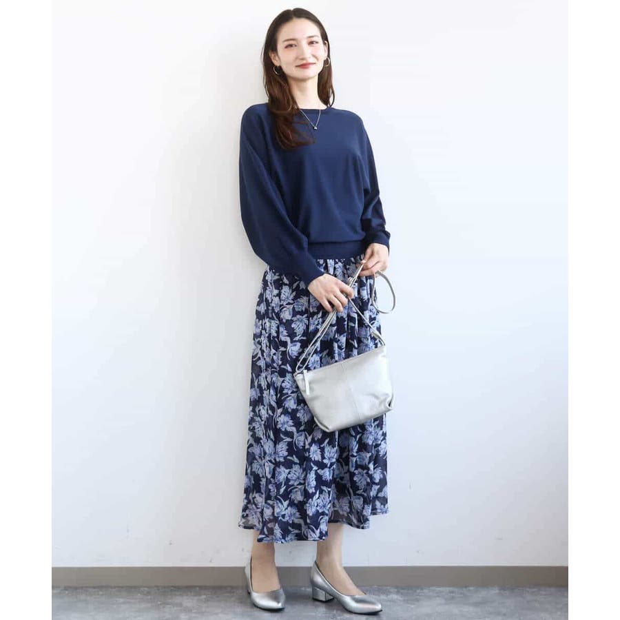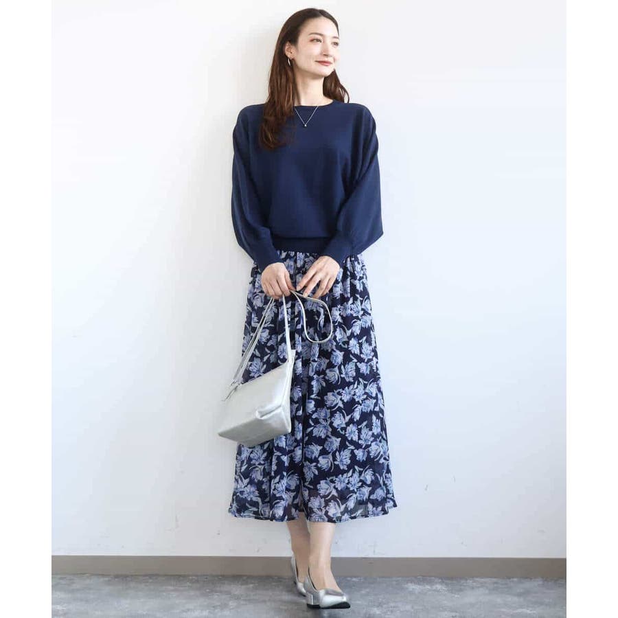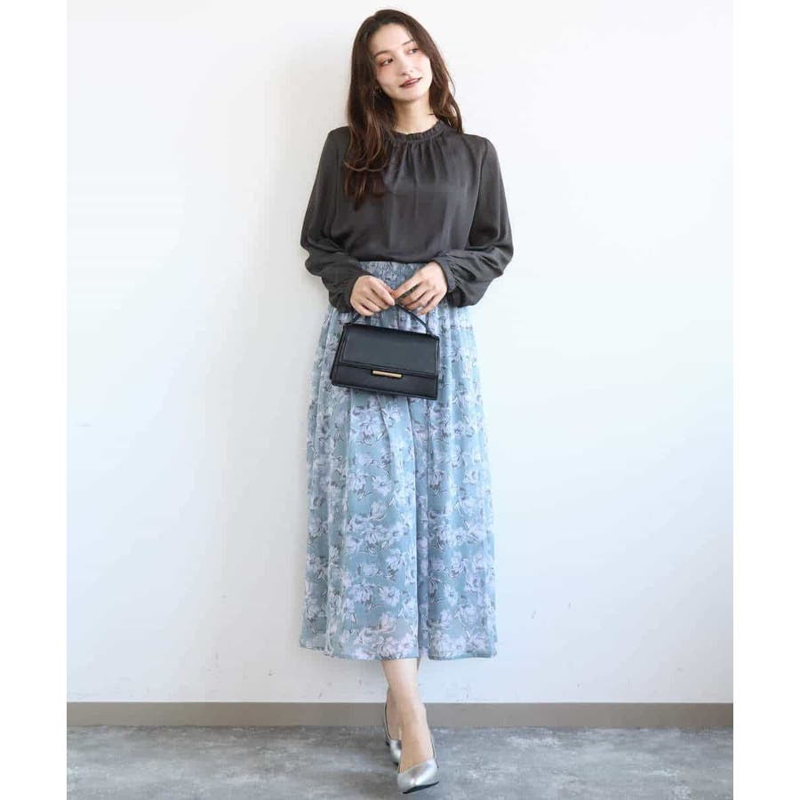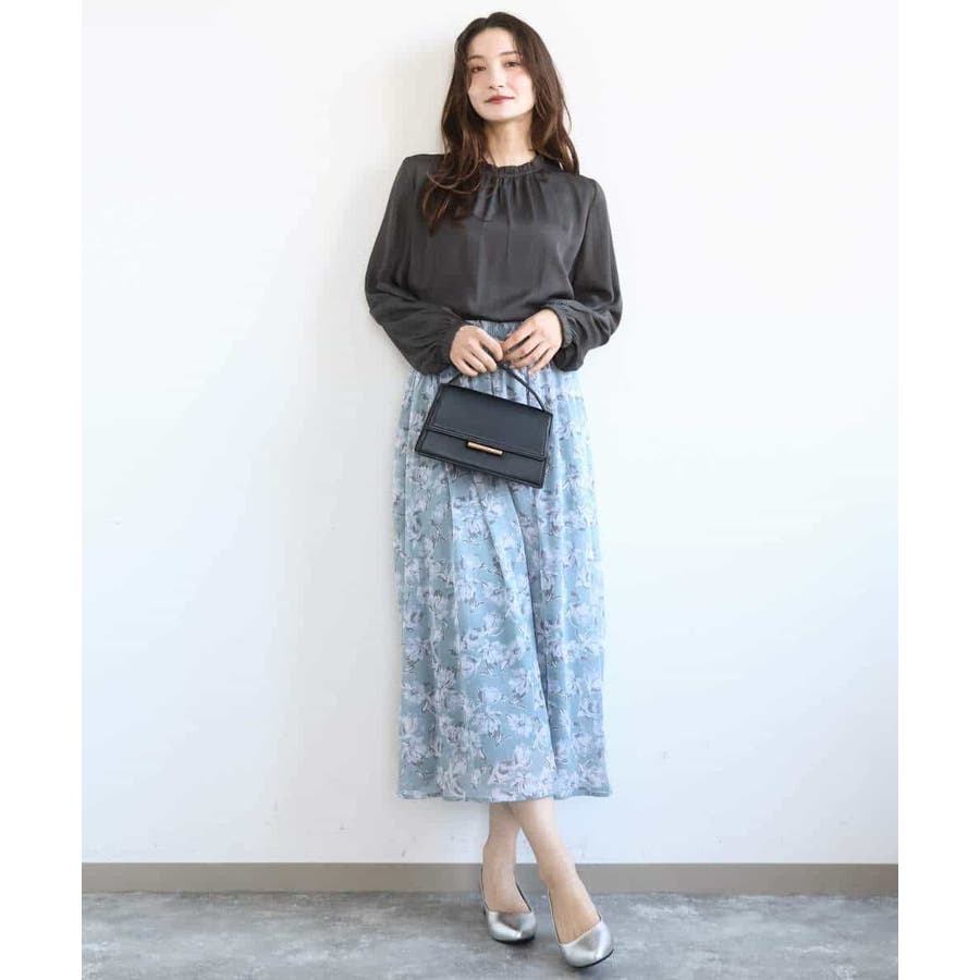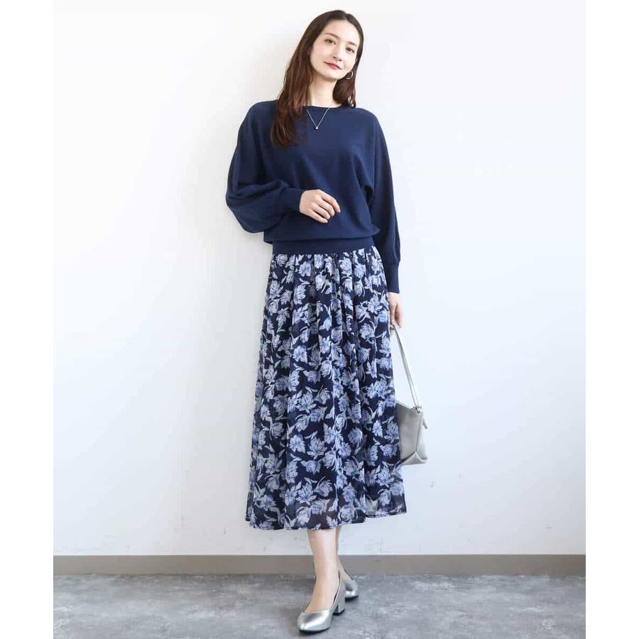 軽やかで広がりすぎないシルエットは甘さのある花柄も大人な印象に。柄を引き立たせるべく、合わせるアイテムはシンプルなものを選ぶのが正解。同素材のブラウスとセットアップでワンピース見えの着こなしも楽しめるので、セットで持っておくと何かと便利な一枚です。