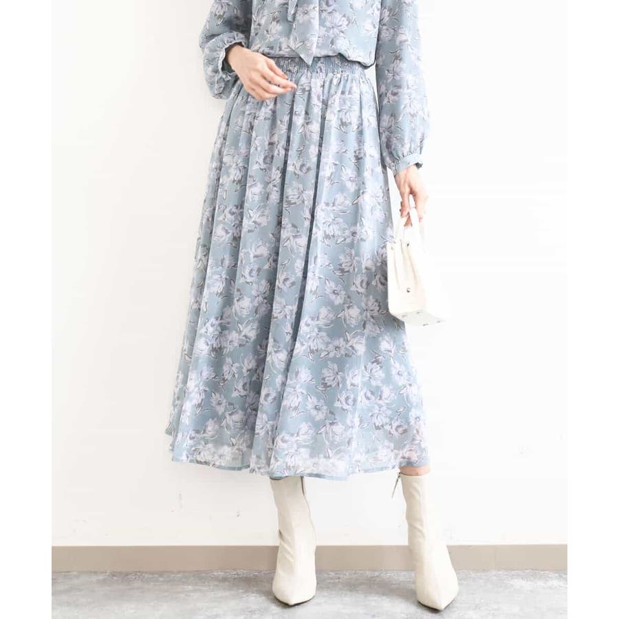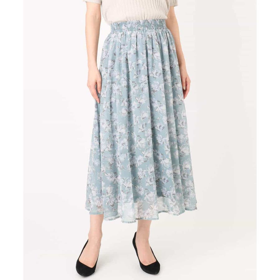 繊細な花柄が大人可愛いシフォンスカート